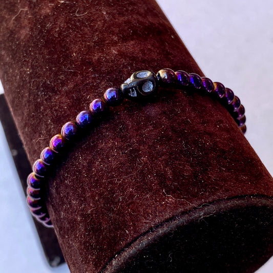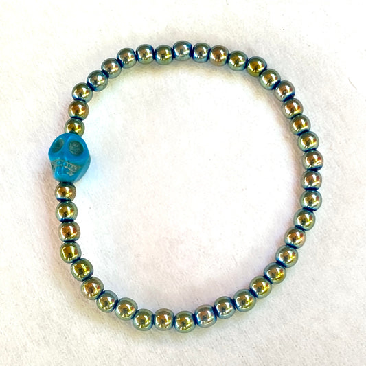 Hematite gemstone with Howlite Skull bracelet