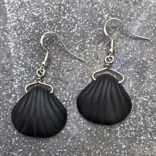 Matte Onyx gemstone carved Shells with Sterling Silver Earrings