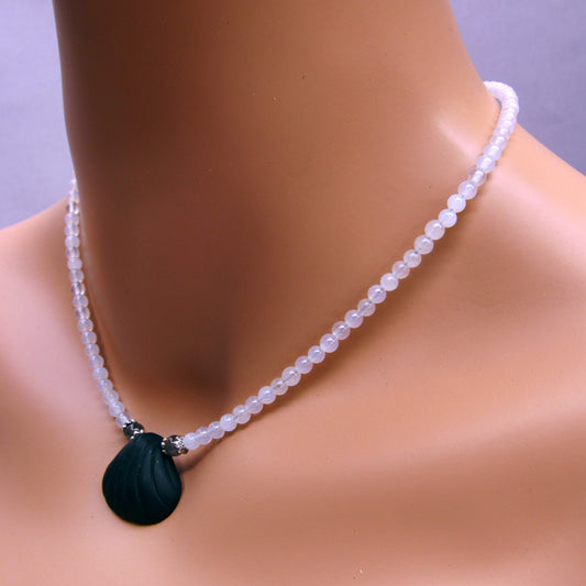 Onyx gemstone Shell pendant with White Agates and Silver Moonstone Necklace