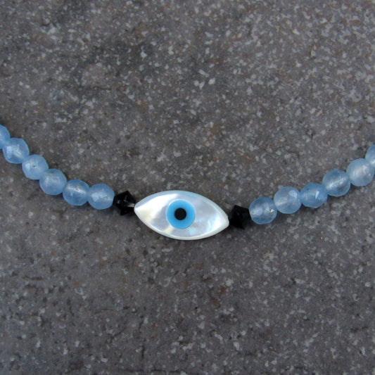 Protection Eye Mother of Pearl Heart and Chalcedony gemstone Anklet