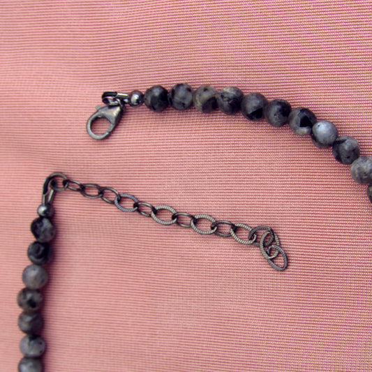 Larvikite gemstone, Clear Quartz, Onyx, and Oxidized Sterling Silver Anklet