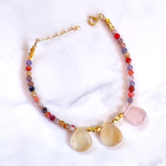 Mixed color agates gemstone anklet 14kt Gold Fill beads and chain