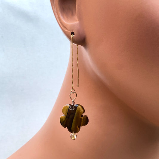 Tiger eye, rutile gold hand wrapped with 14 kt Gold vermeil sterling silver