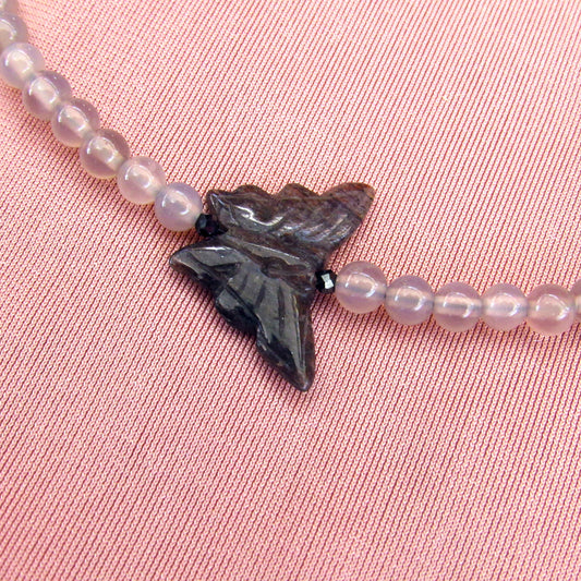 Black Aventurine Butterfly, Black Spinel, Grey Agates, and Oxidized Sterling Silver Anklet