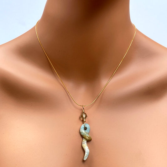 Amazonite Snake with Smoky Topaz gemstone on 18 kt Gold over Sterling Vermeil Necklace