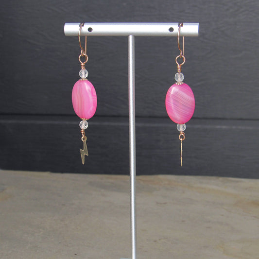 Banded pink Agate Gemstone, White Topaz, w/ 14 kt Rose gold fill