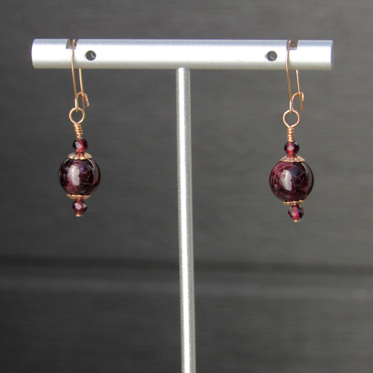Garnet Gemstones and 14 kt Rose Gf Drop Earrings
