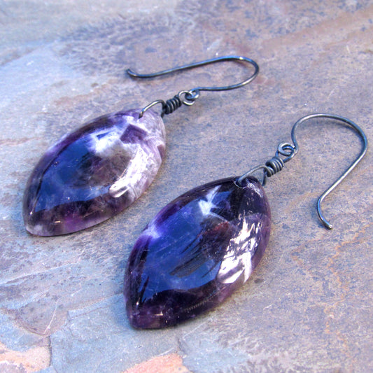 Amethyst Gemstone and Oxidized Sterling Silver Drop Earrings
