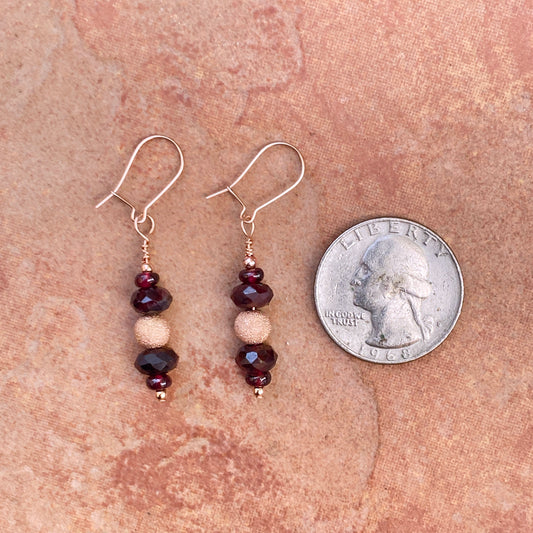 Garnet Gemstone and 14 kt Rose Gold fill Drop Earrings