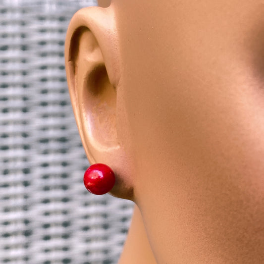 Red Coral Stud Earrings on Sterling Silver Posts