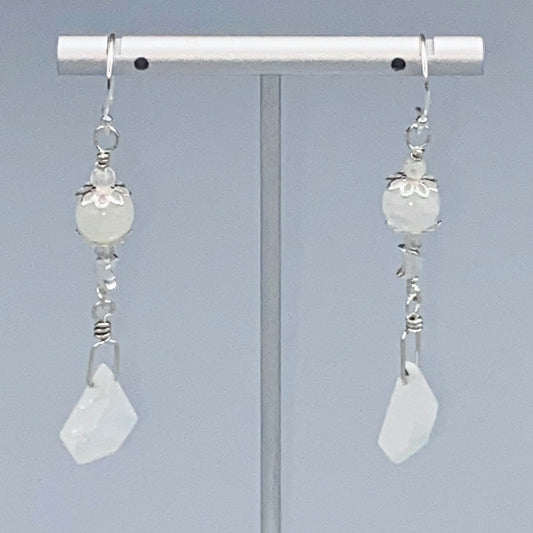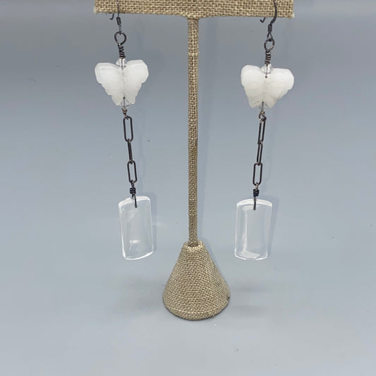 Clear quartz and White Quartz Butterfly w/ Oxidized Sterling Silver Drop Earrings