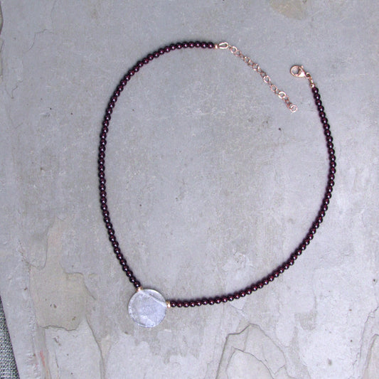 Garnet gemstone Clear Quartz pendant with 14 kt Rose gf Necklace