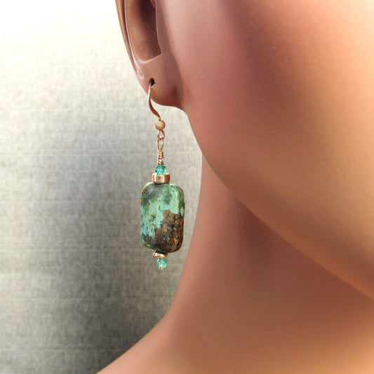 African Turquoise, Aventurine, and 14 kt gf Drop Earrings