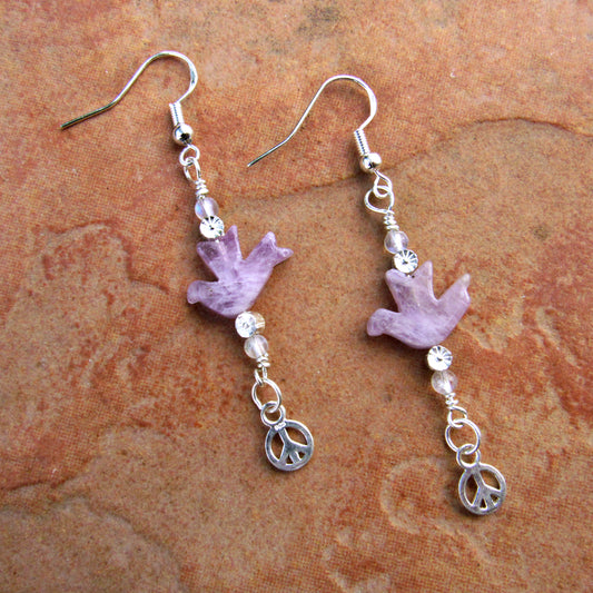 Gemstone Dove Sterling Silver Peace Sign Drop Earrings