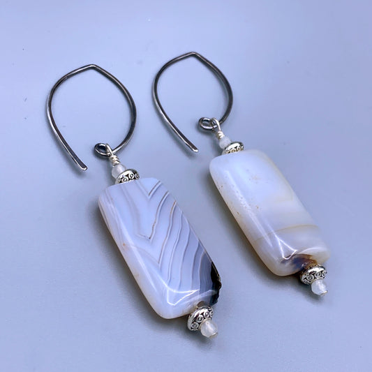 Scenic Dendritic Agate Gemstone, Moonstones, and Sterling Silver Drop Earrings