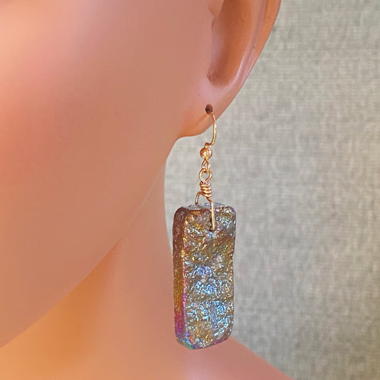 Crystal Agate Druzy Quartz Gemstone w/ 14 kt Gf