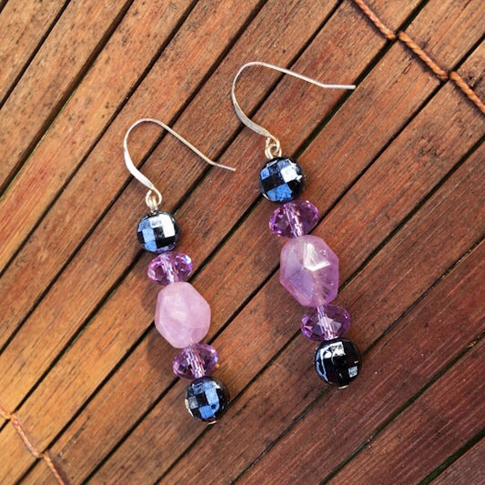 Lavender Quartz Gemstone and Swarvoski Crystal Earrings