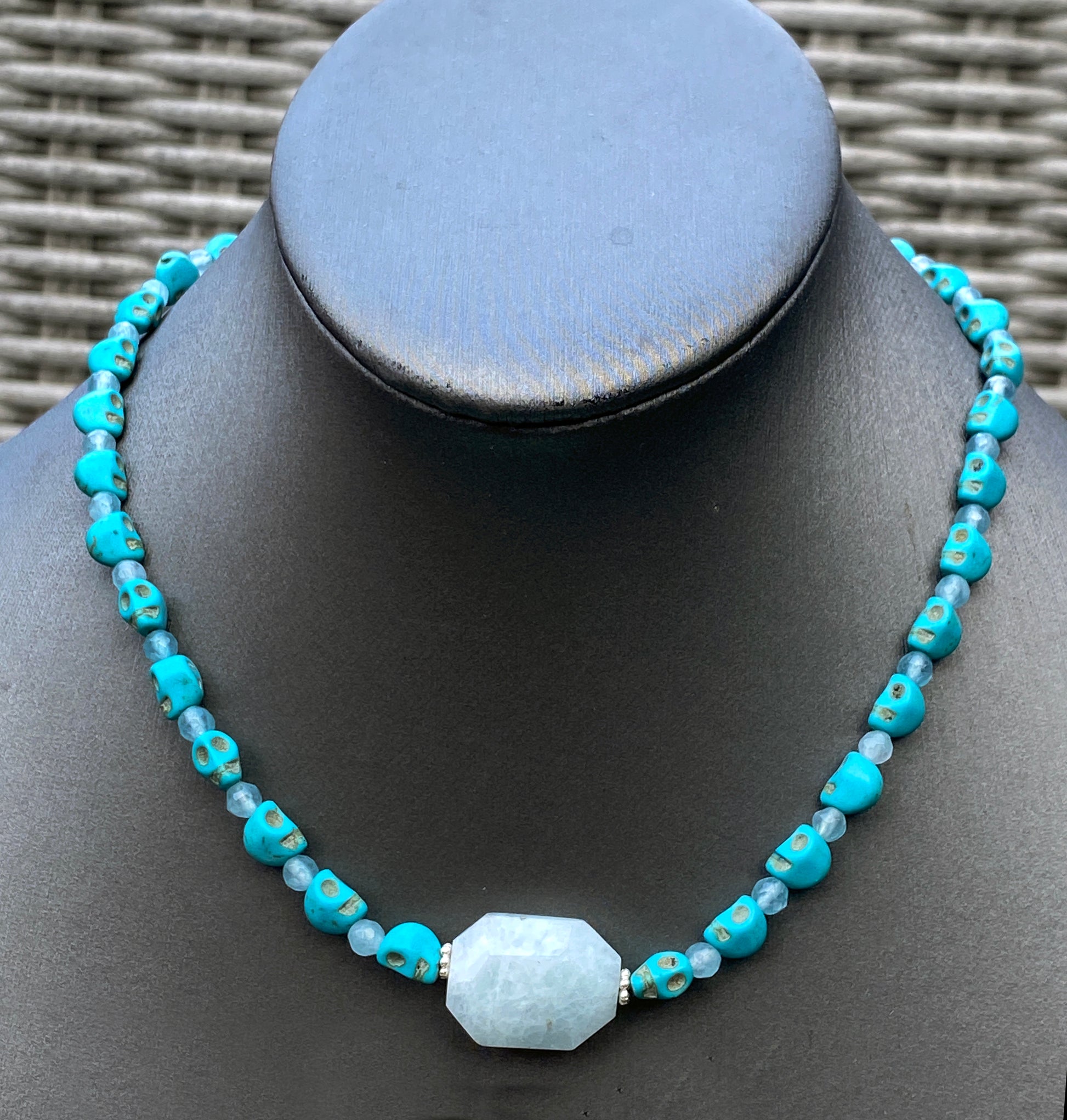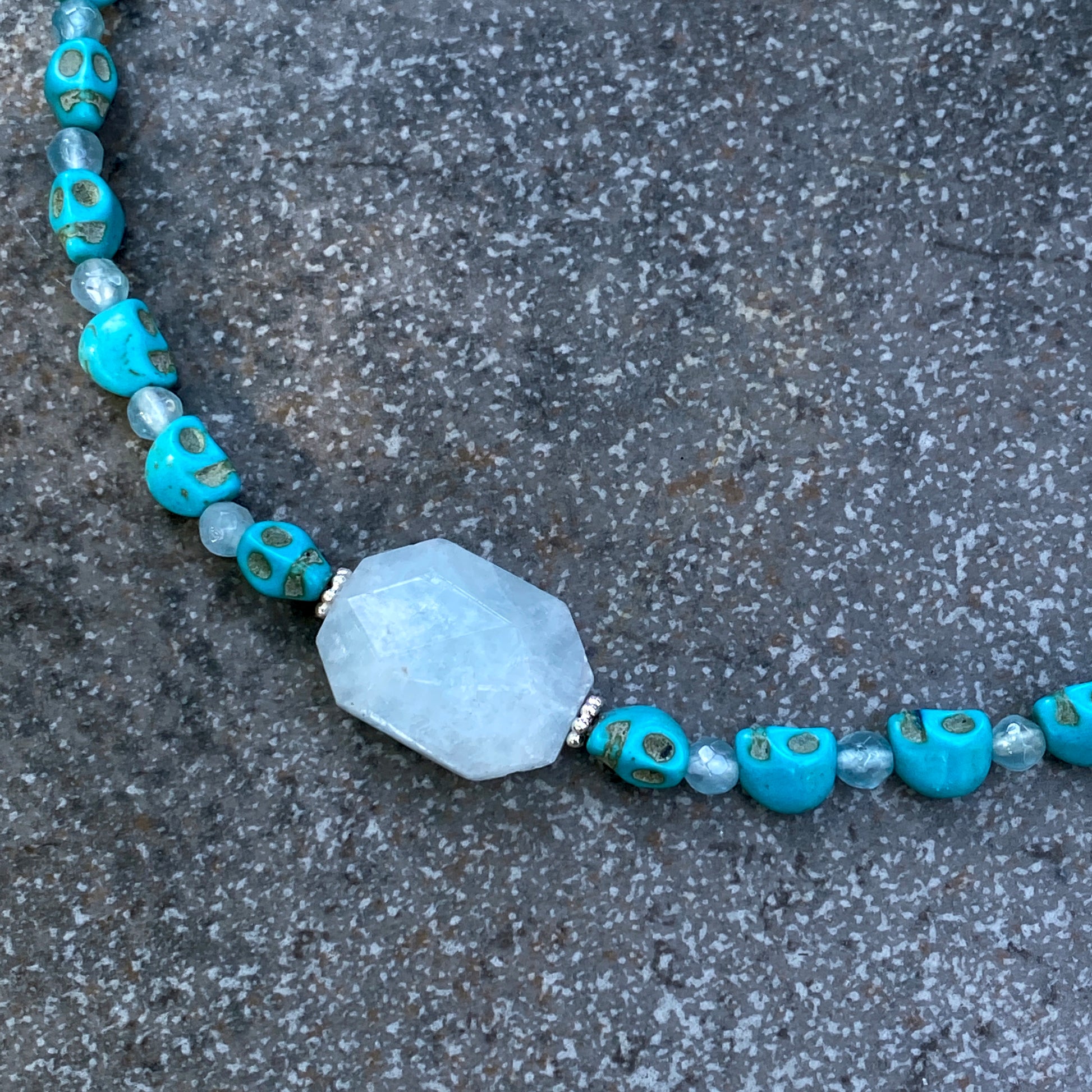 Aquamarine and Howlite Skull Necklace