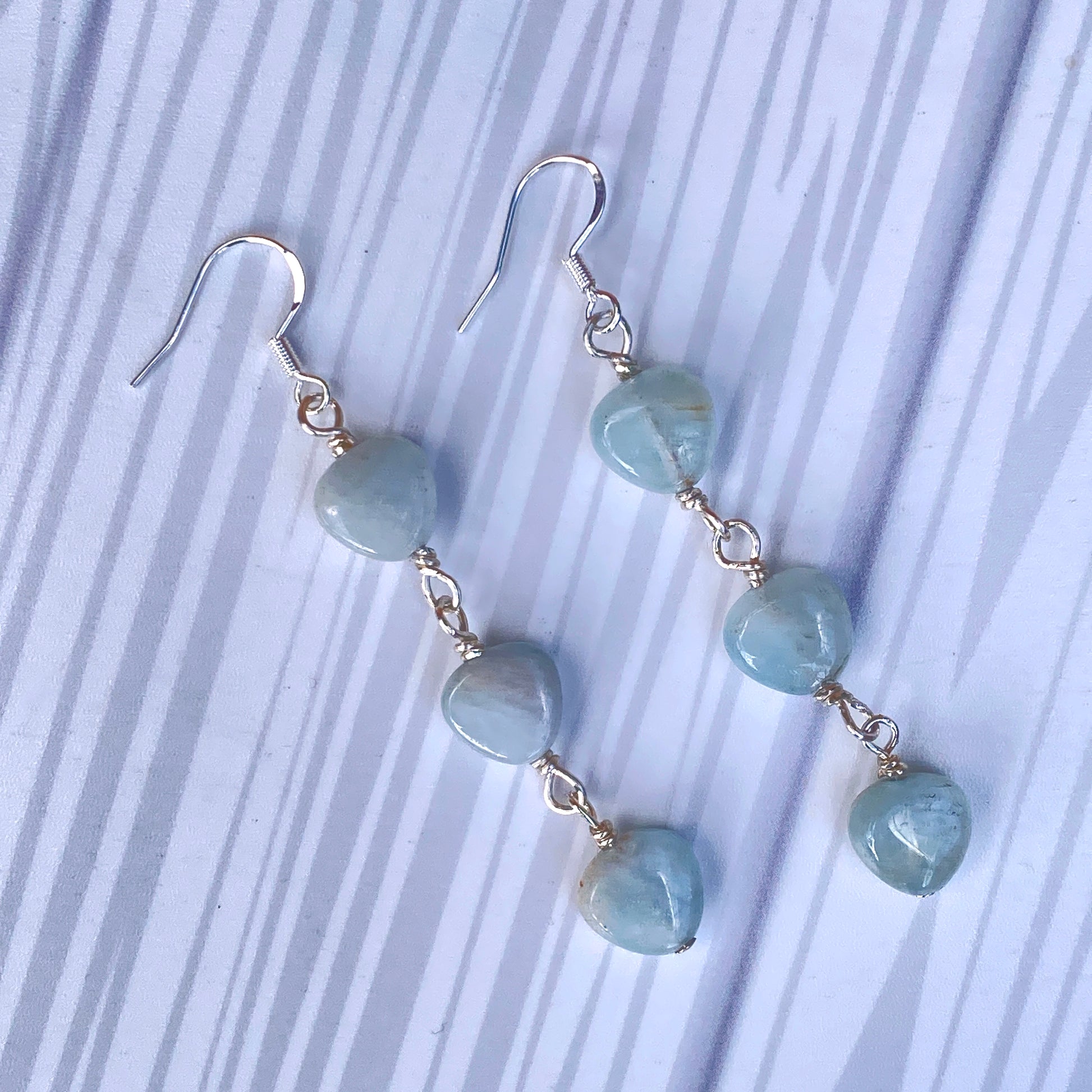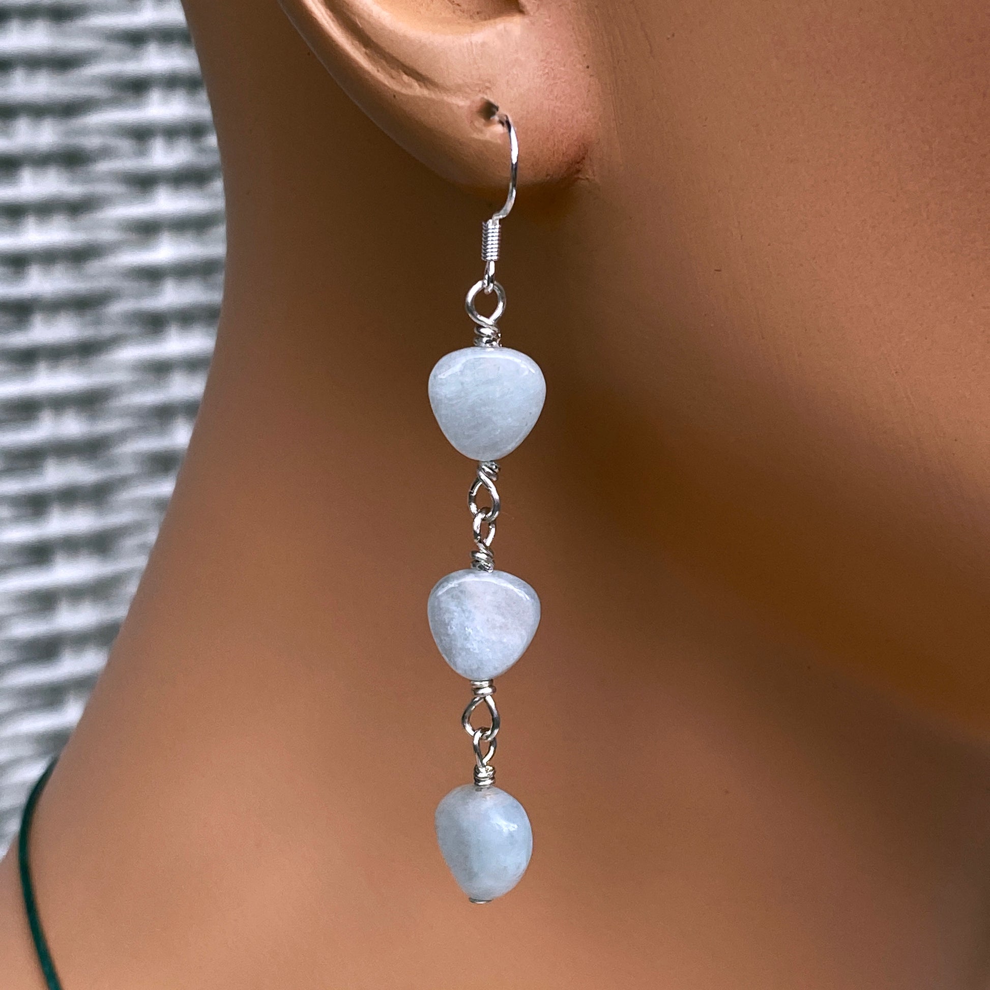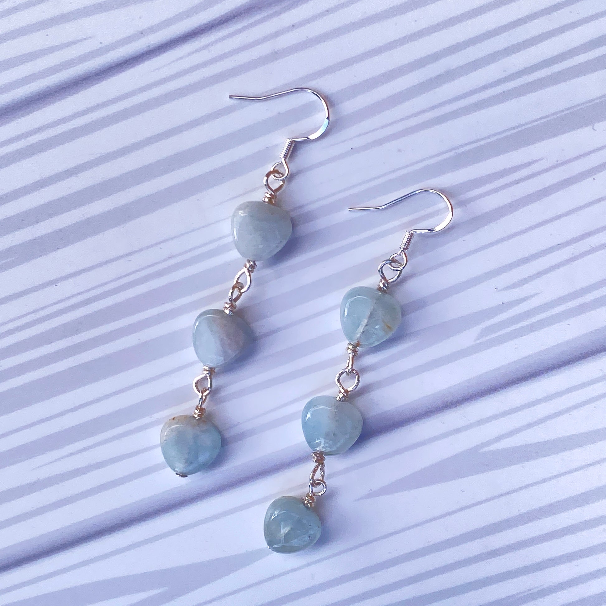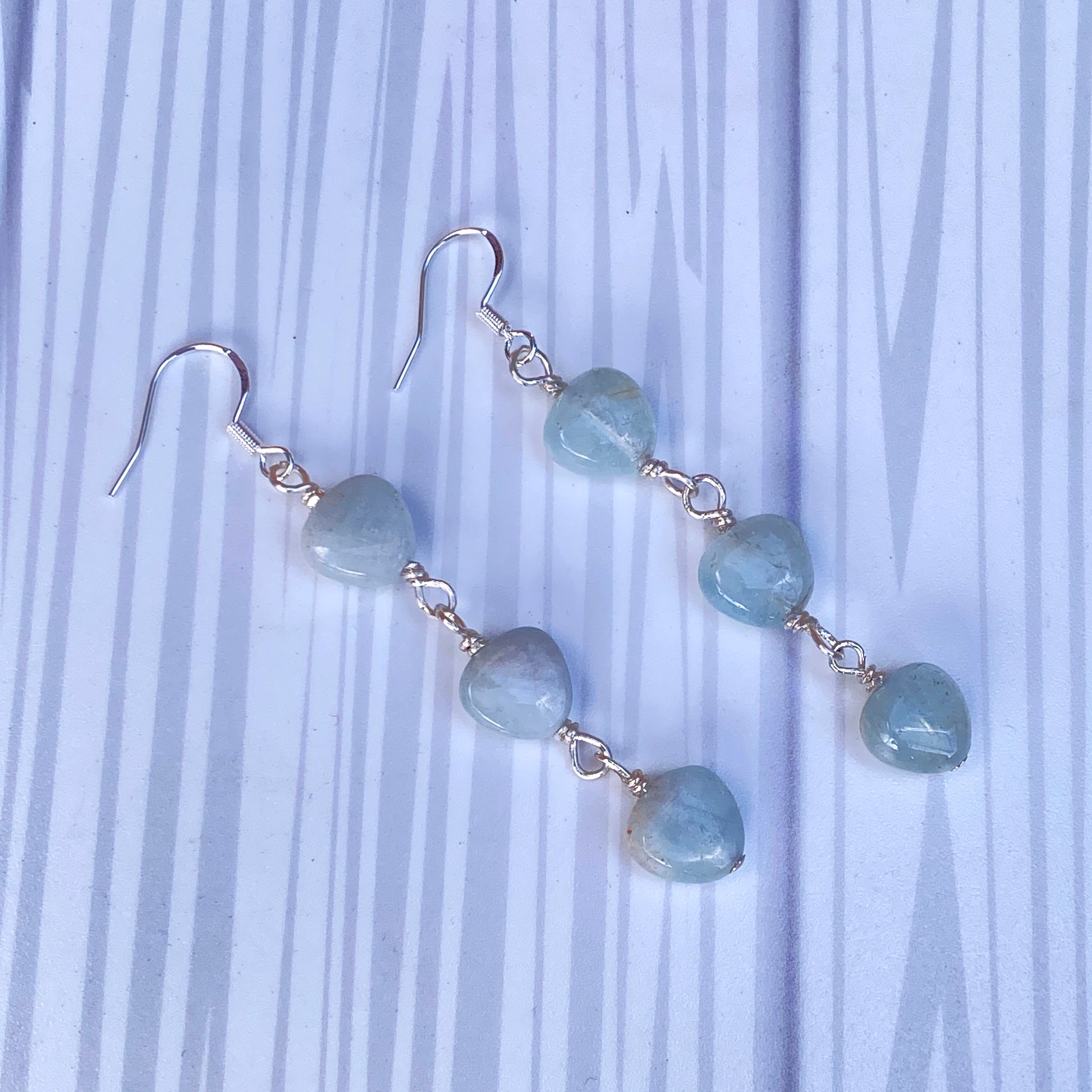 Aquamarine Triple Heart Dangle Earrings