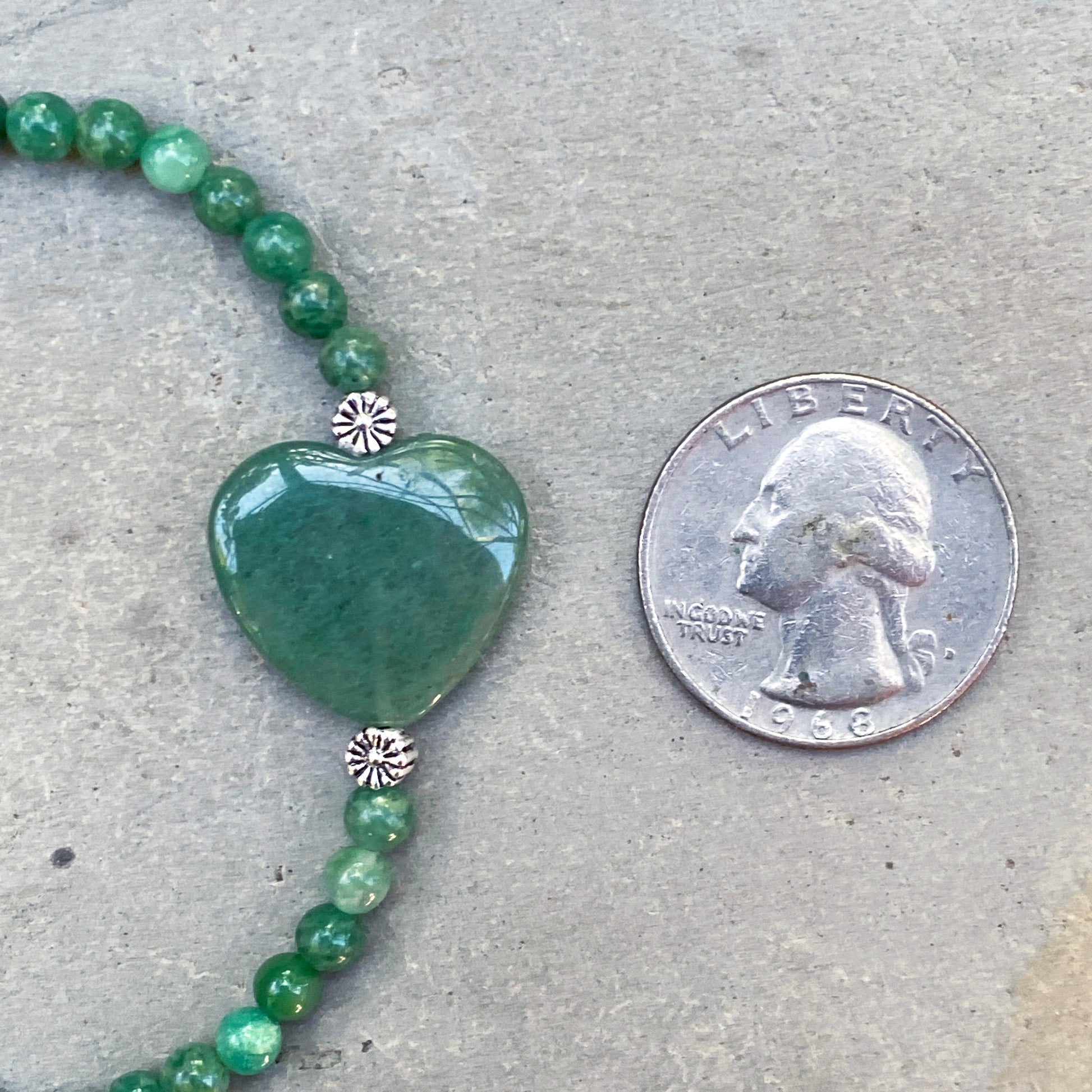 Aventurine Gemstone Heart, Sterling Silver, and Green African Jade Bracelet