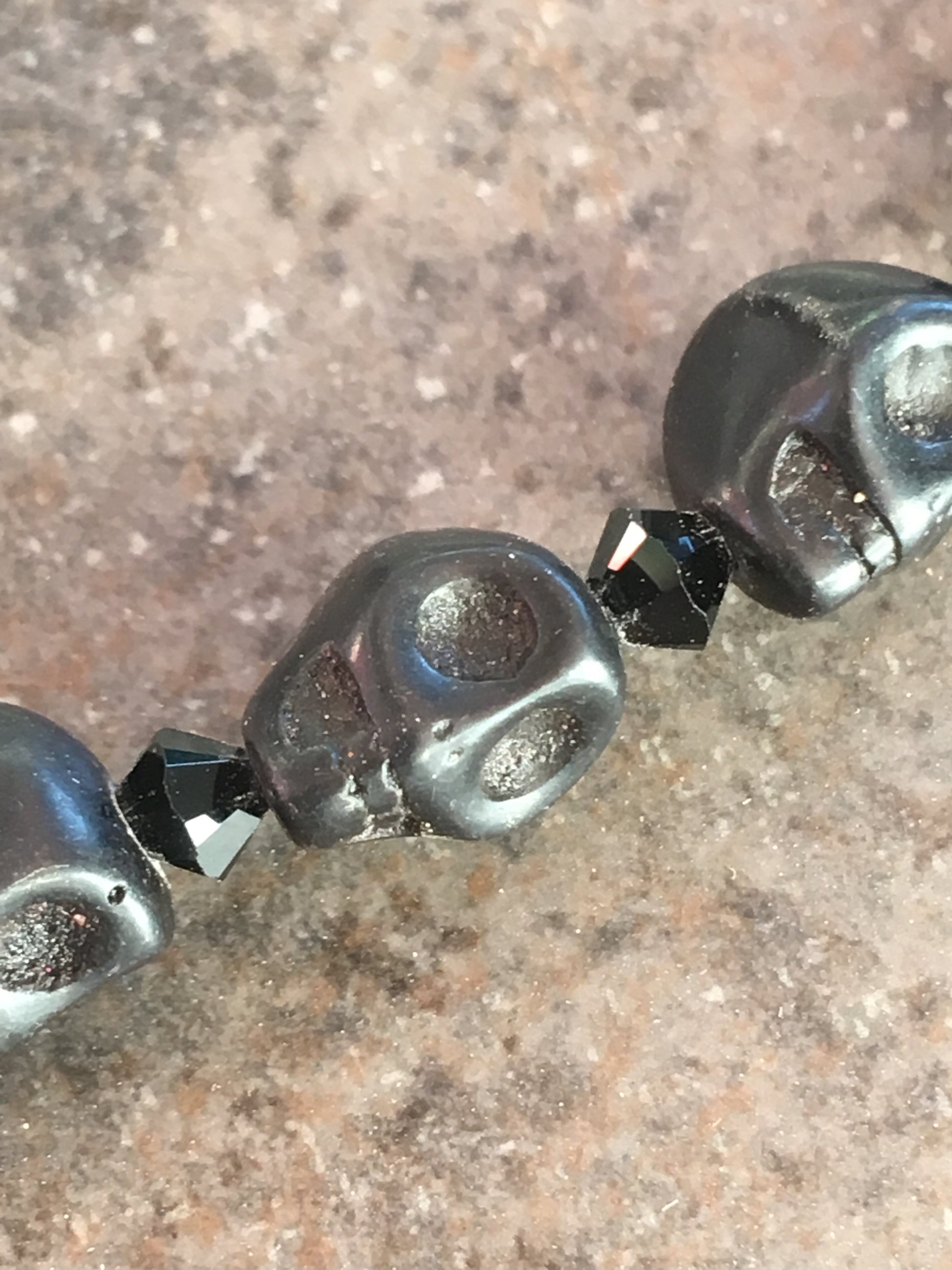 A lovely handcrafted Black Skull and Swarvoski Crystal necklace
