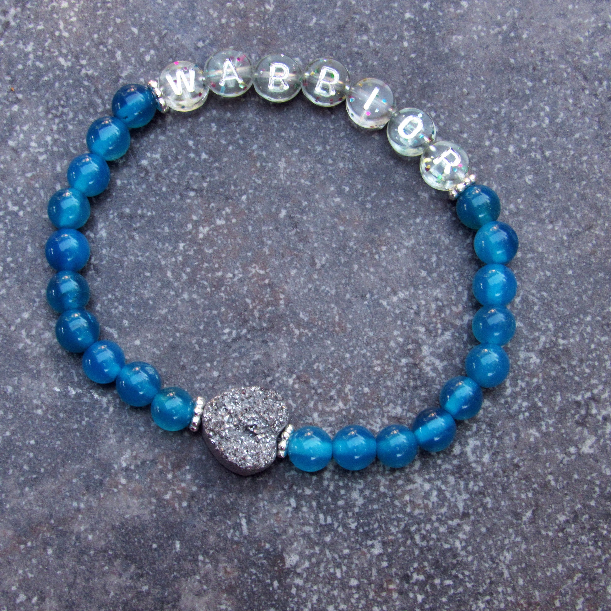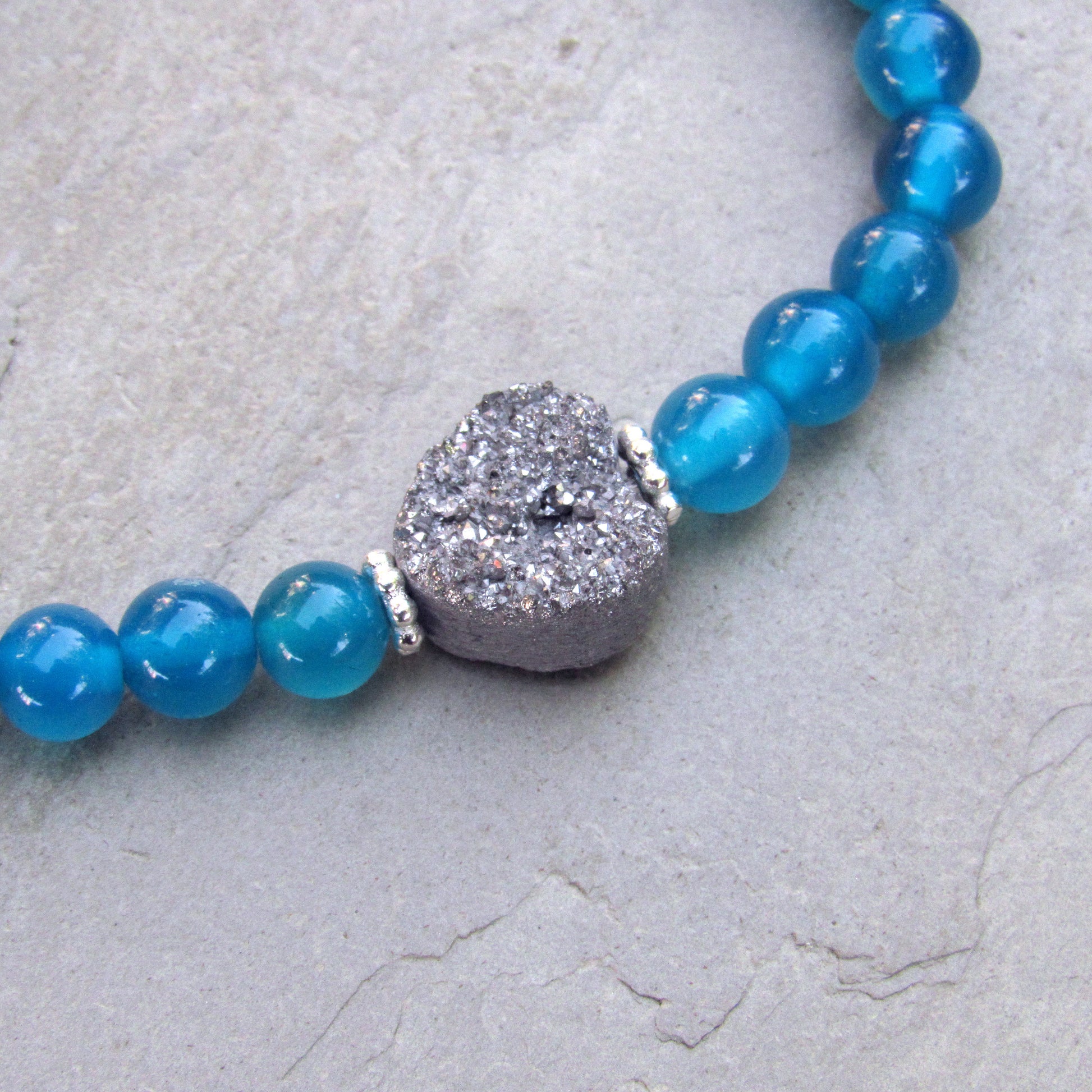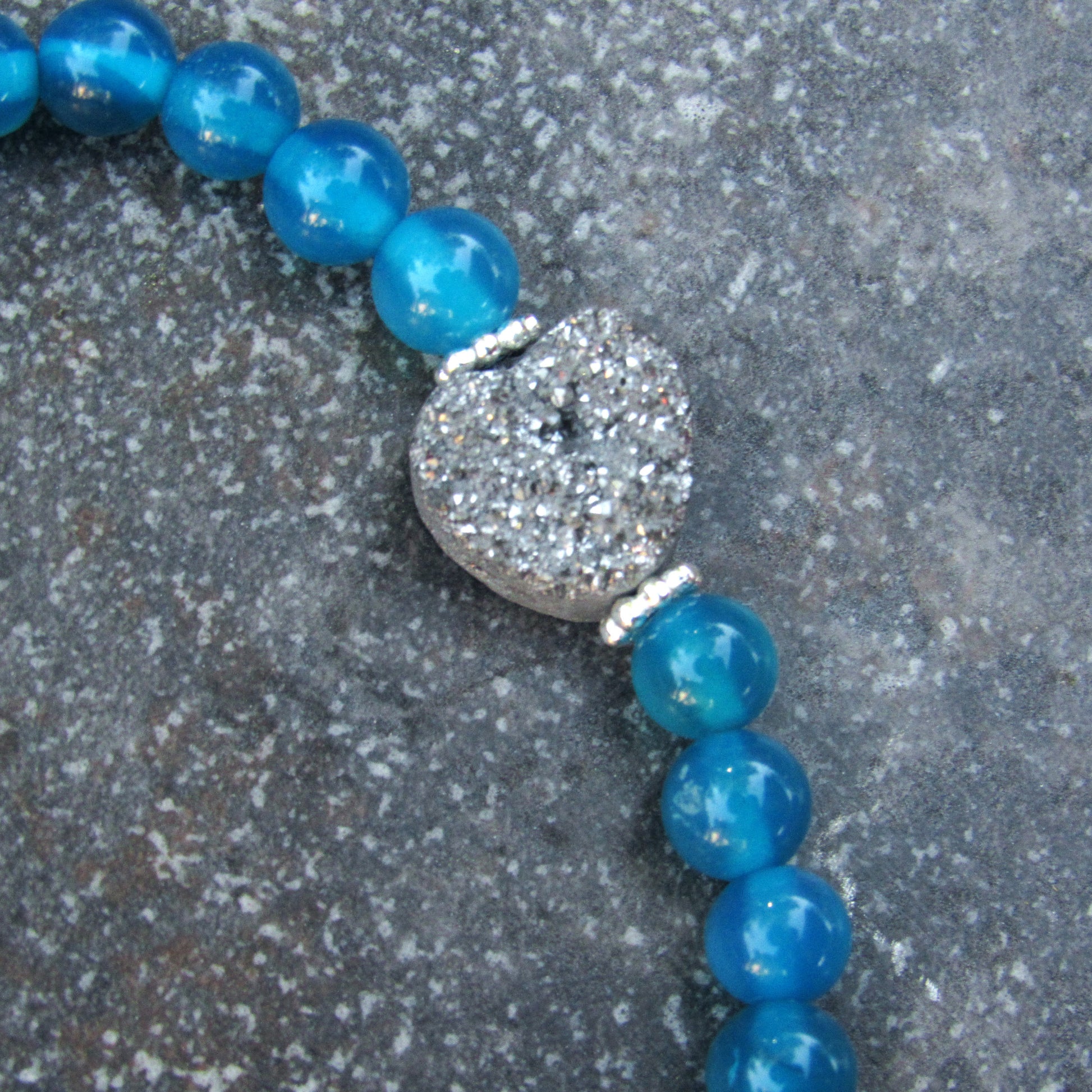Blue Agate, Sterling Silver, Silver Heart Druzy Warrior Bracelet