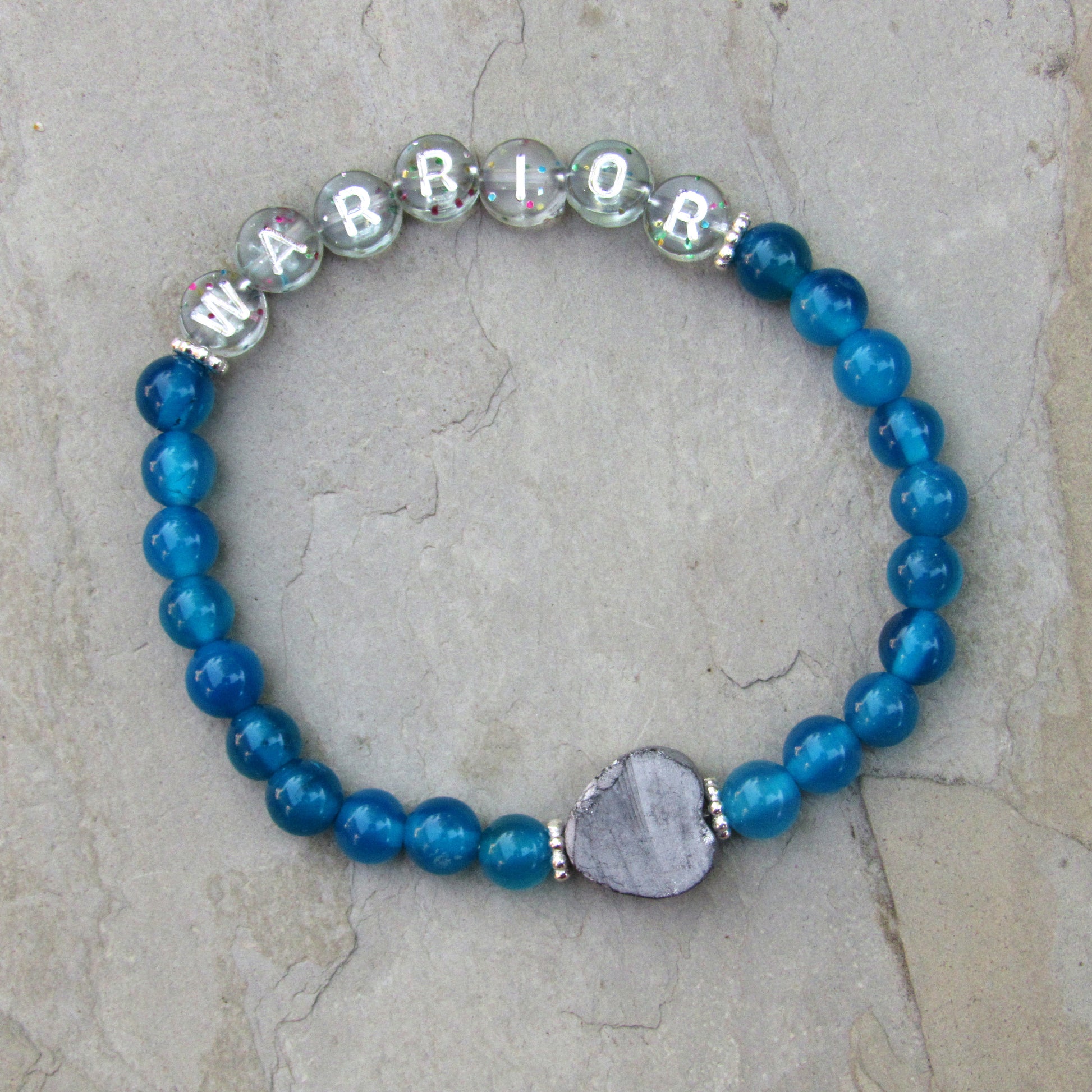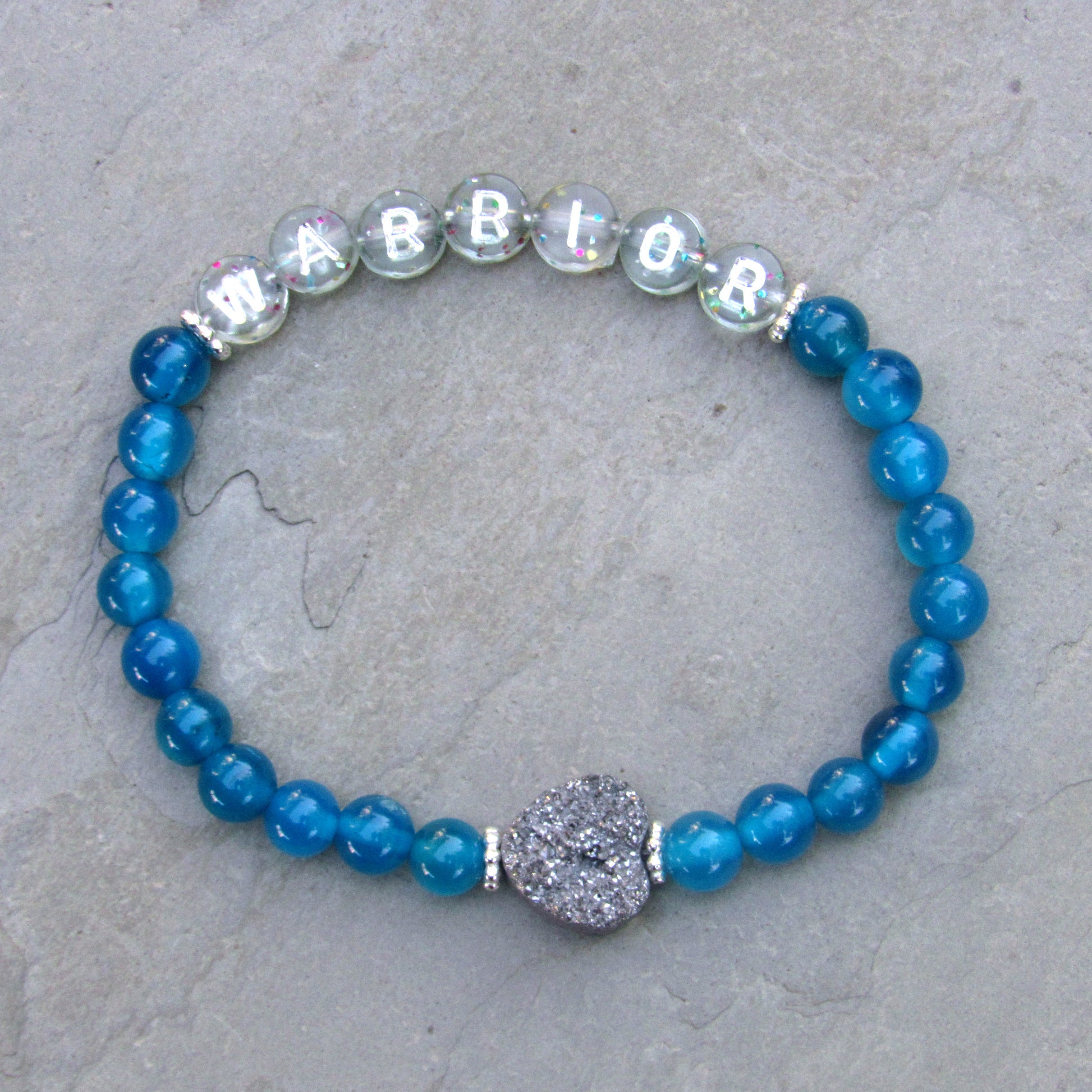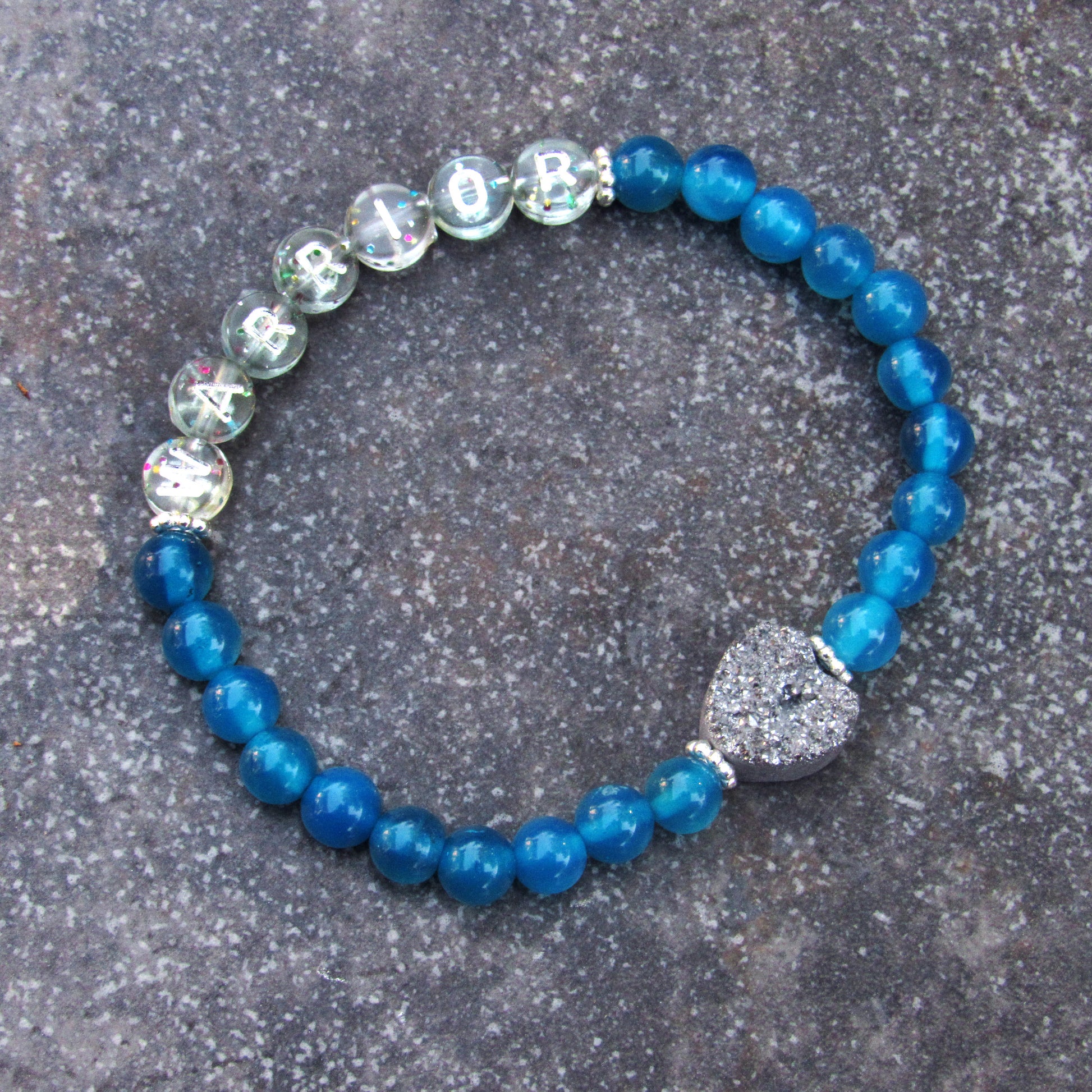Blue Agate, Sterling Silver, Silver Heart Druzy Warrior Bracelet