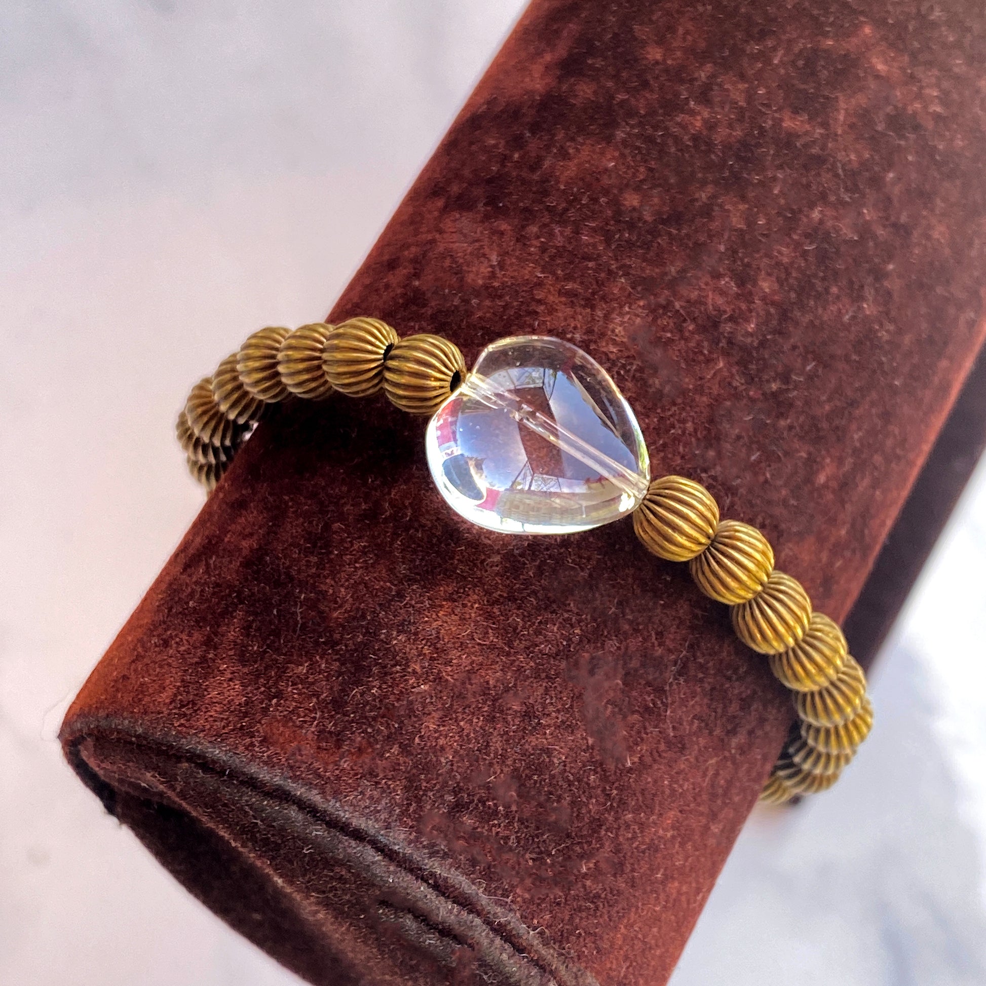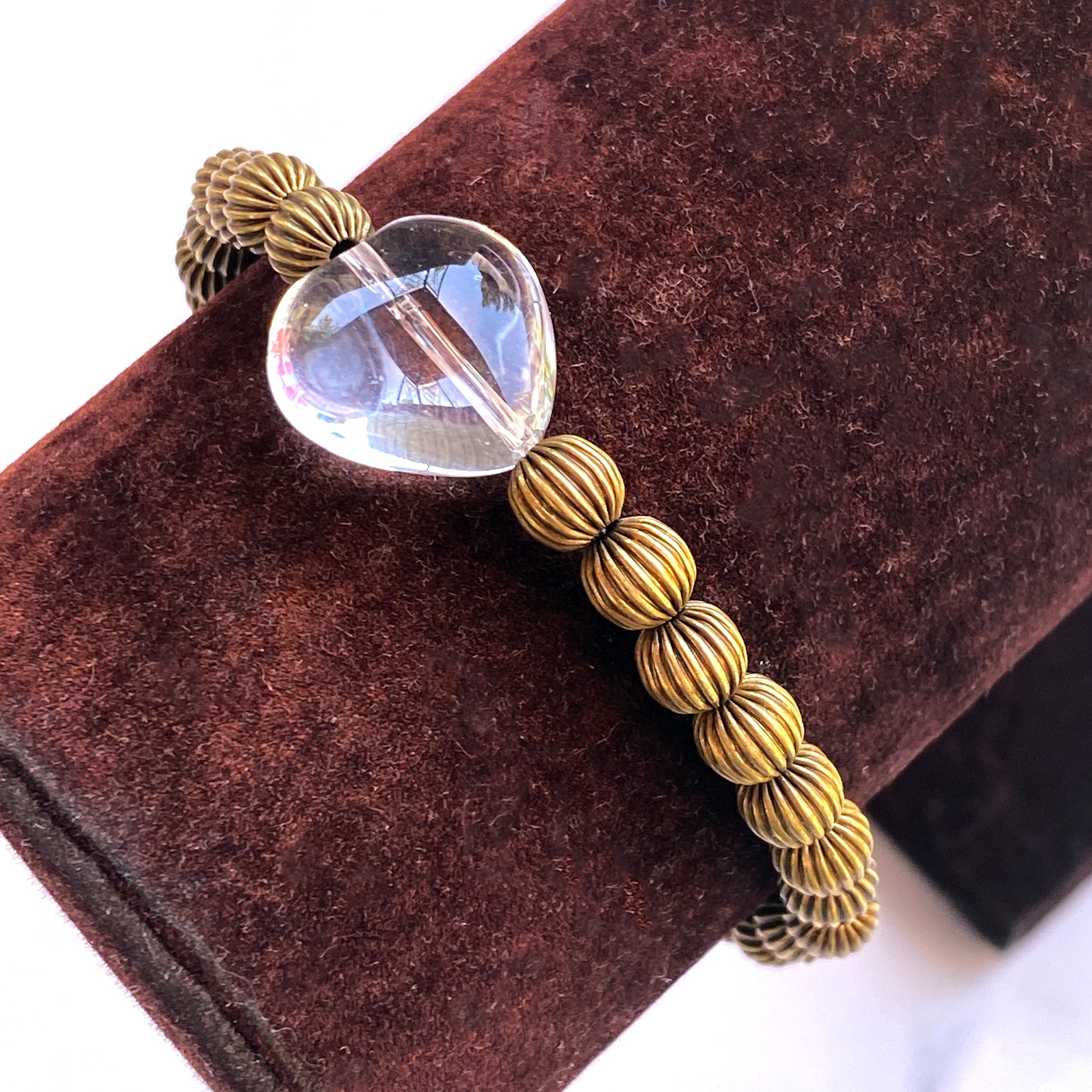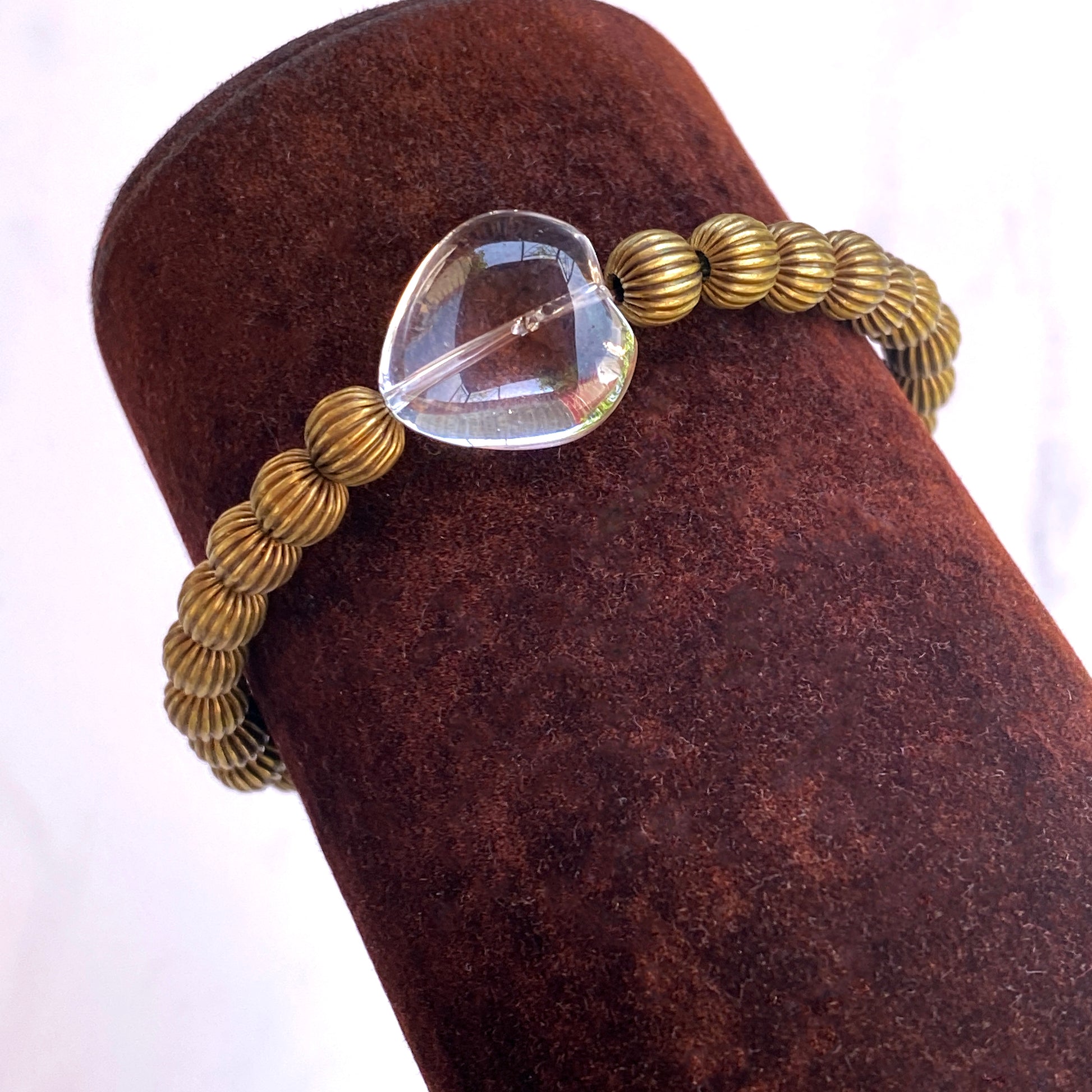 Brass and Clear Quartz gemstone Heart Stretch Bracelet