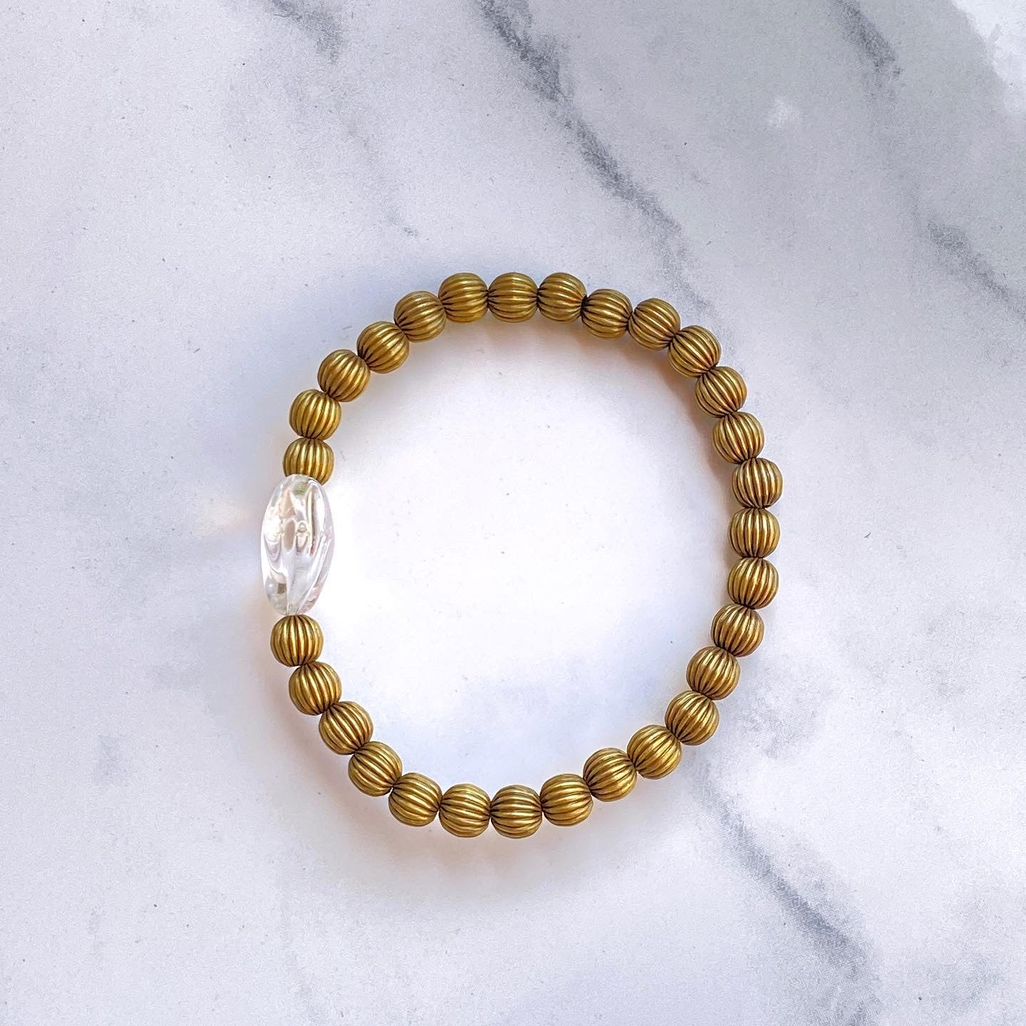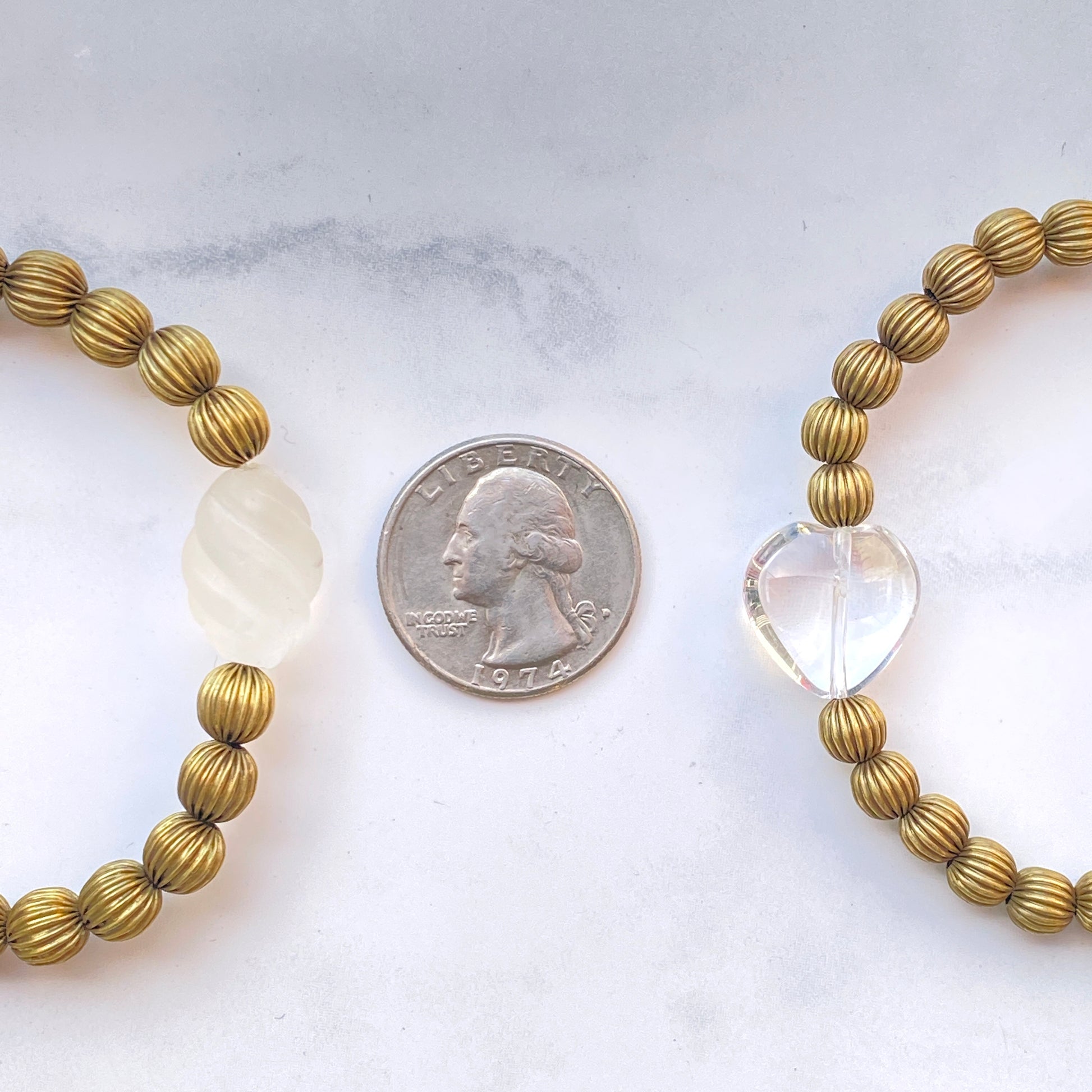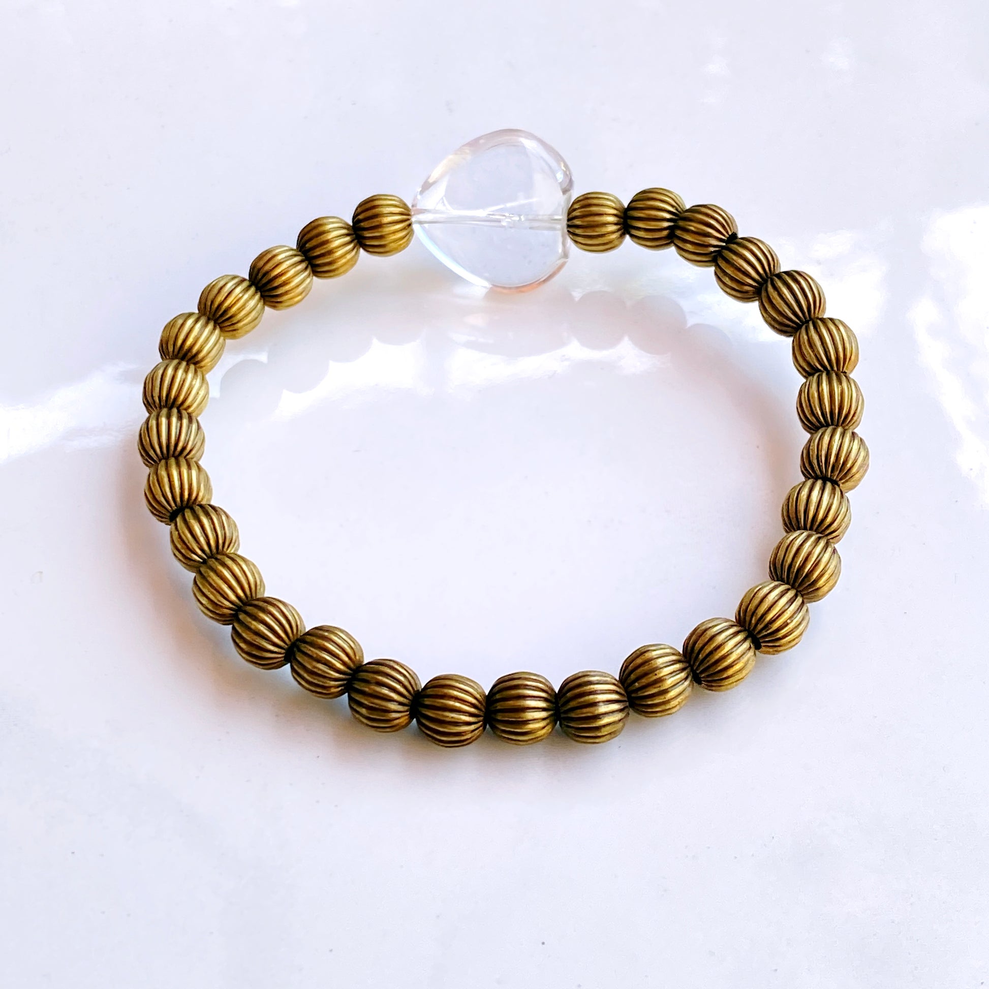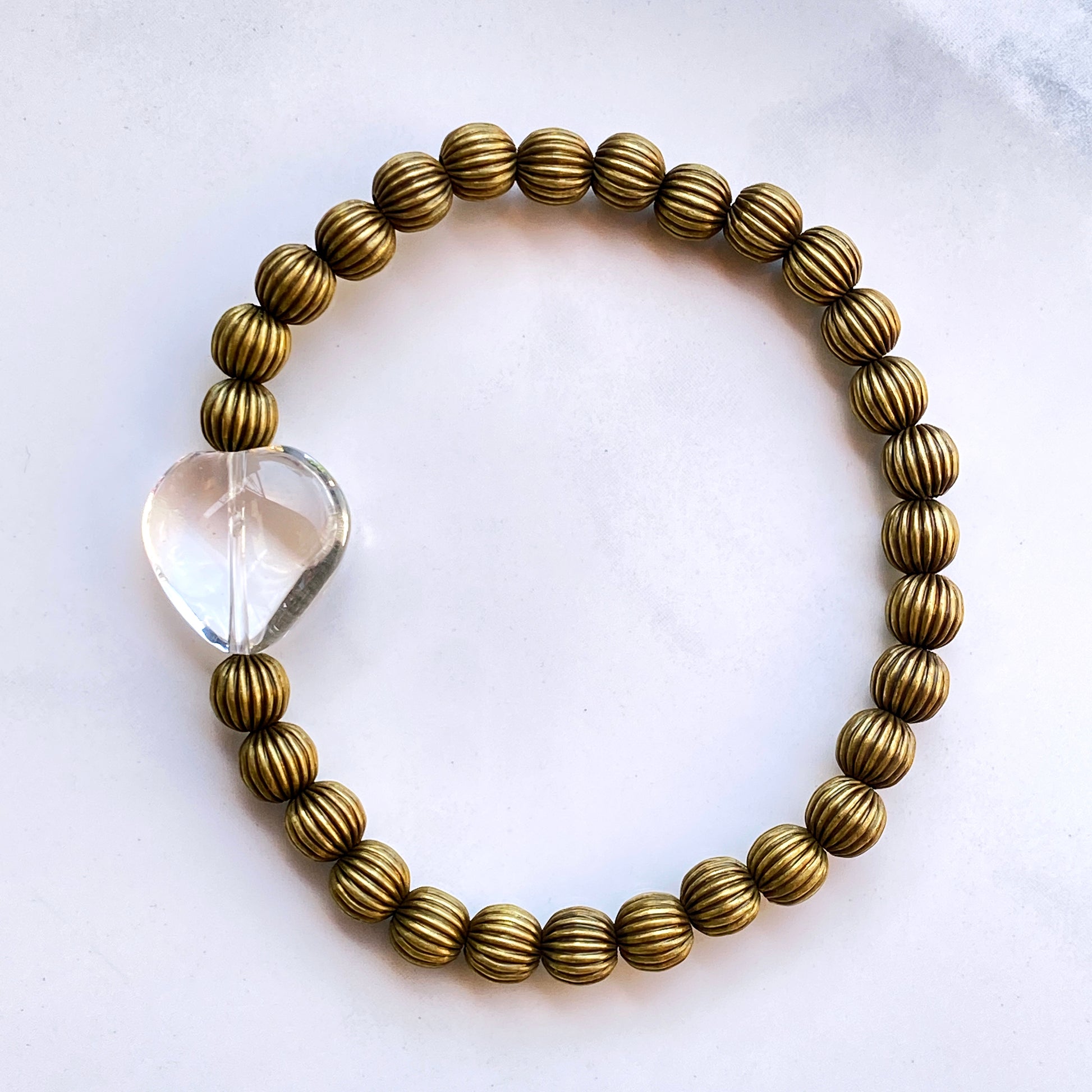 Brass and Clear Quartz gemstone Heart Stretch Bracelet