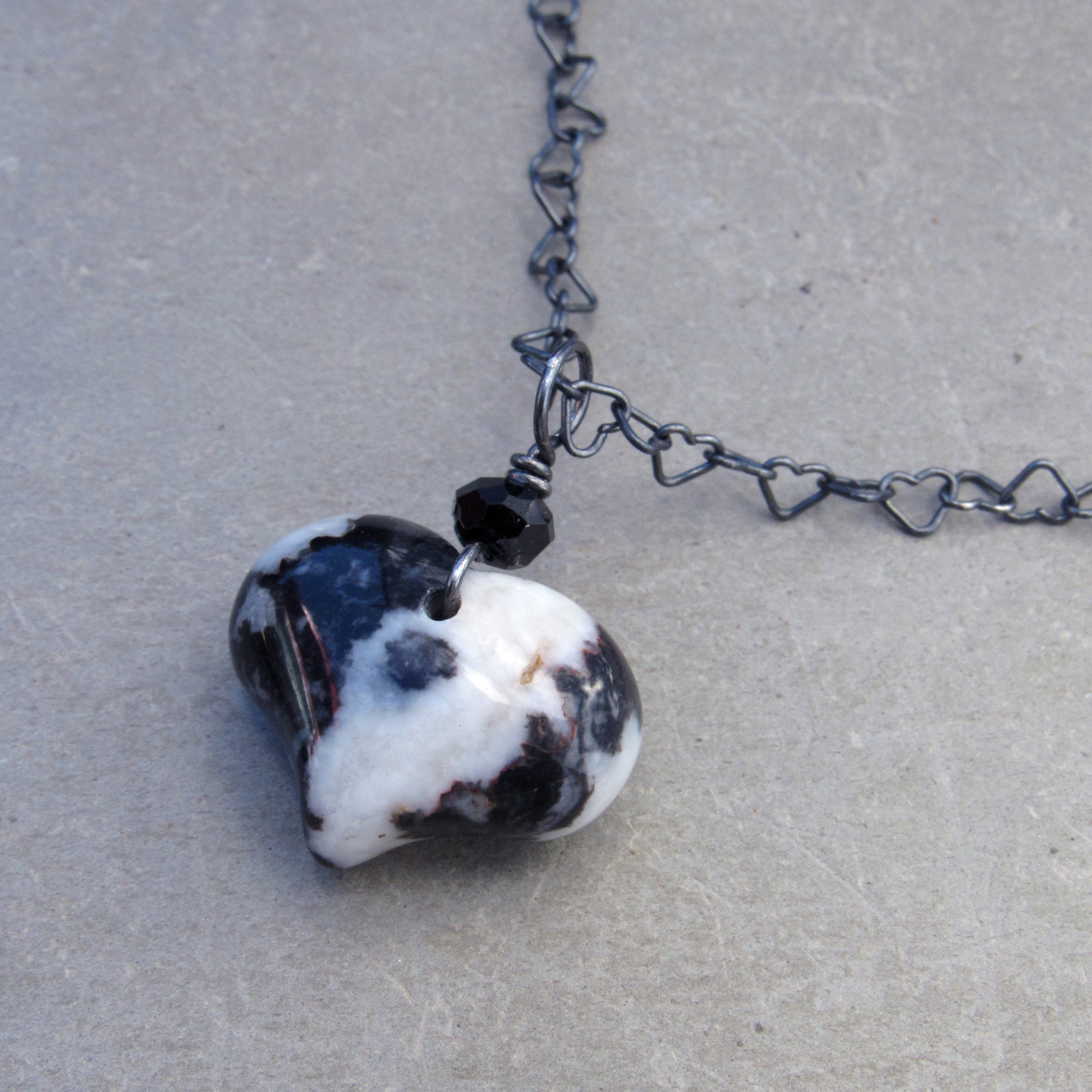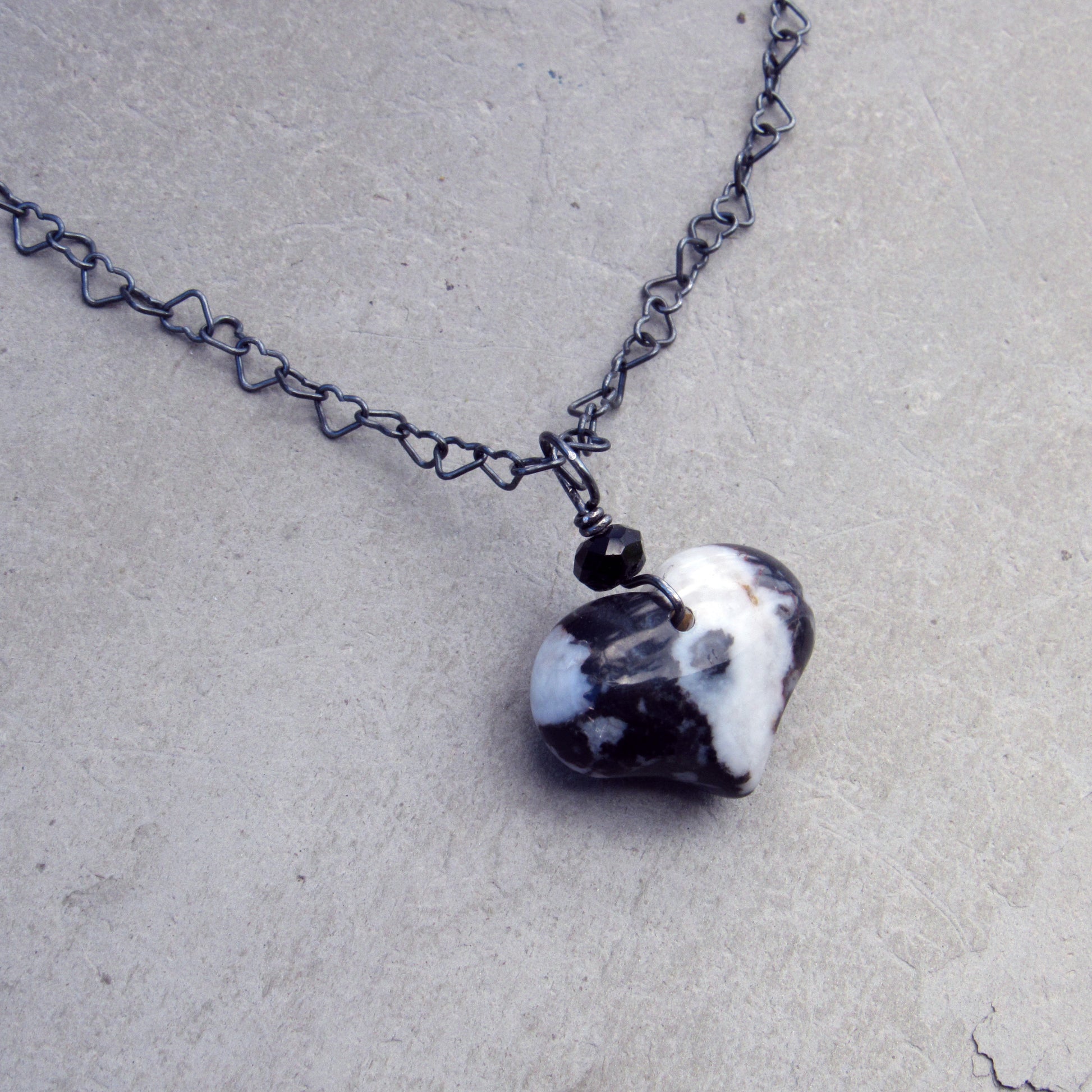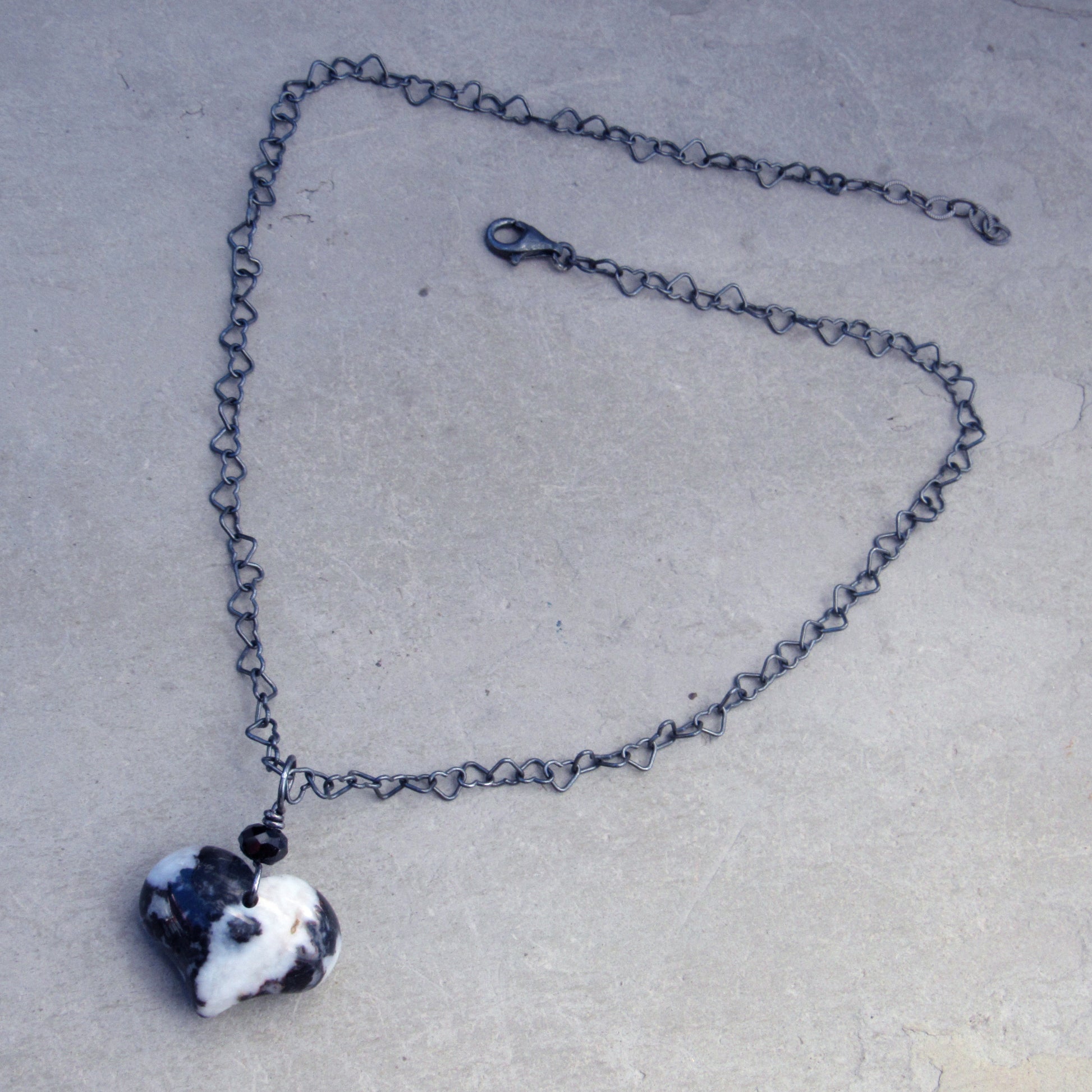 Black & White Zebra Jasper, Black Spinel on a 17" Oxidized Sterling Silver chain