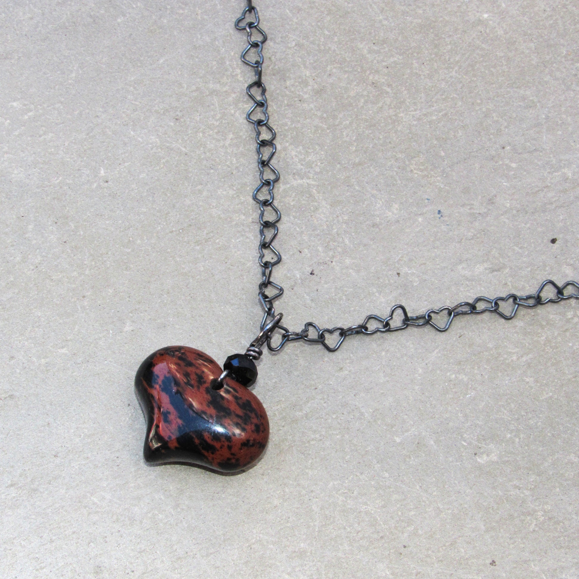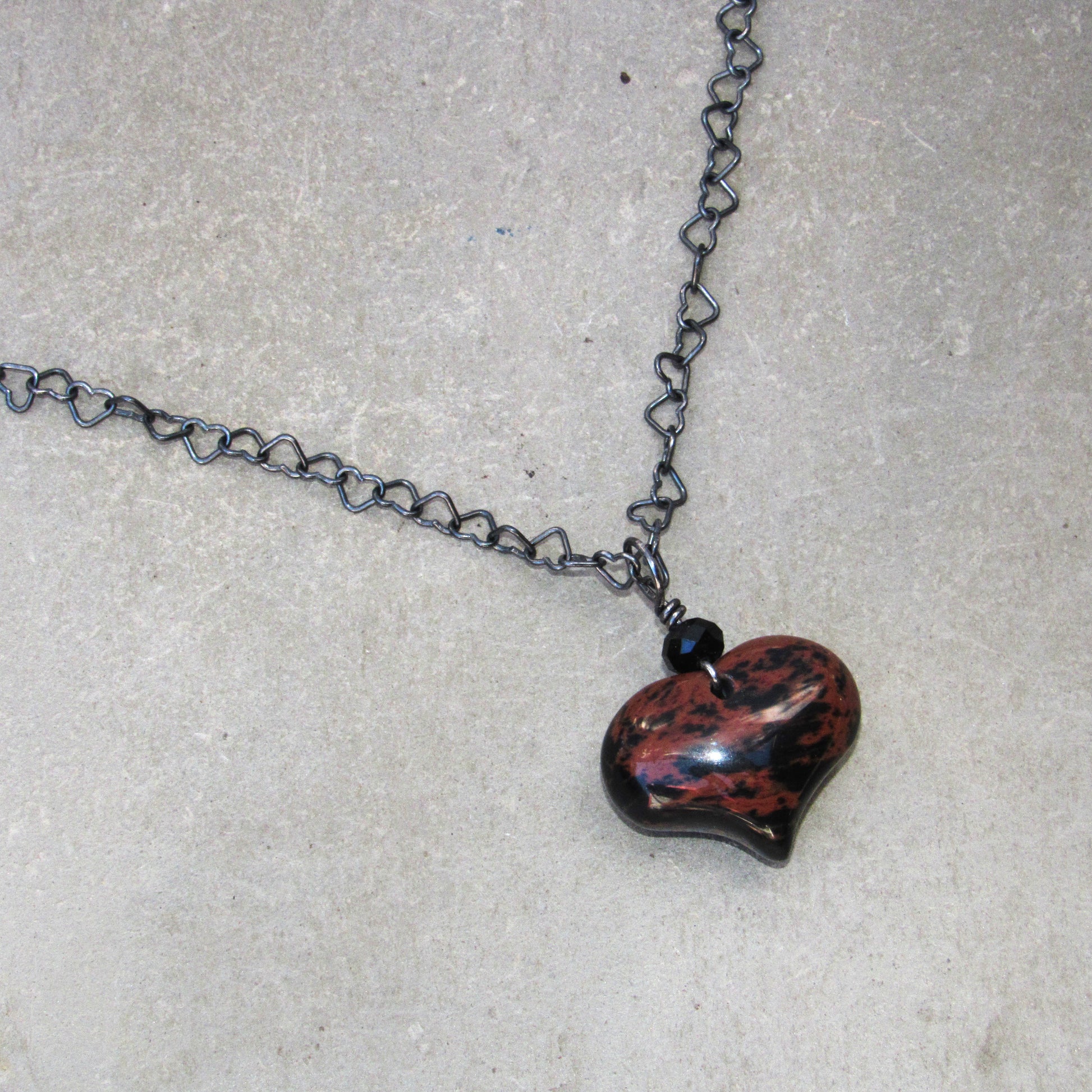 Mahogany Jasper, and Black Spinel on a 16.65" Oxidized Sterling Silver chain