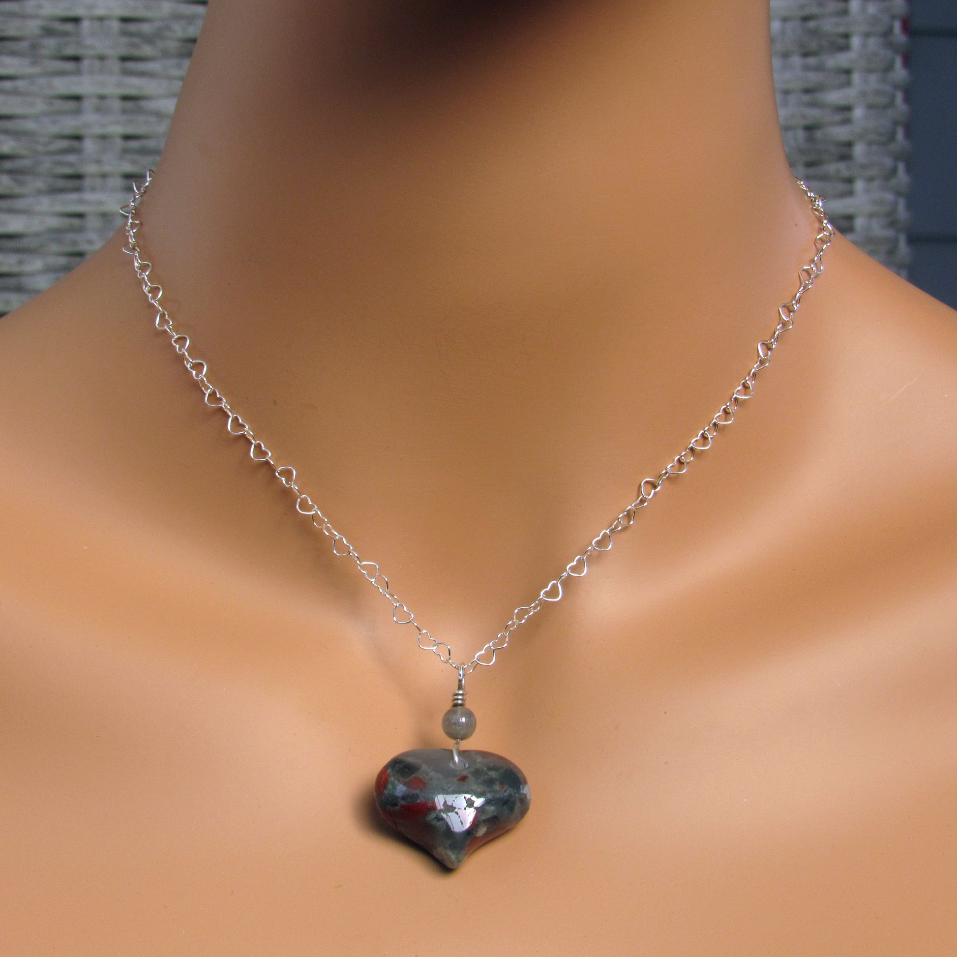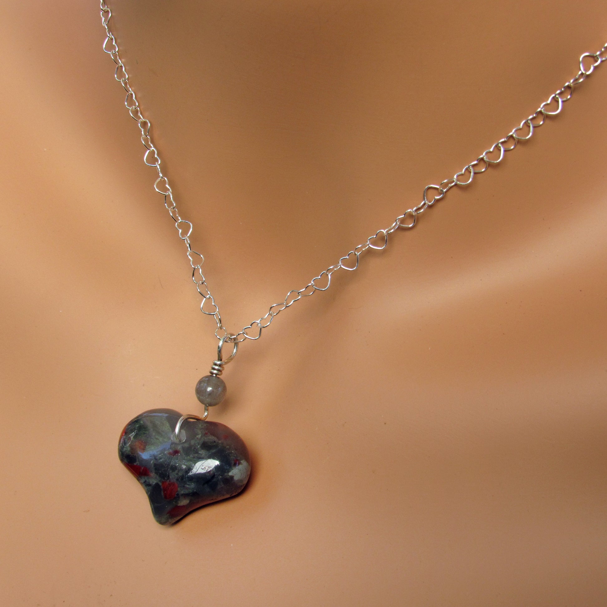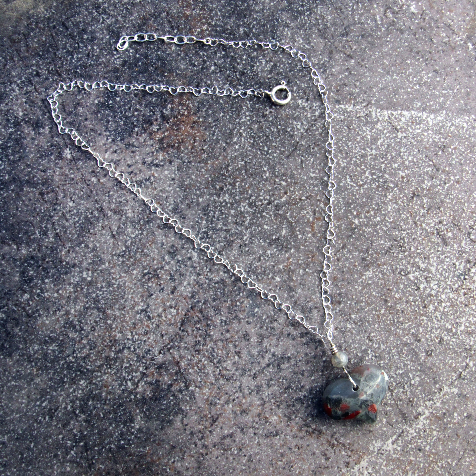 Blood Stone, Labradorite on a 17" Sterling Silver chain