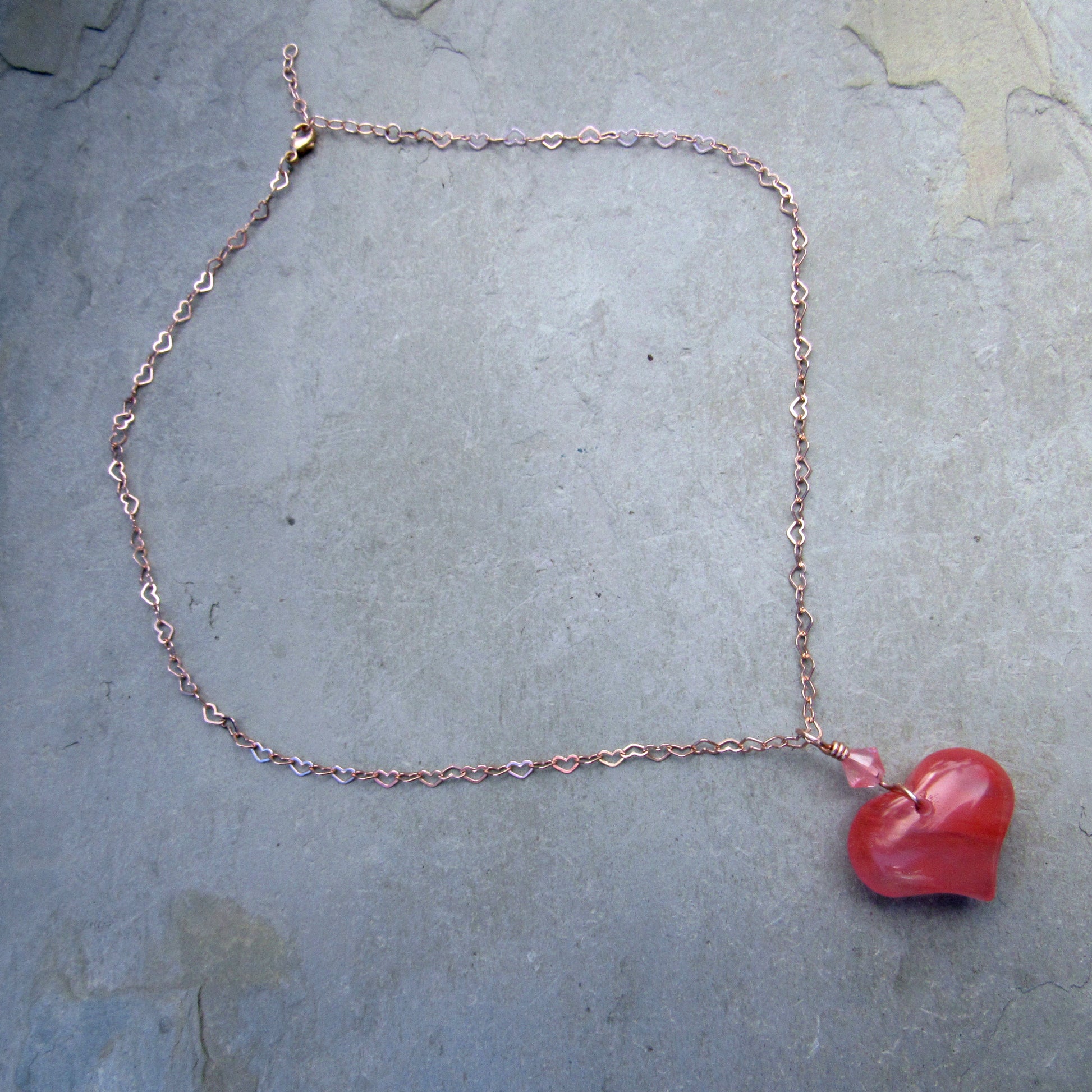 Cherry Quartz and 15 Kt Rose Gold 17" 14kt Rose Gold vermeli over Sterling Silver chain