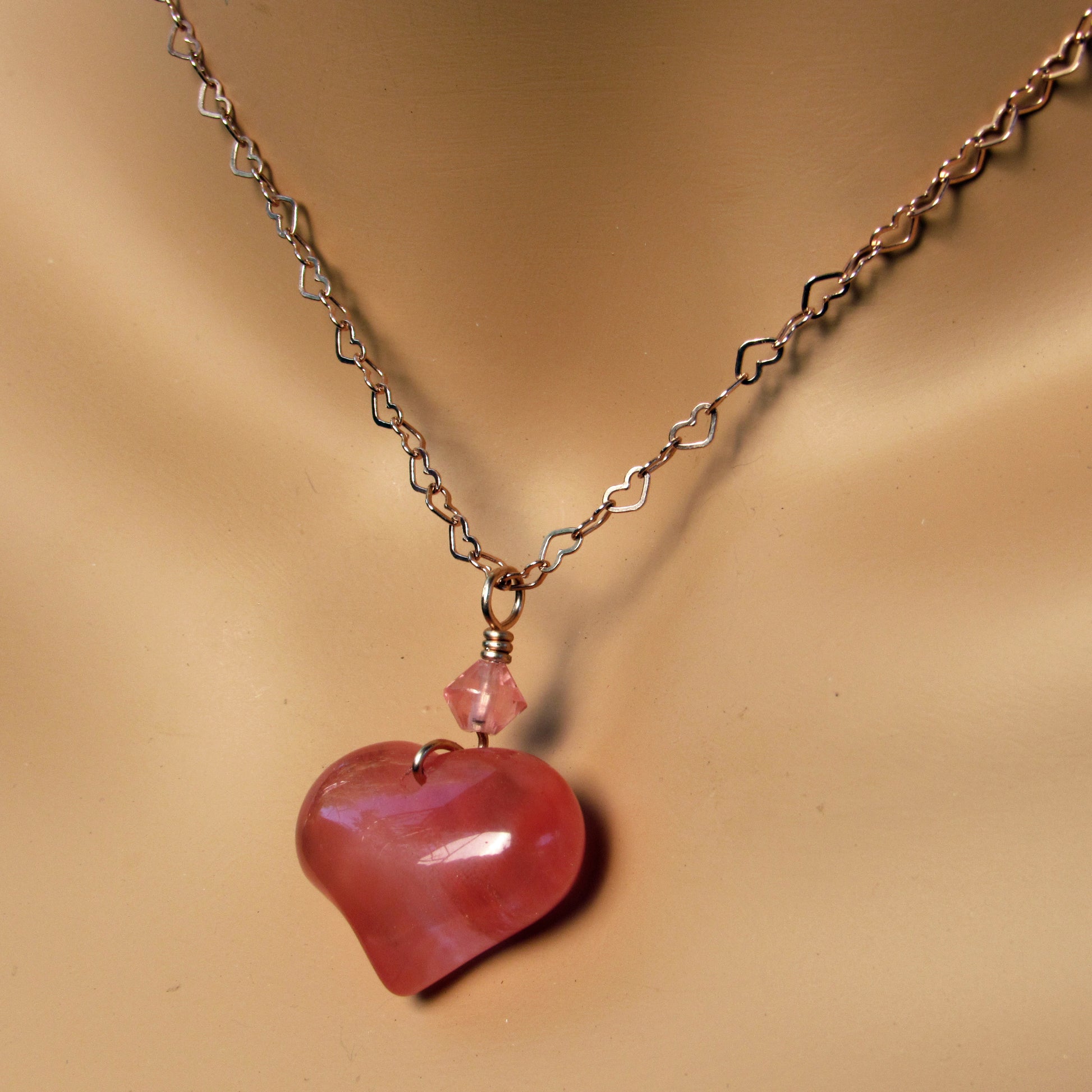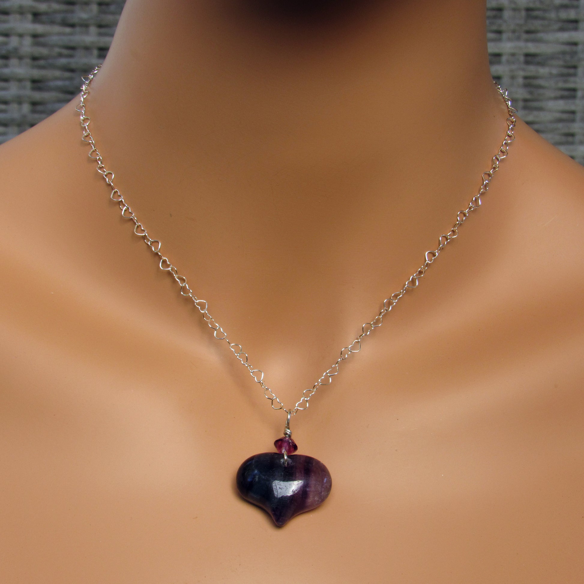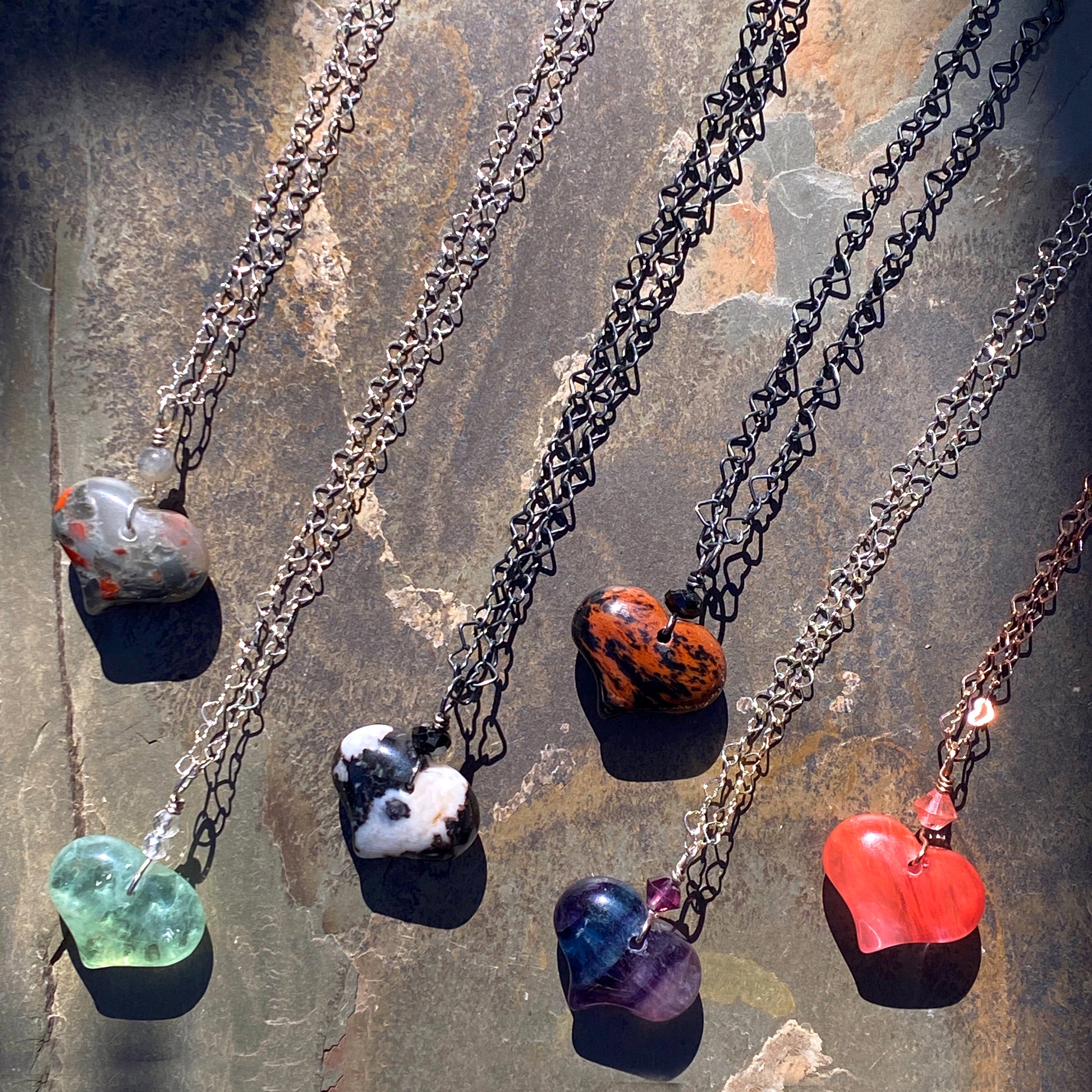 Women's Chain and Gemstone Heart Pendant Necklaces