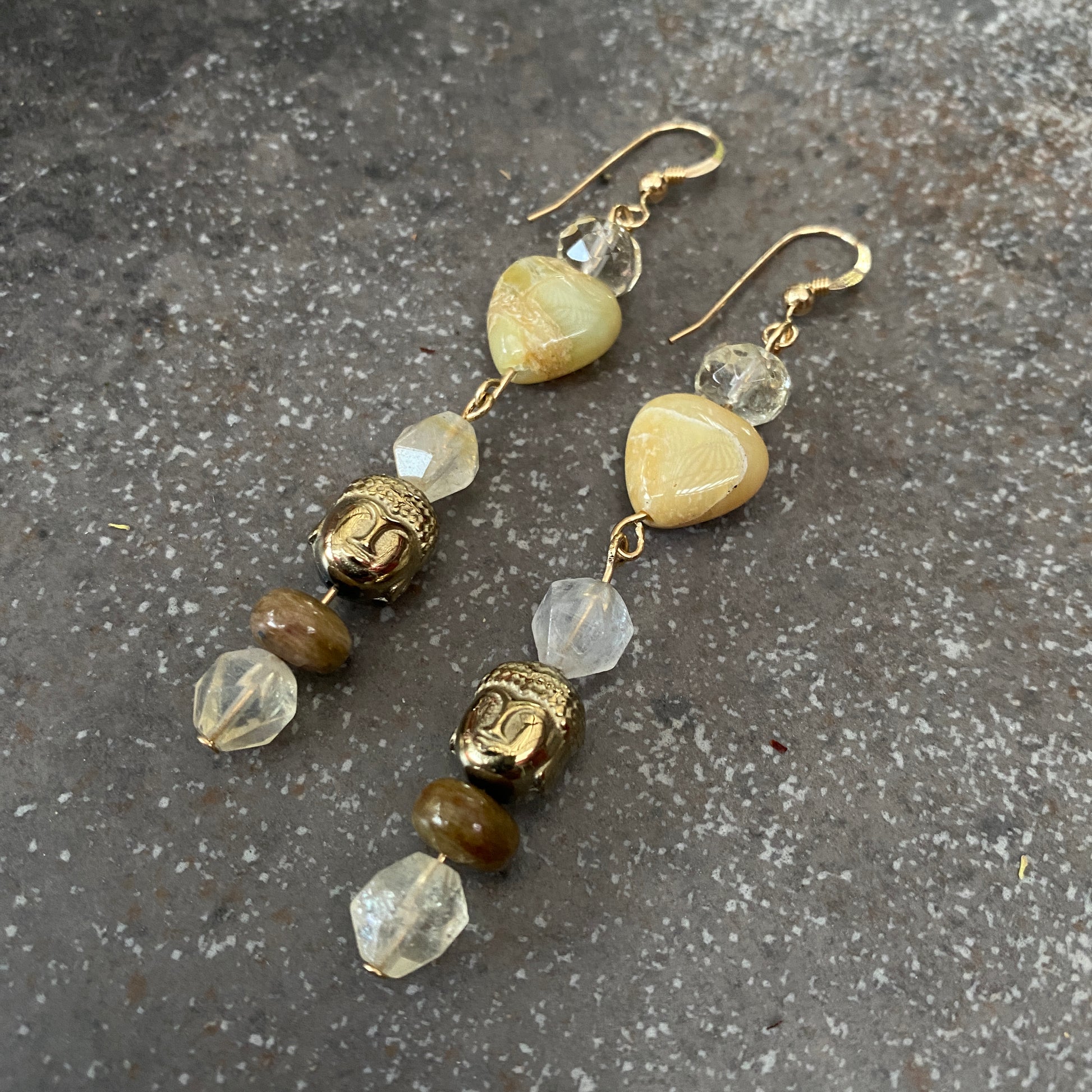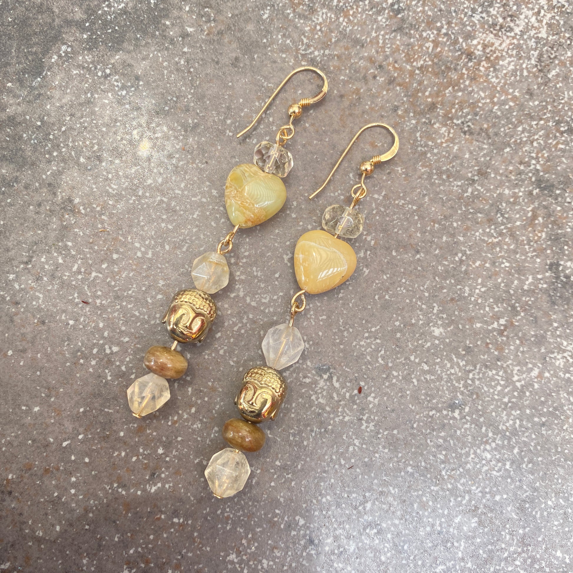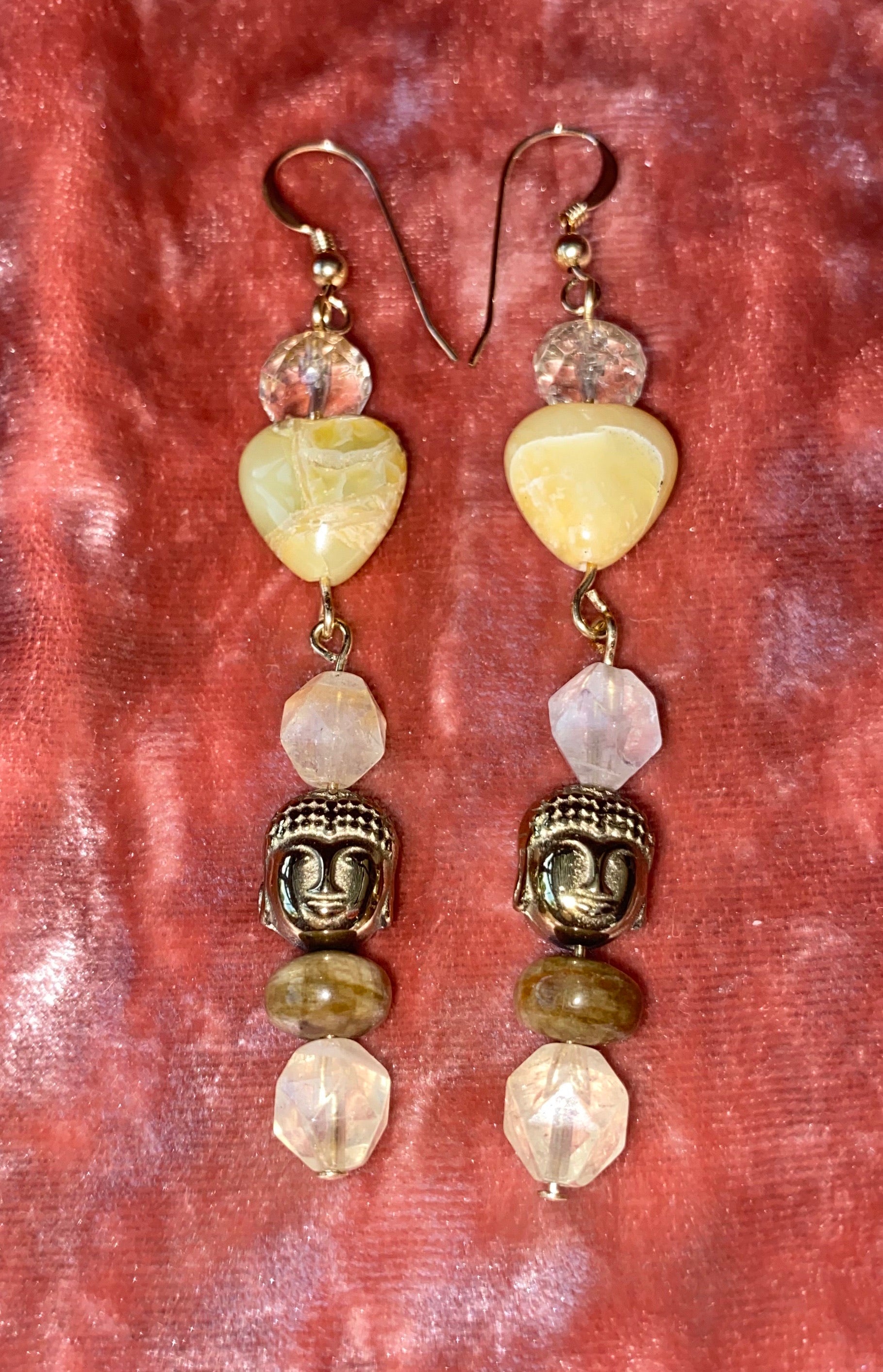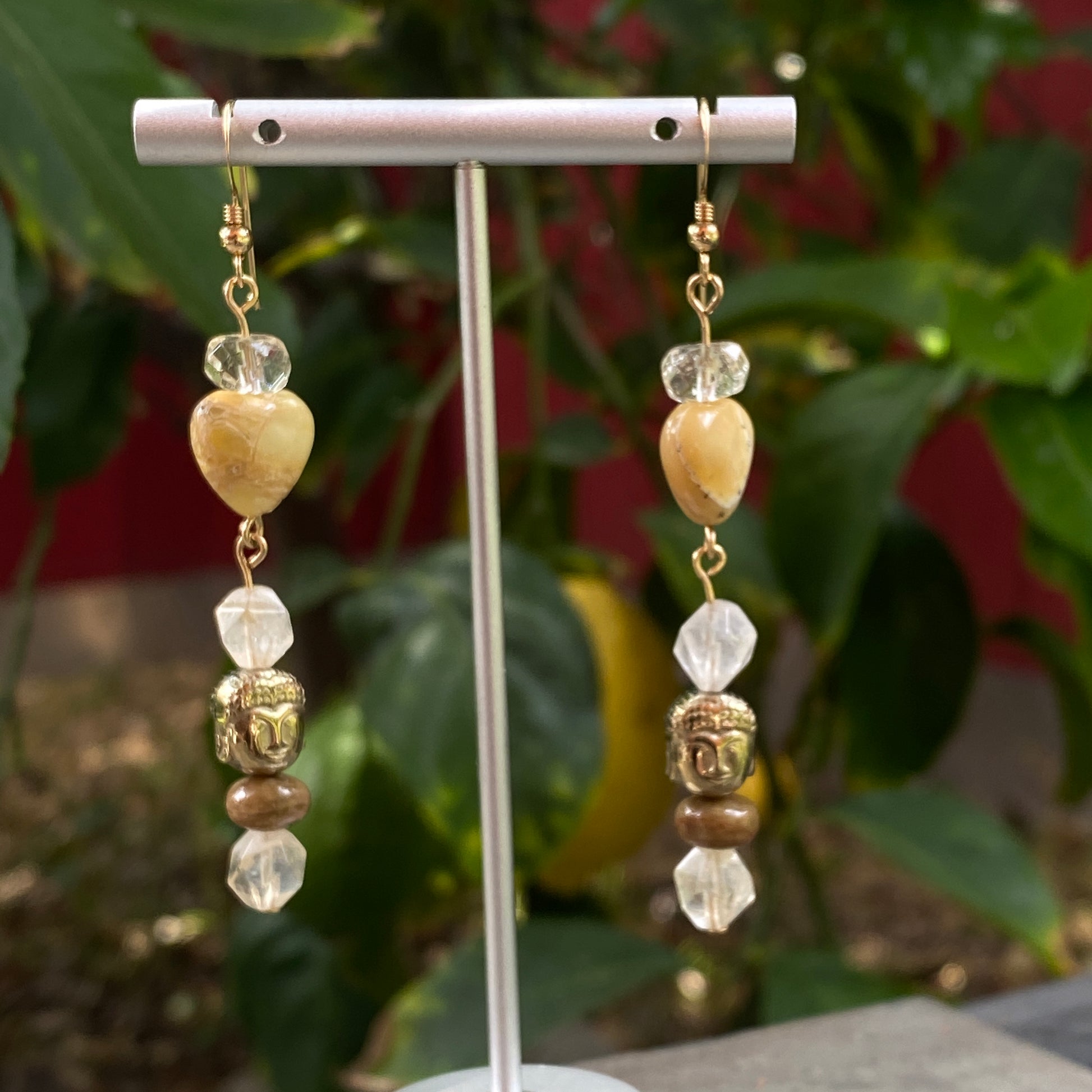 Gold Hematite Buddha with yellow Agate hearts and Citrine Drop Earrings