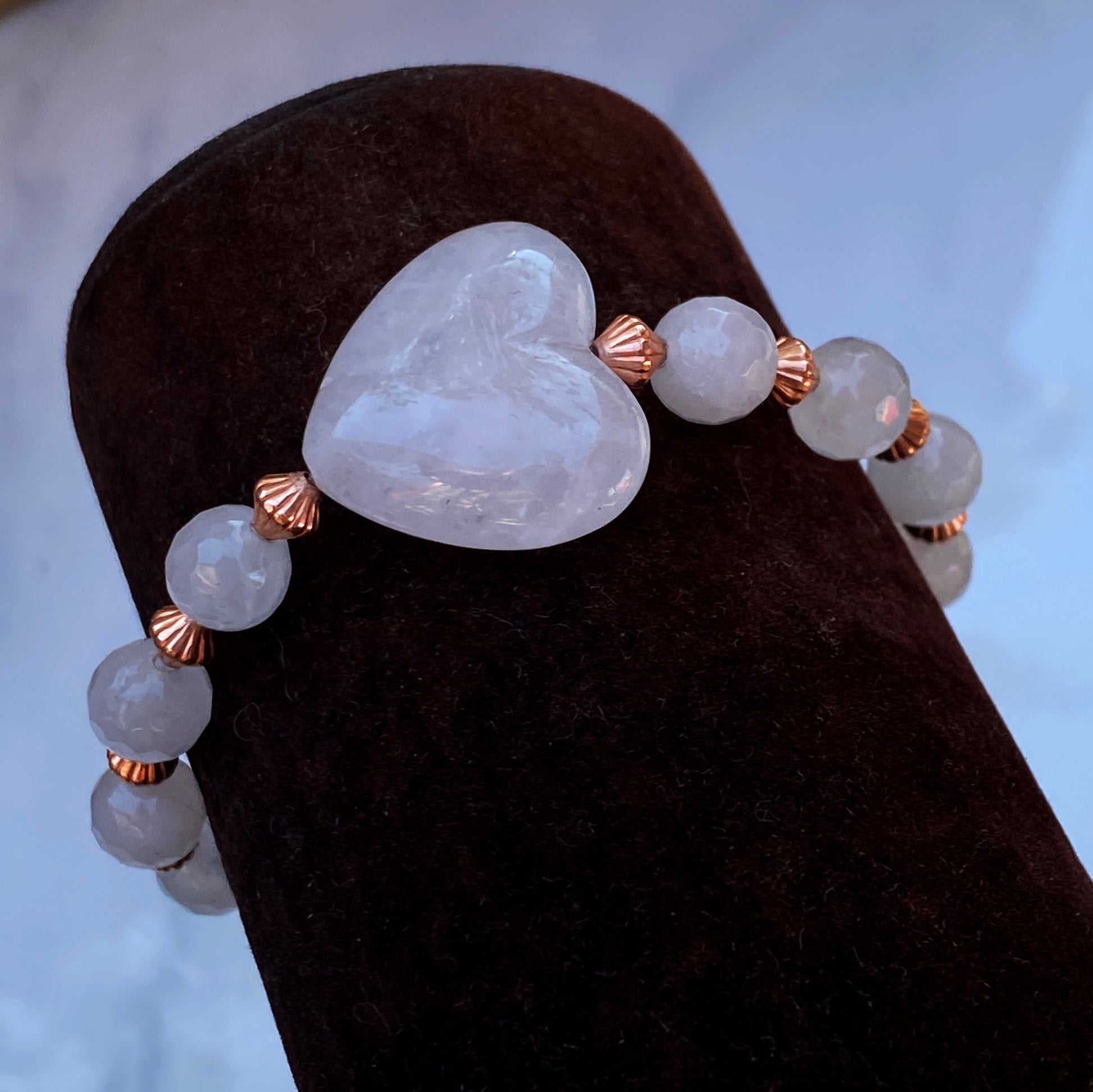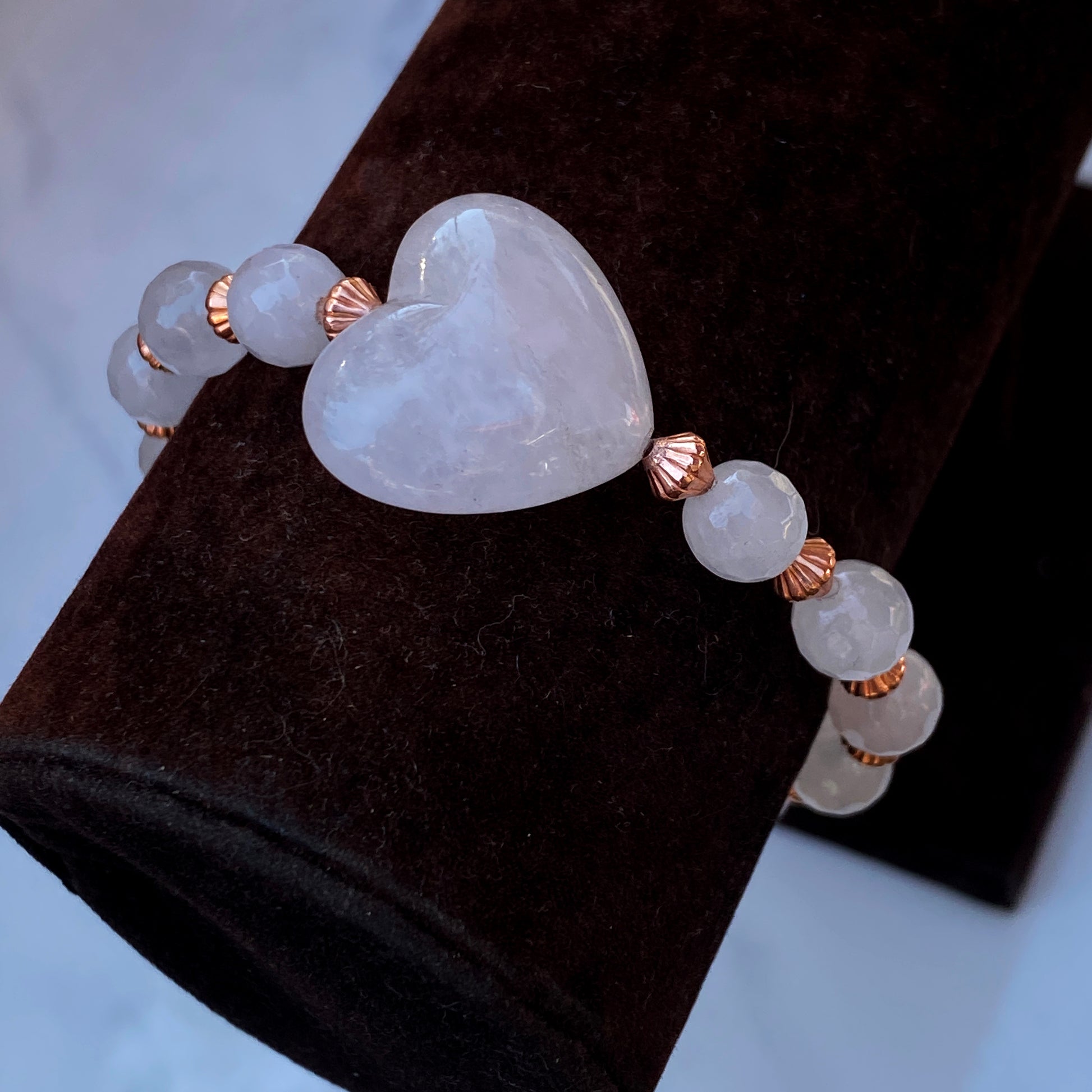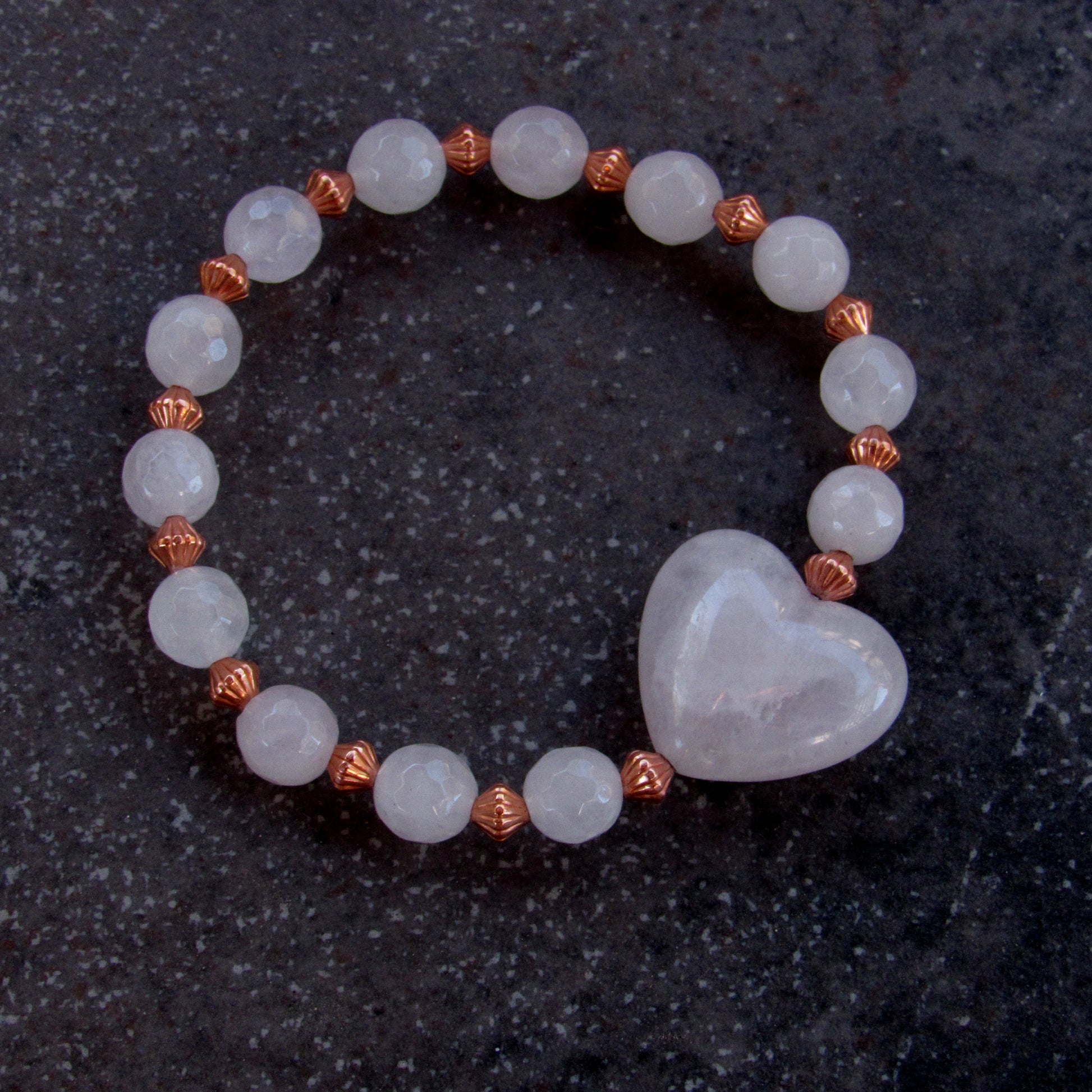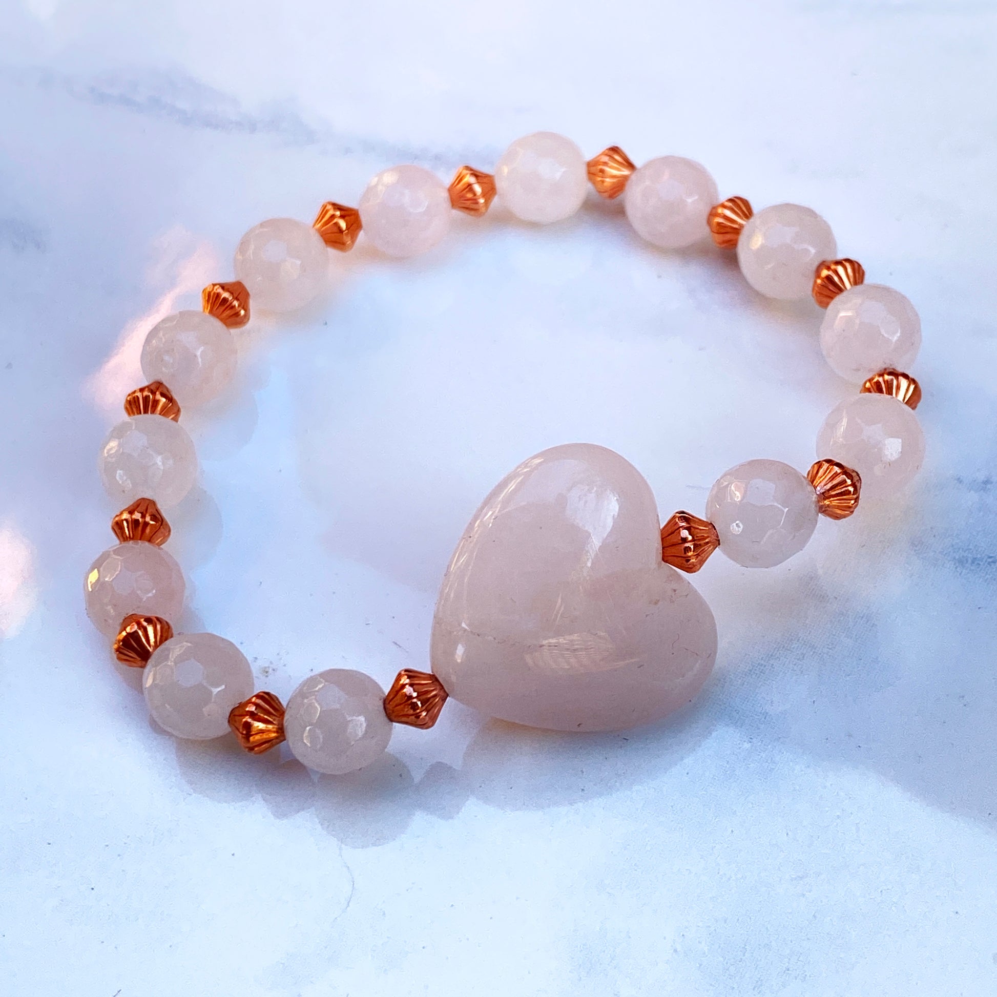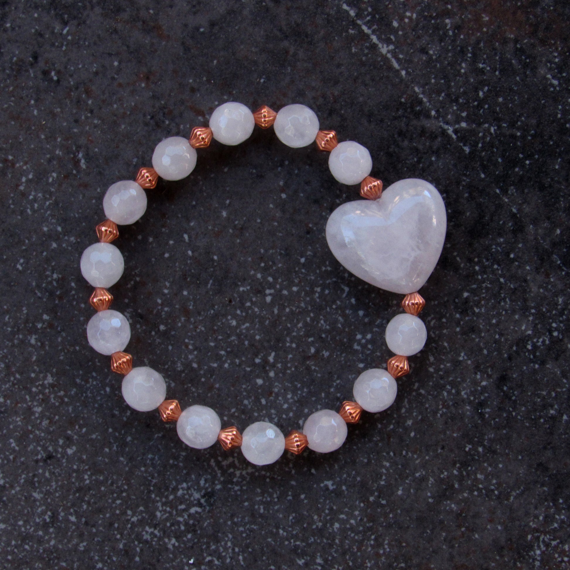 Copper and Rose Quartz gemstone Heart Beaded Bracelet