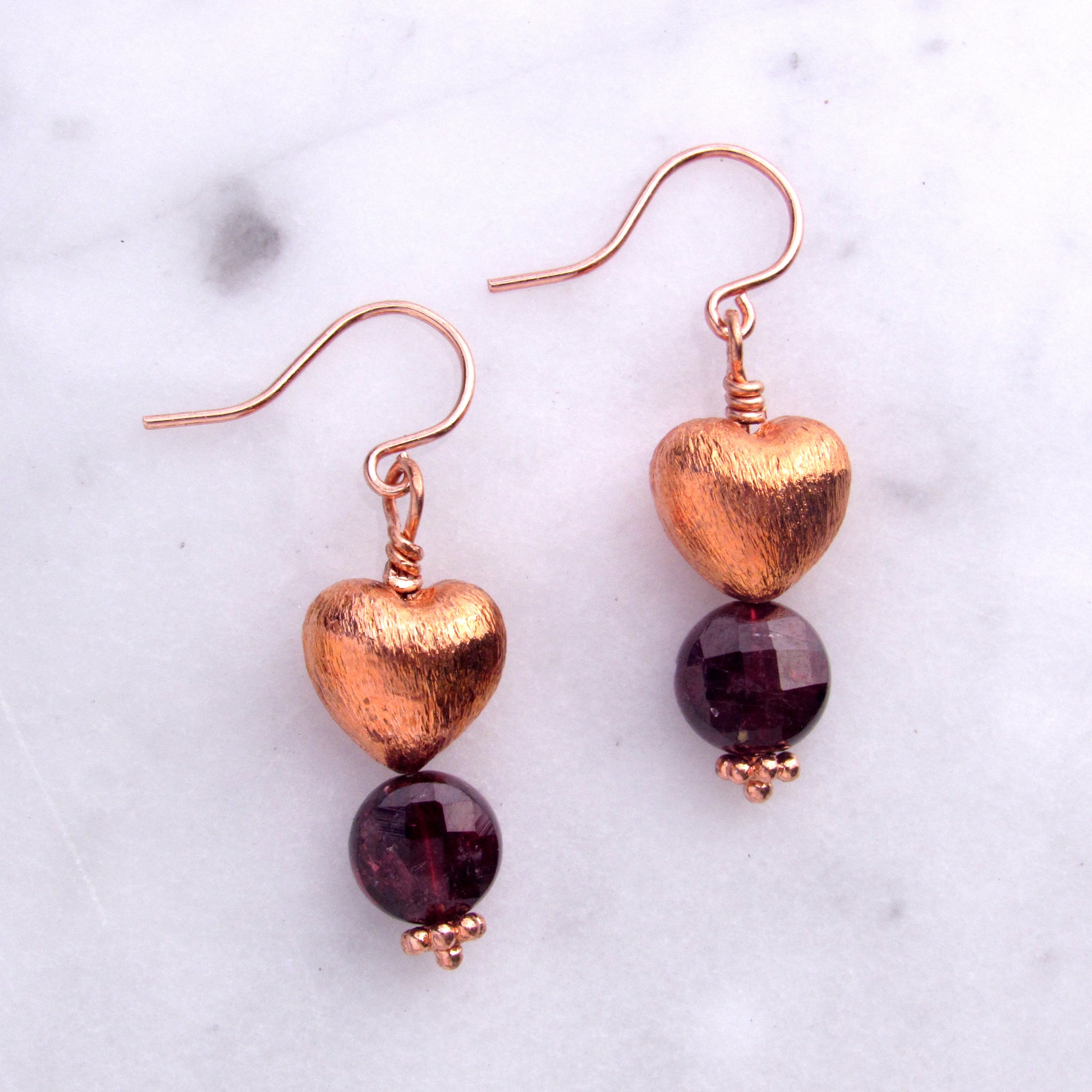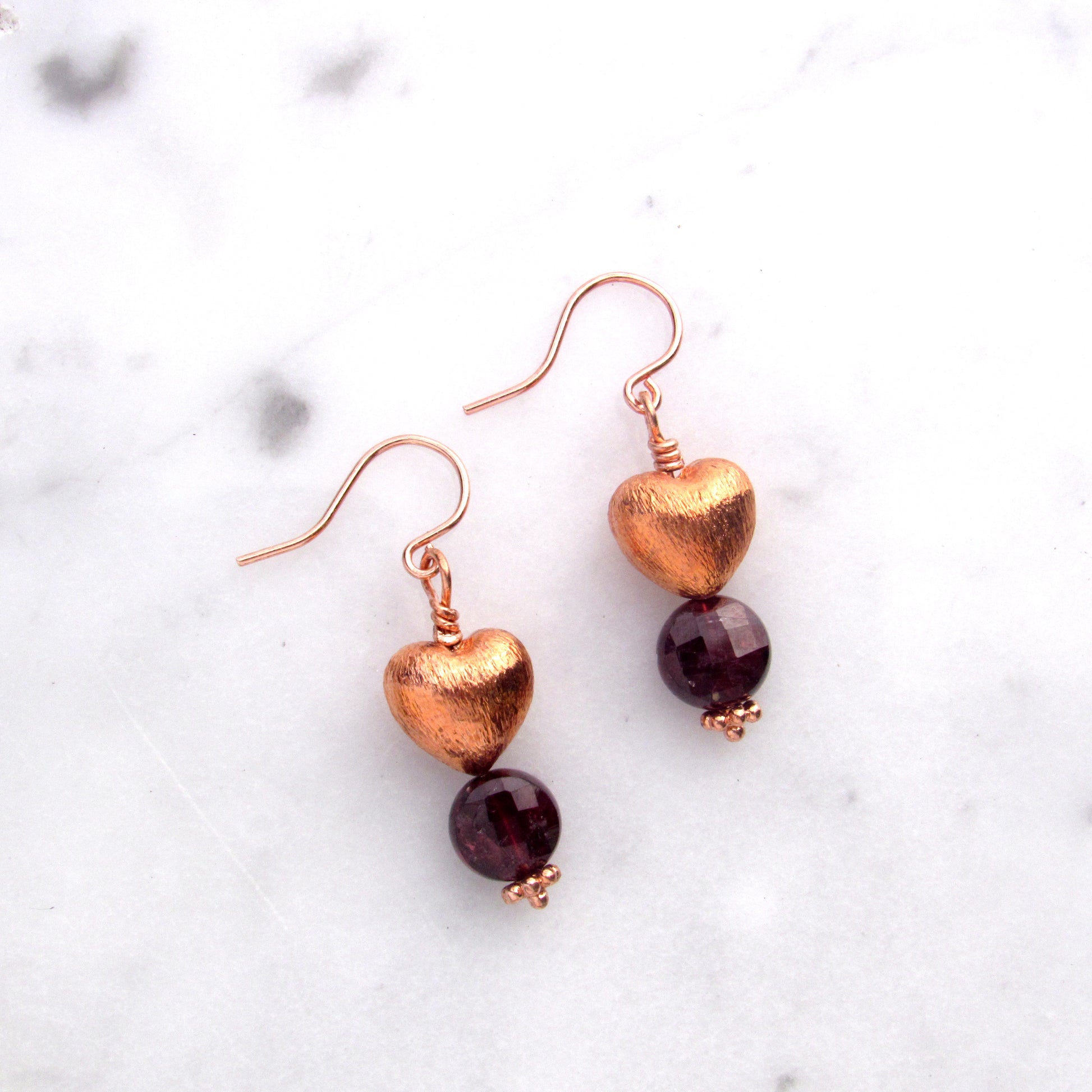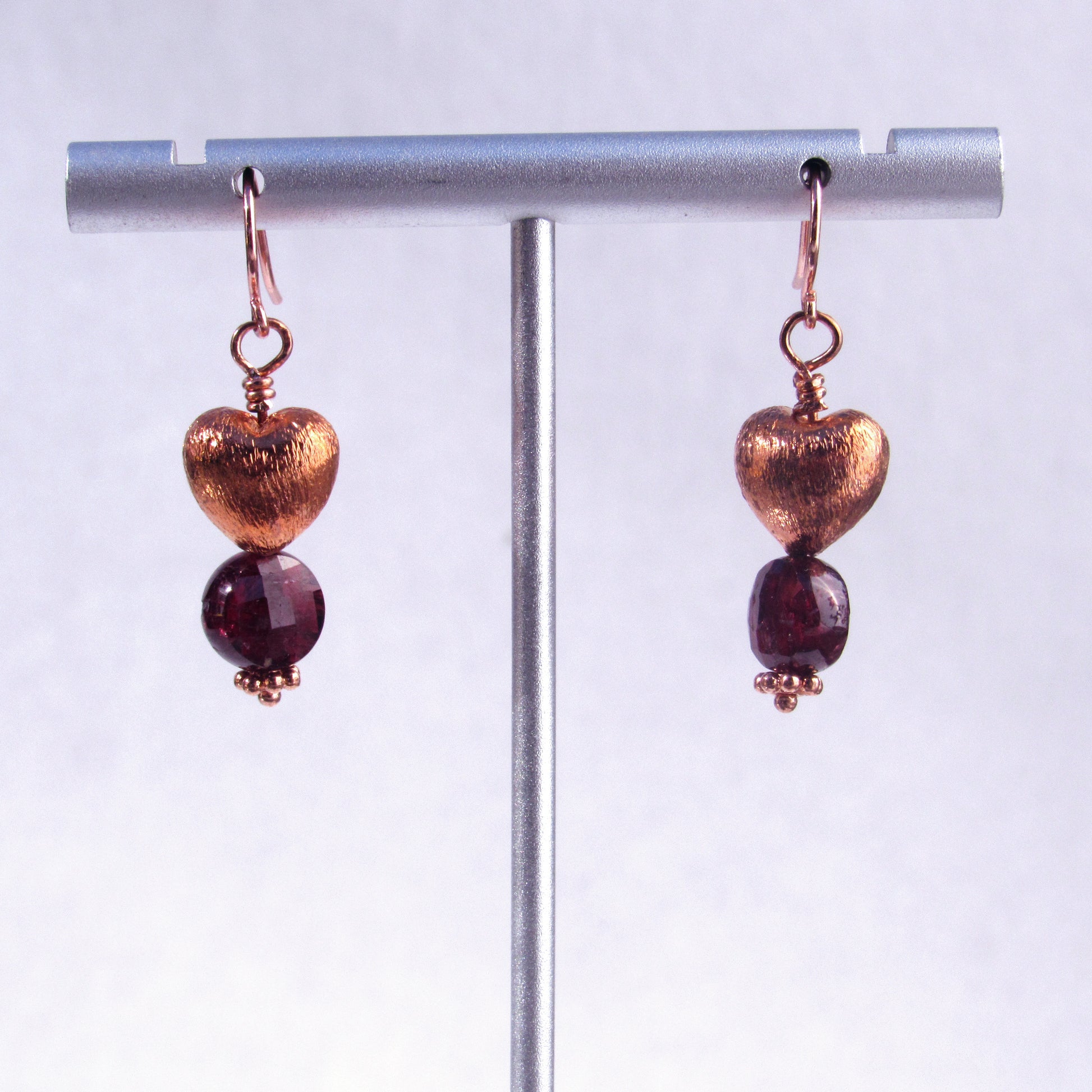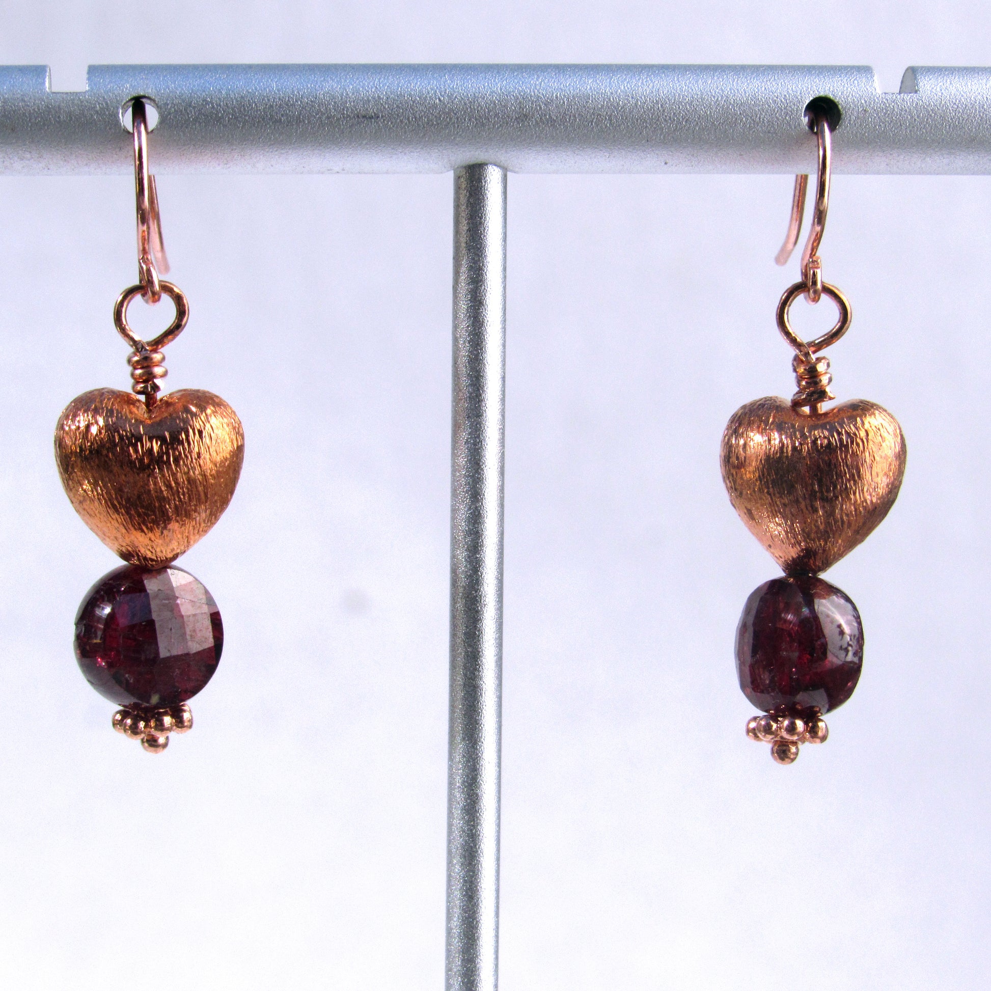 Copper Hearts with Garnet gemstone earrings