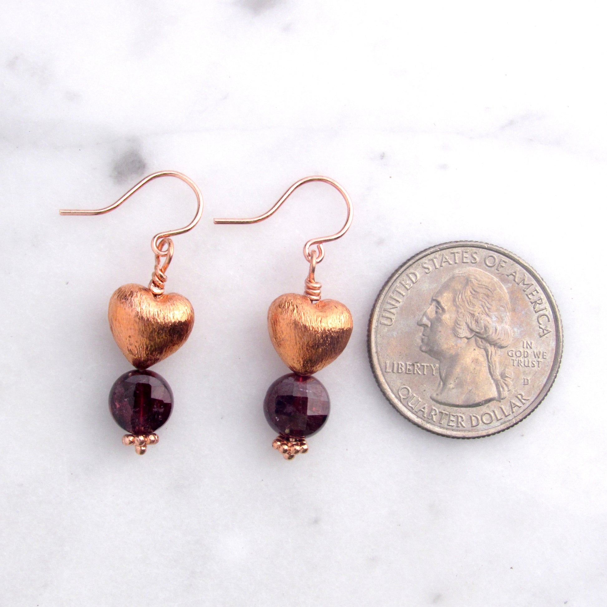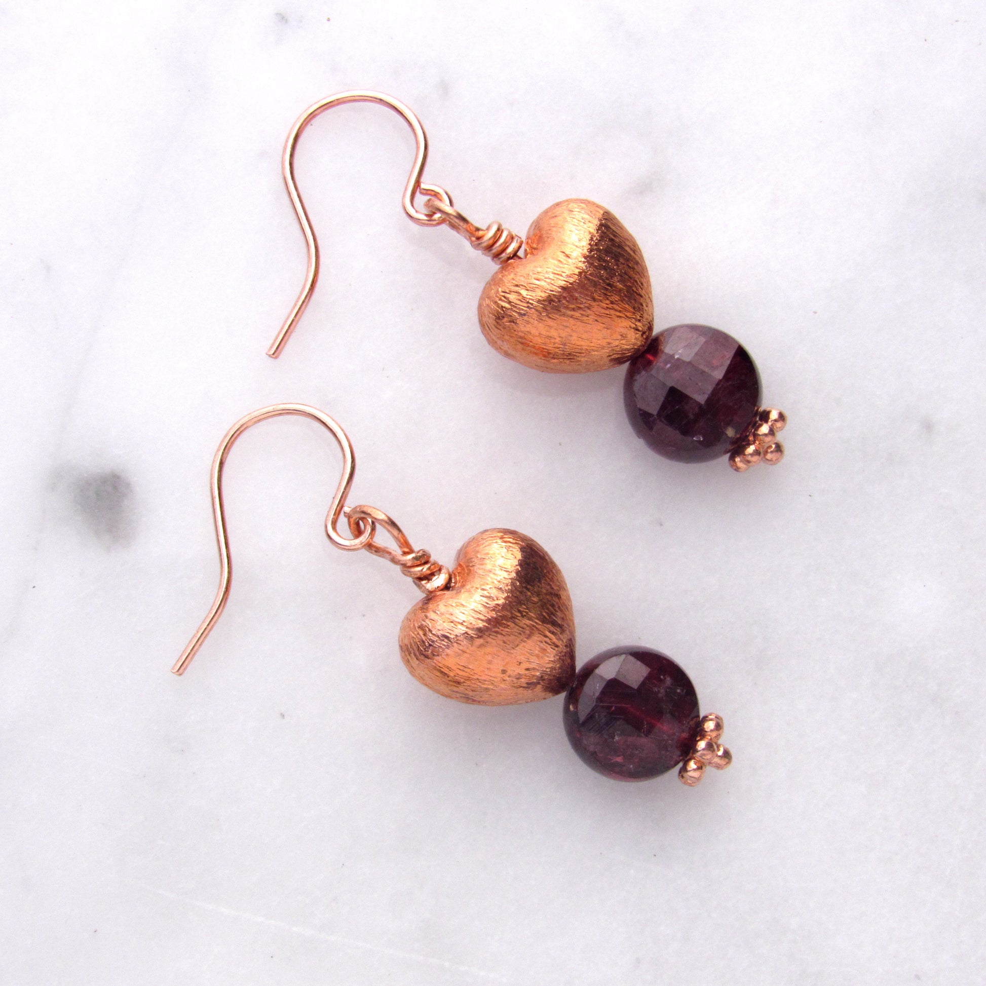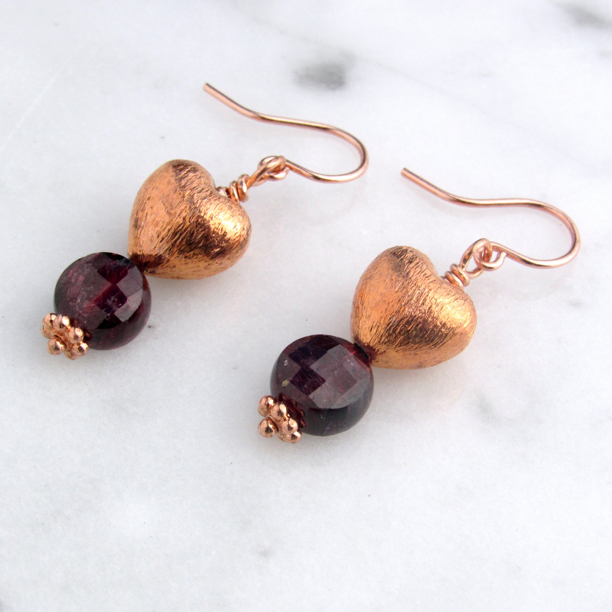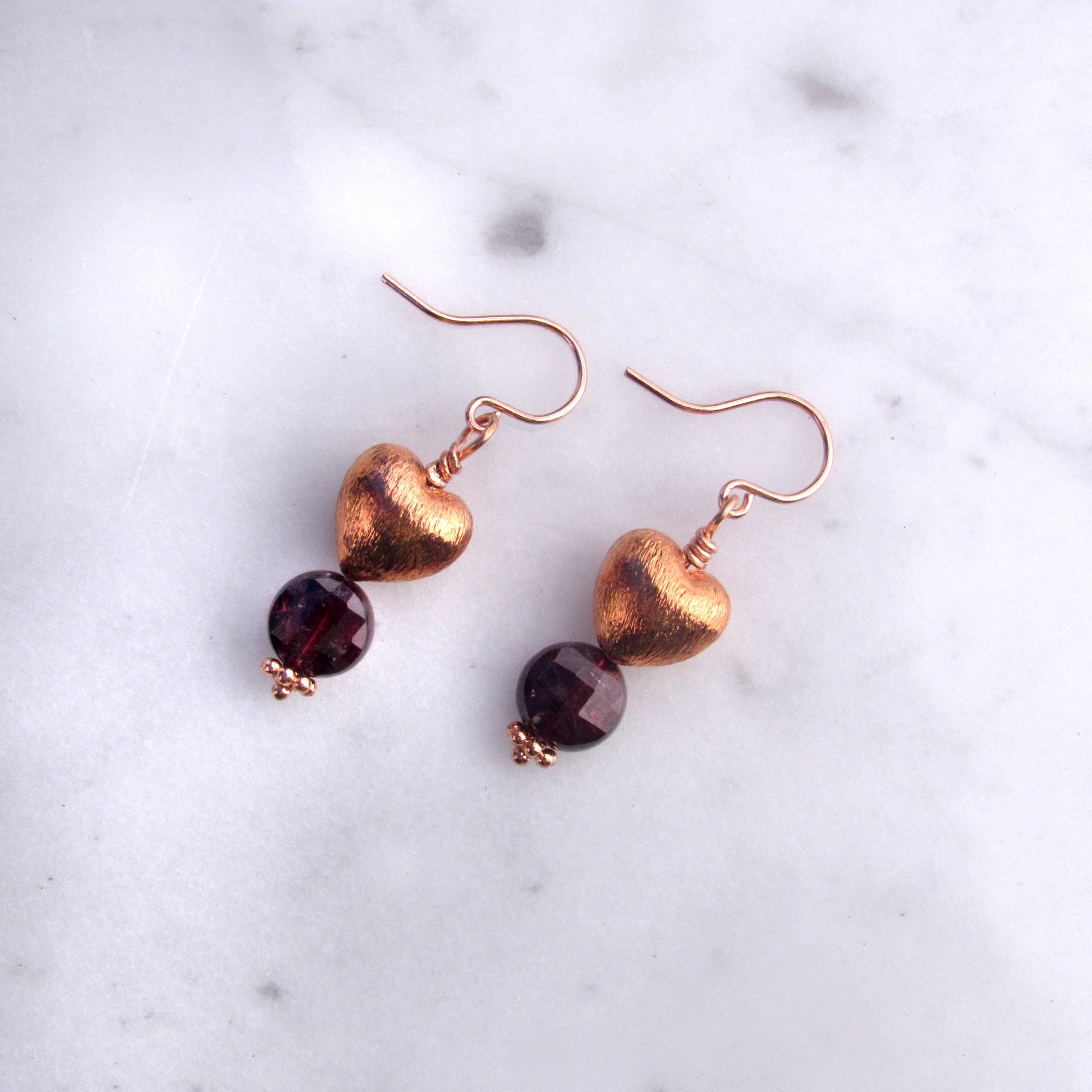 Copper Hearts with Garnet gemstone earrings
