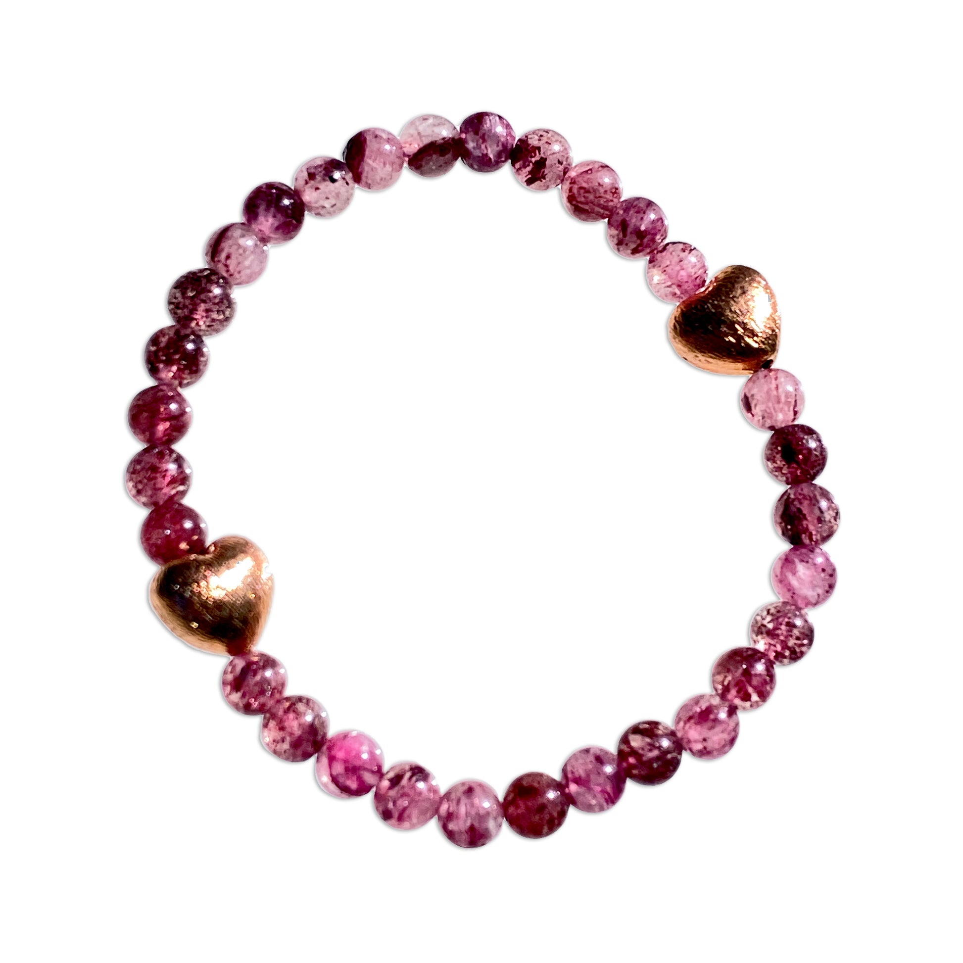 Strawberry Quartz can bring a sense of calm and tranquility during times of stress, and its gentle, nurturing vibration helps in the search for your soulmate or perfect love partner. The Hematite inclusions in Strawberry Quartz mean that it is also a good grounding stone.