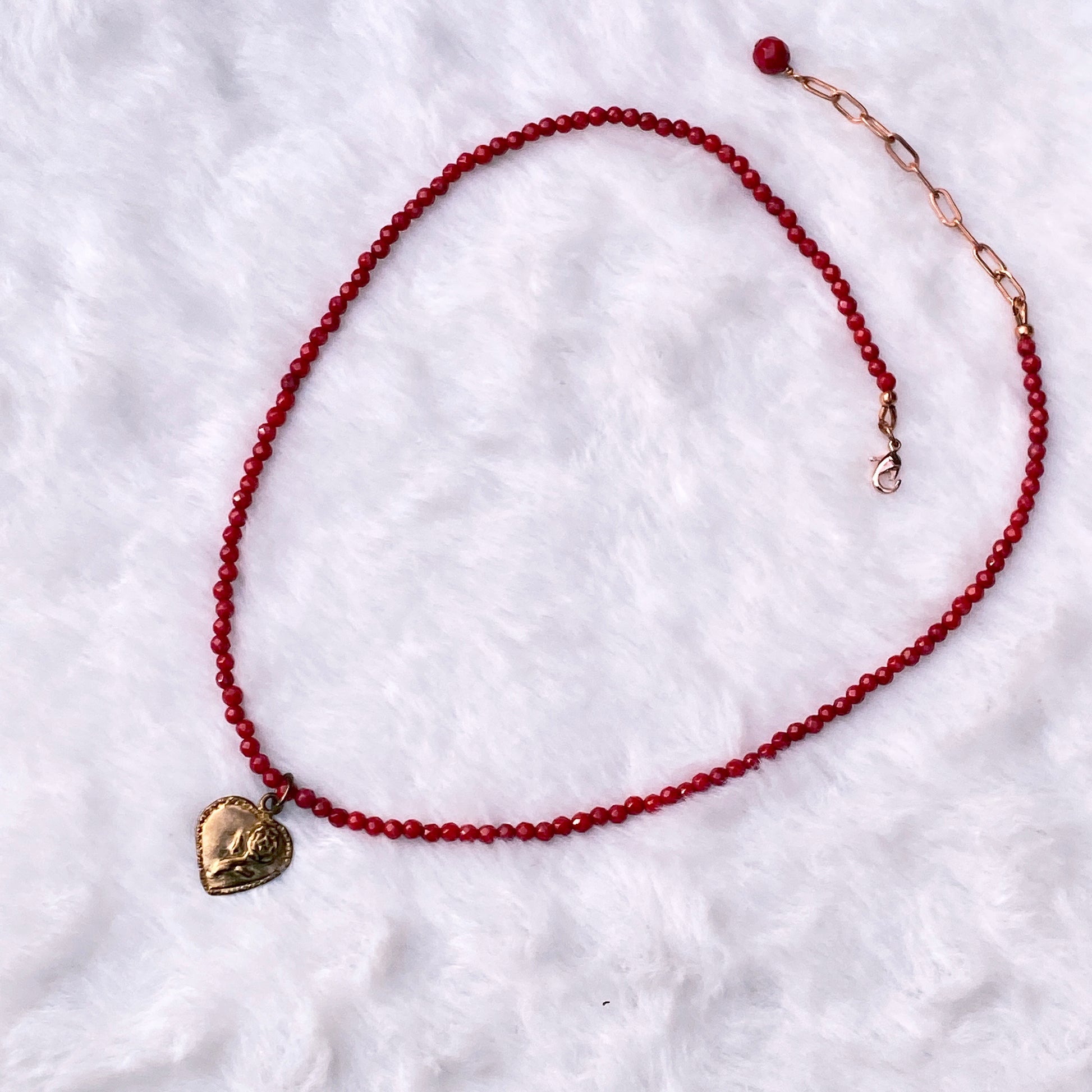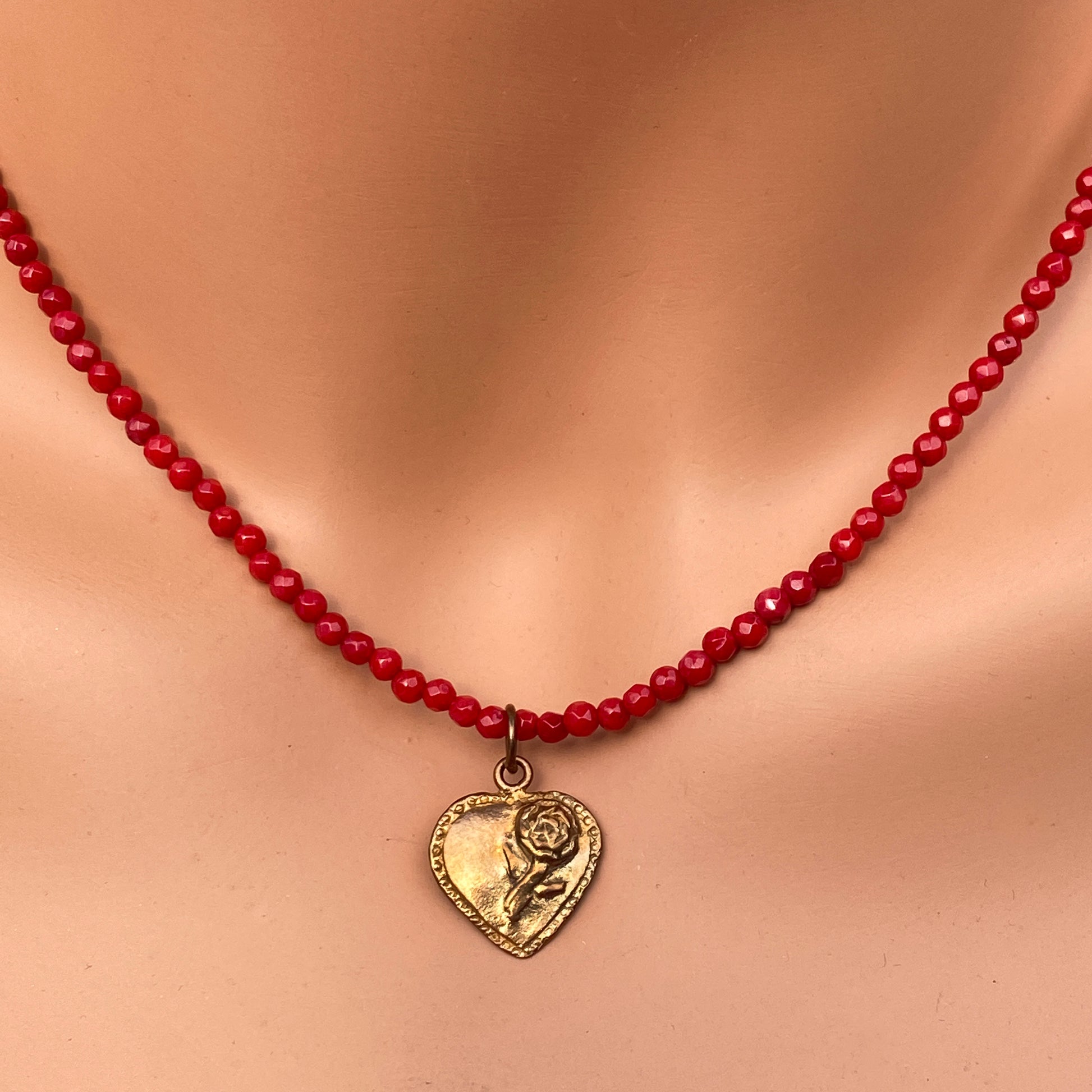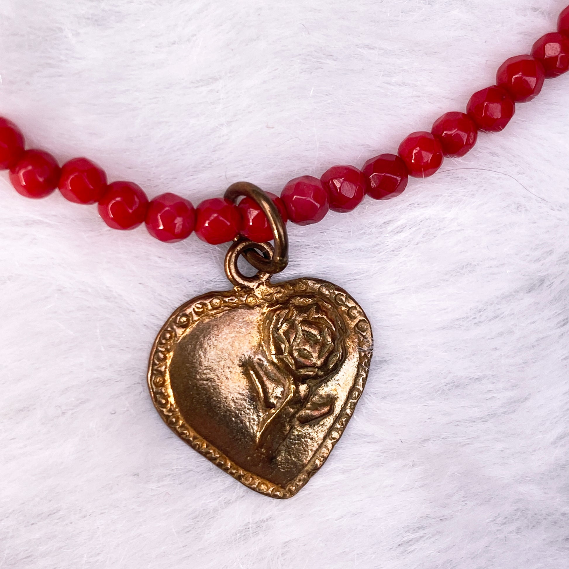 The heart charm is made of Shibuichi, which is a metal alloy created by combining 1 part sterling silver and 3 parts solid copper.