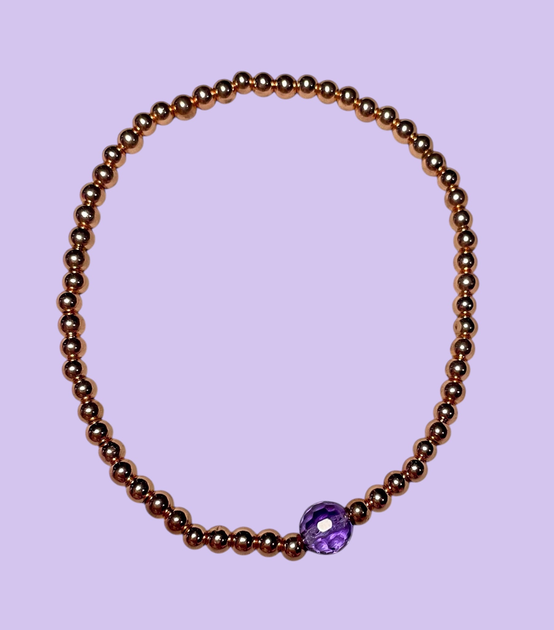 dainty 3 mm and 4 mm beads surrounding 6 and 8 mm amethyst bead