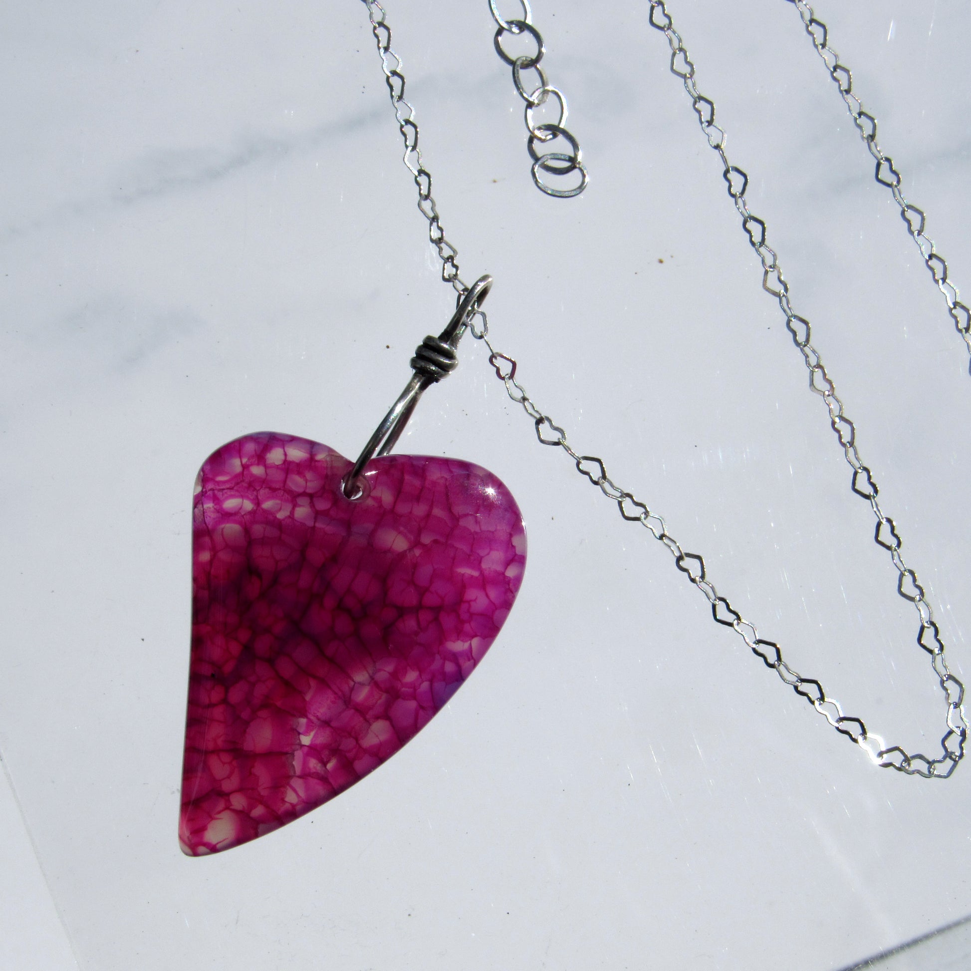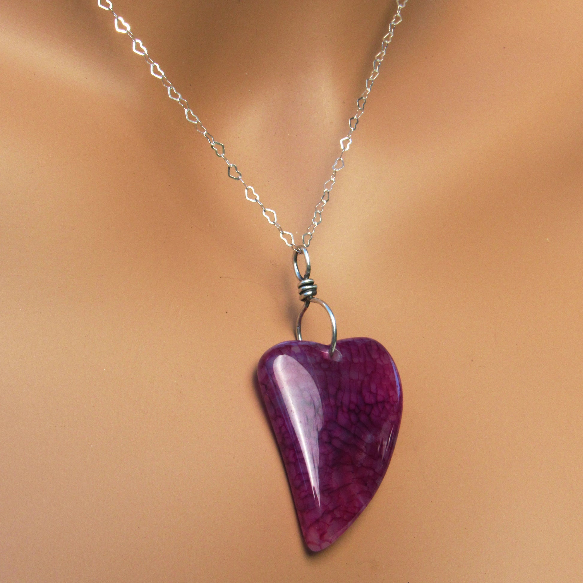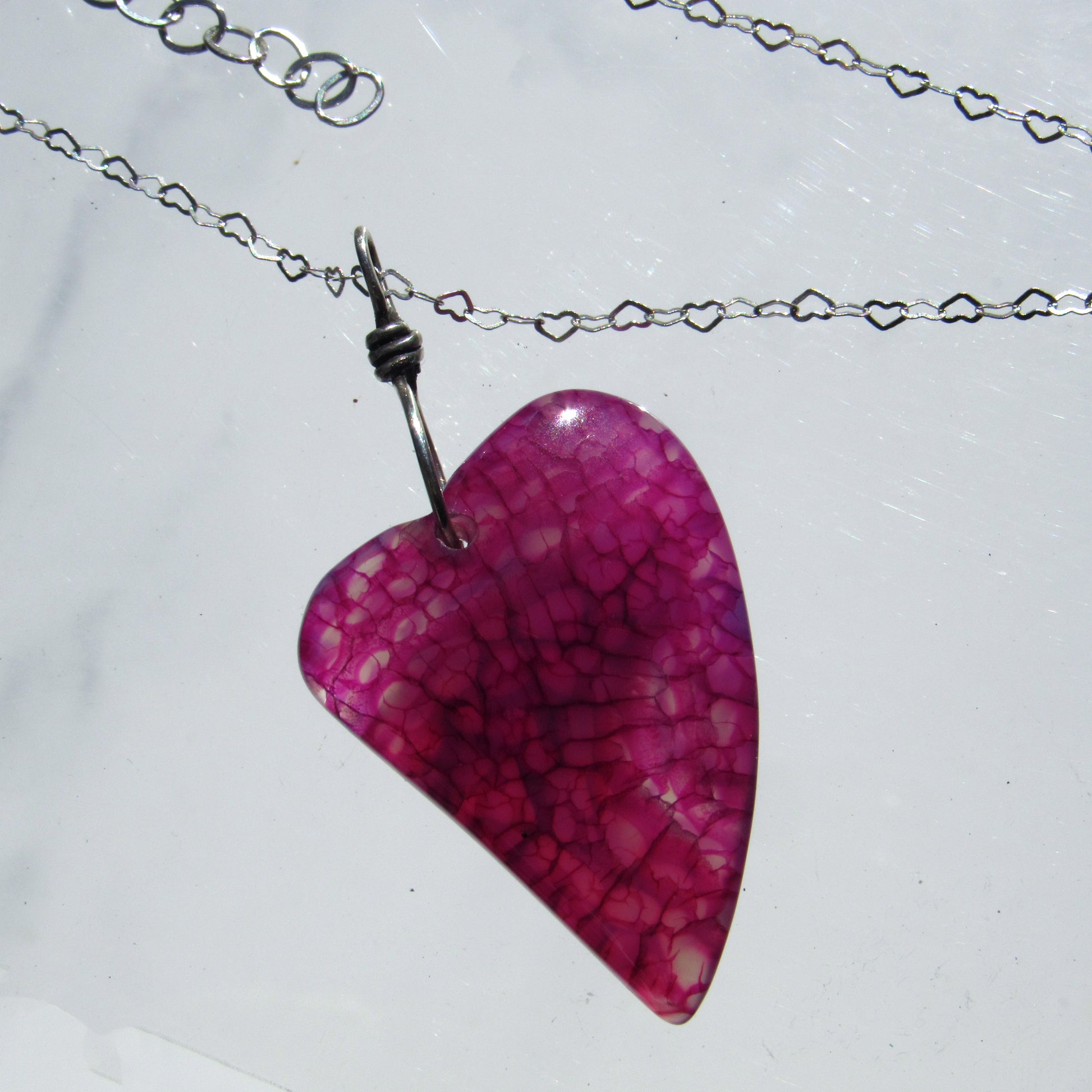 Dragon’s Vein Agate gemstone Heart on Sterling Silver Chain with Lots of hearts
