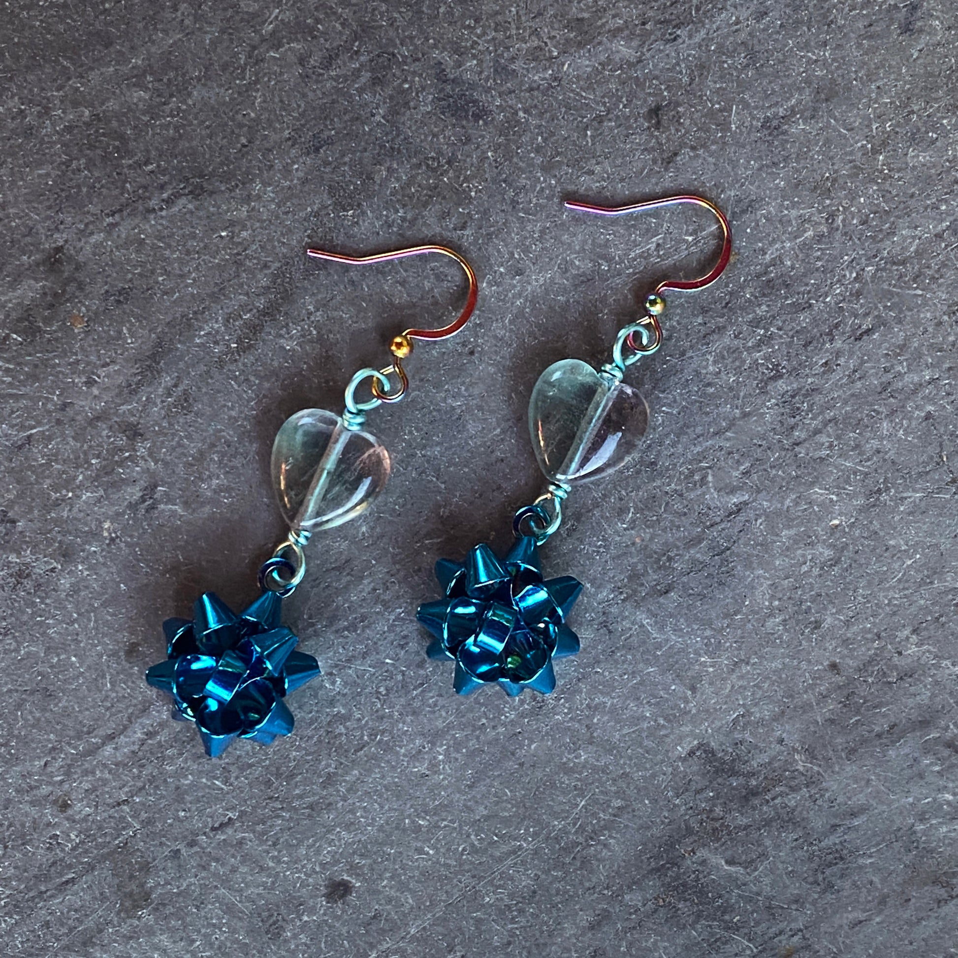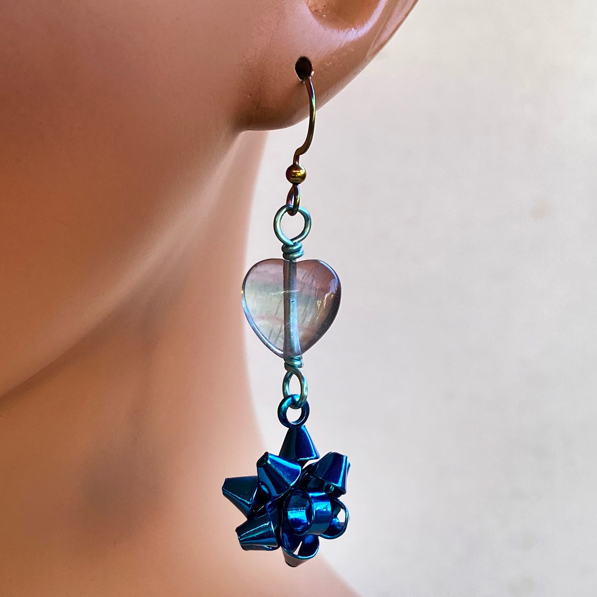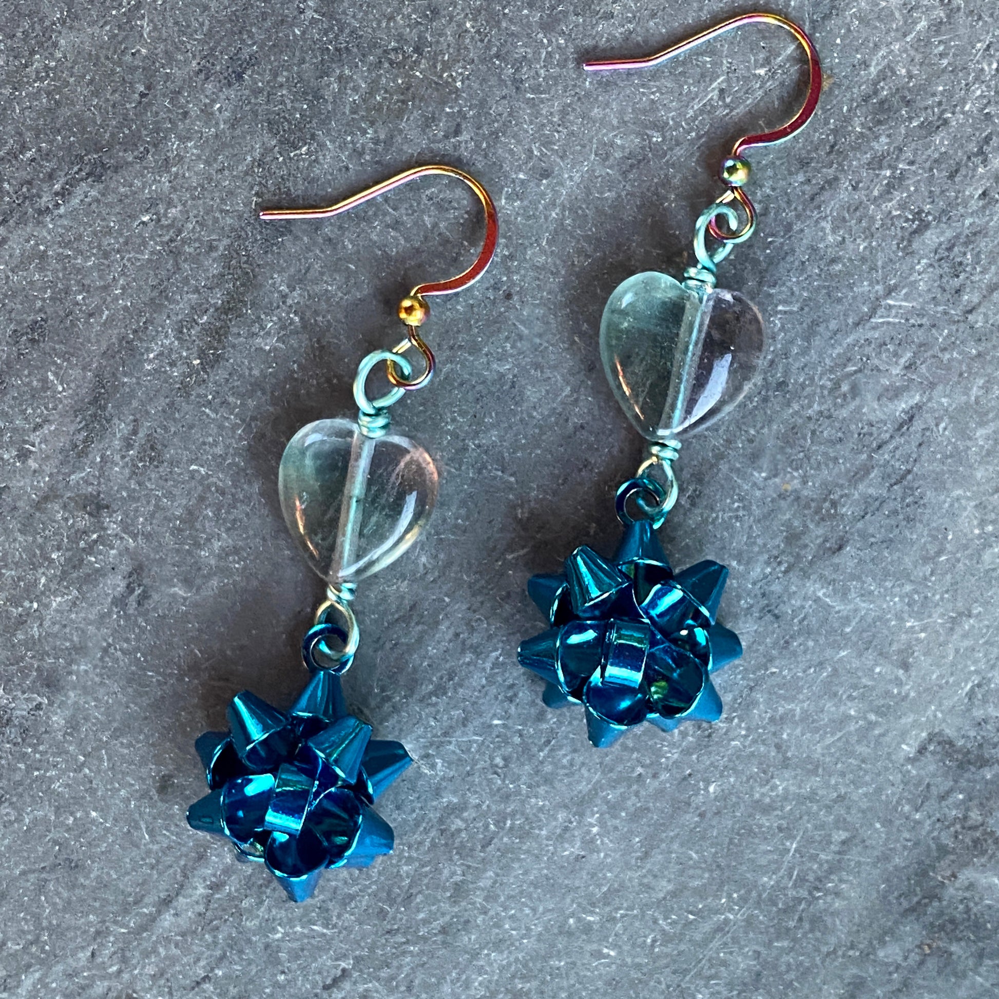 Fluorite Heart Christmas Bow Earrings