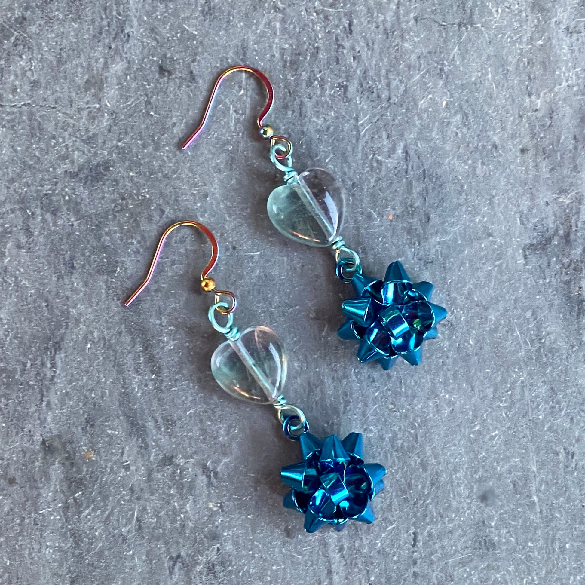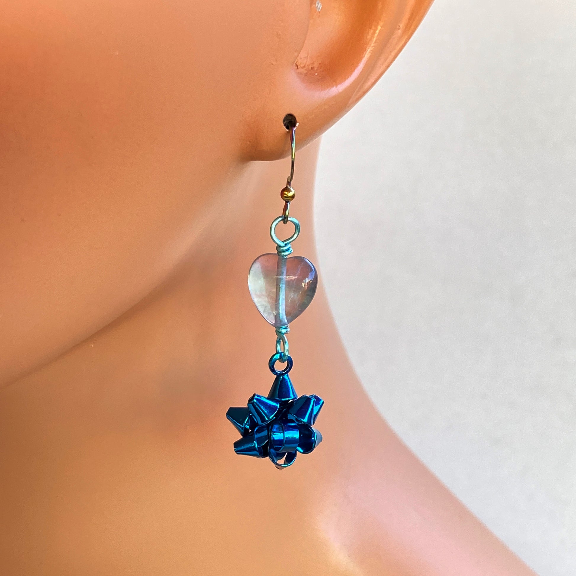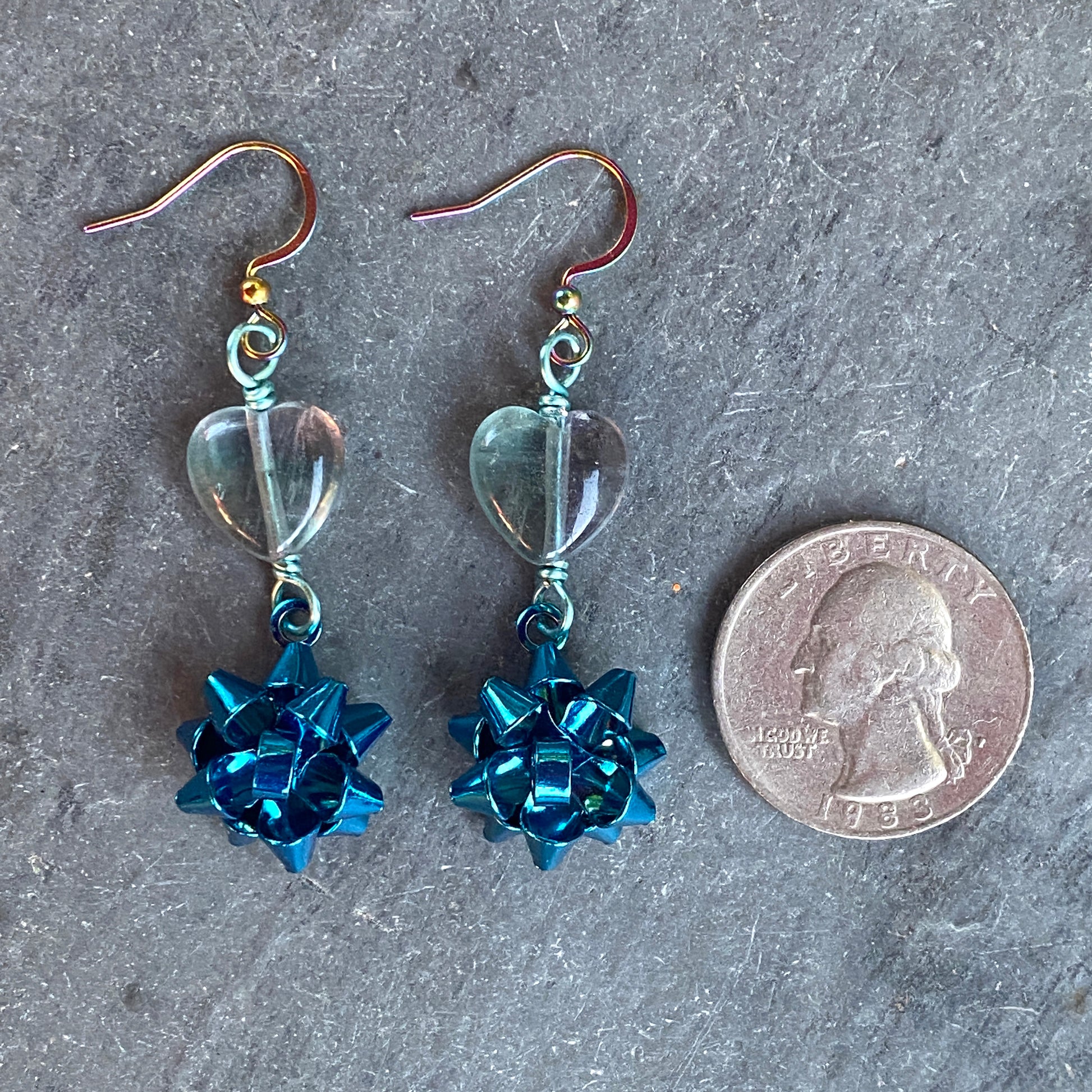 Fluorite Heart Christmas Bow Earrings