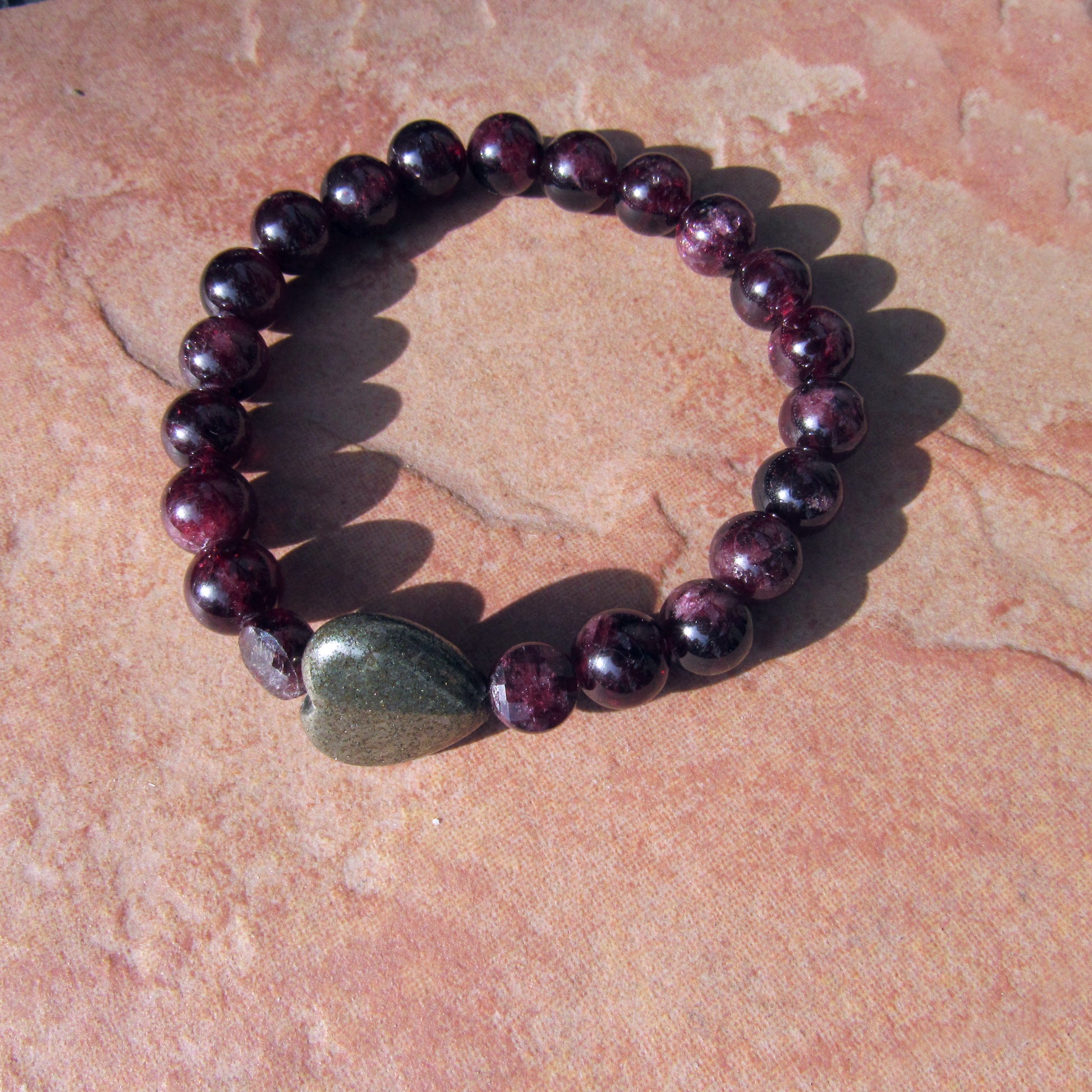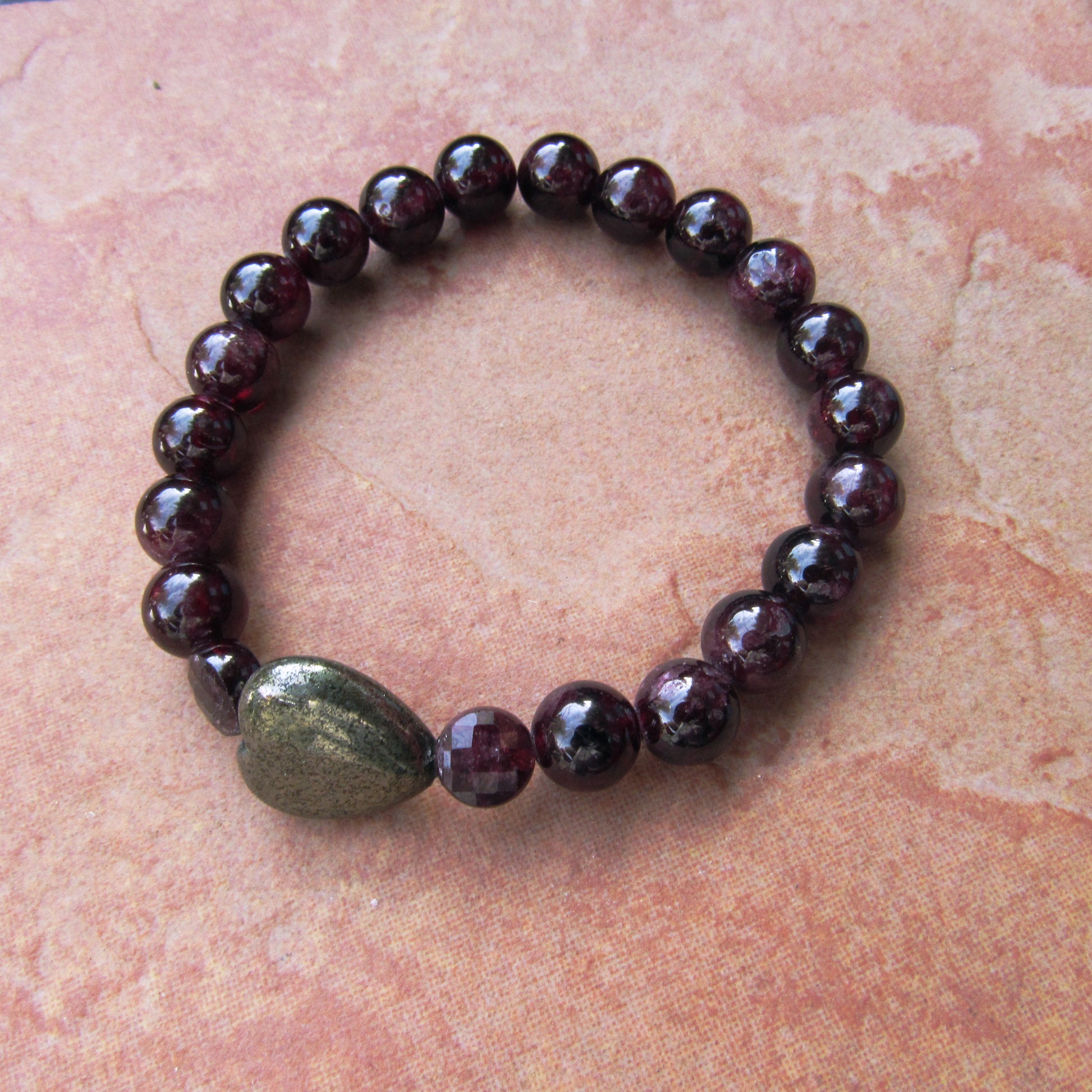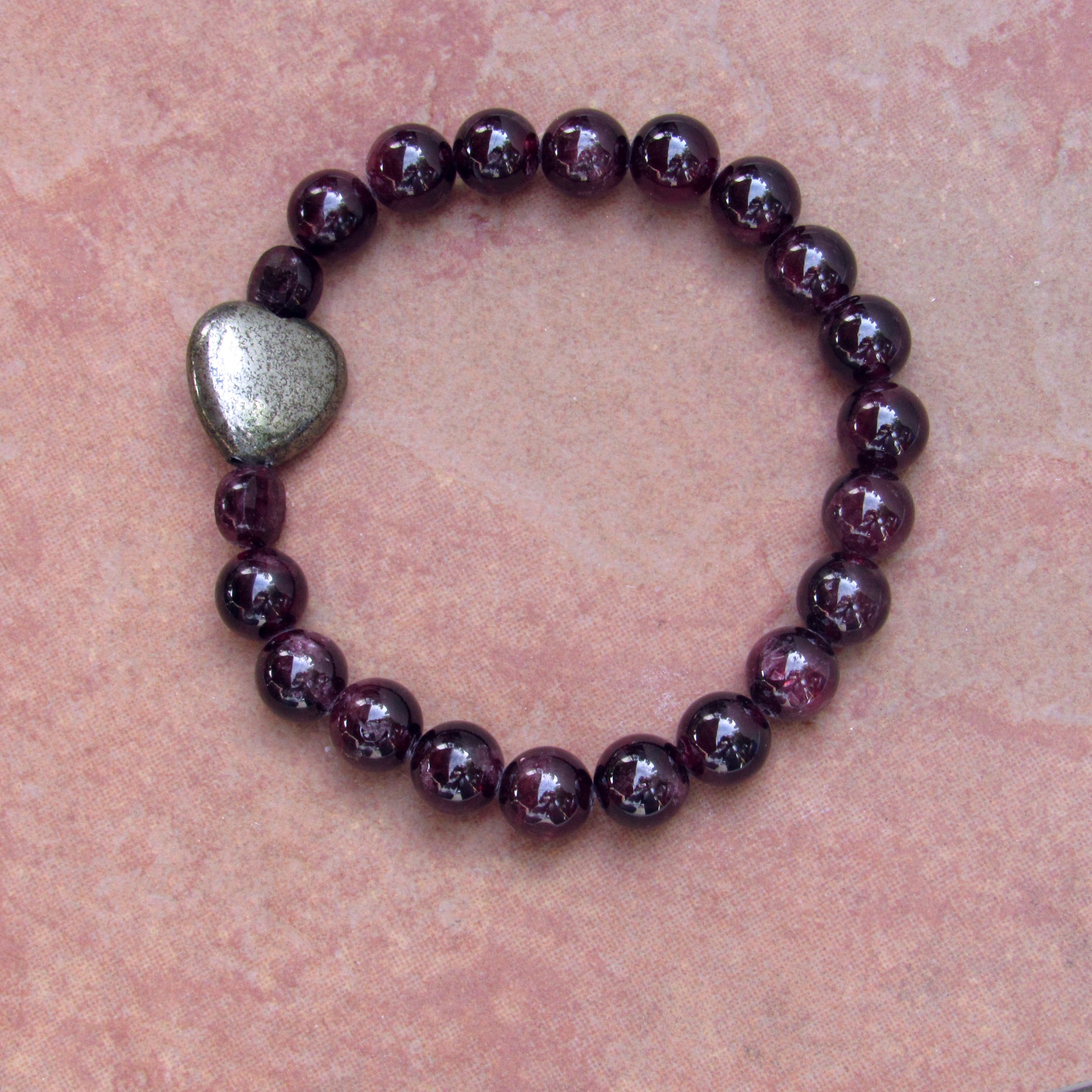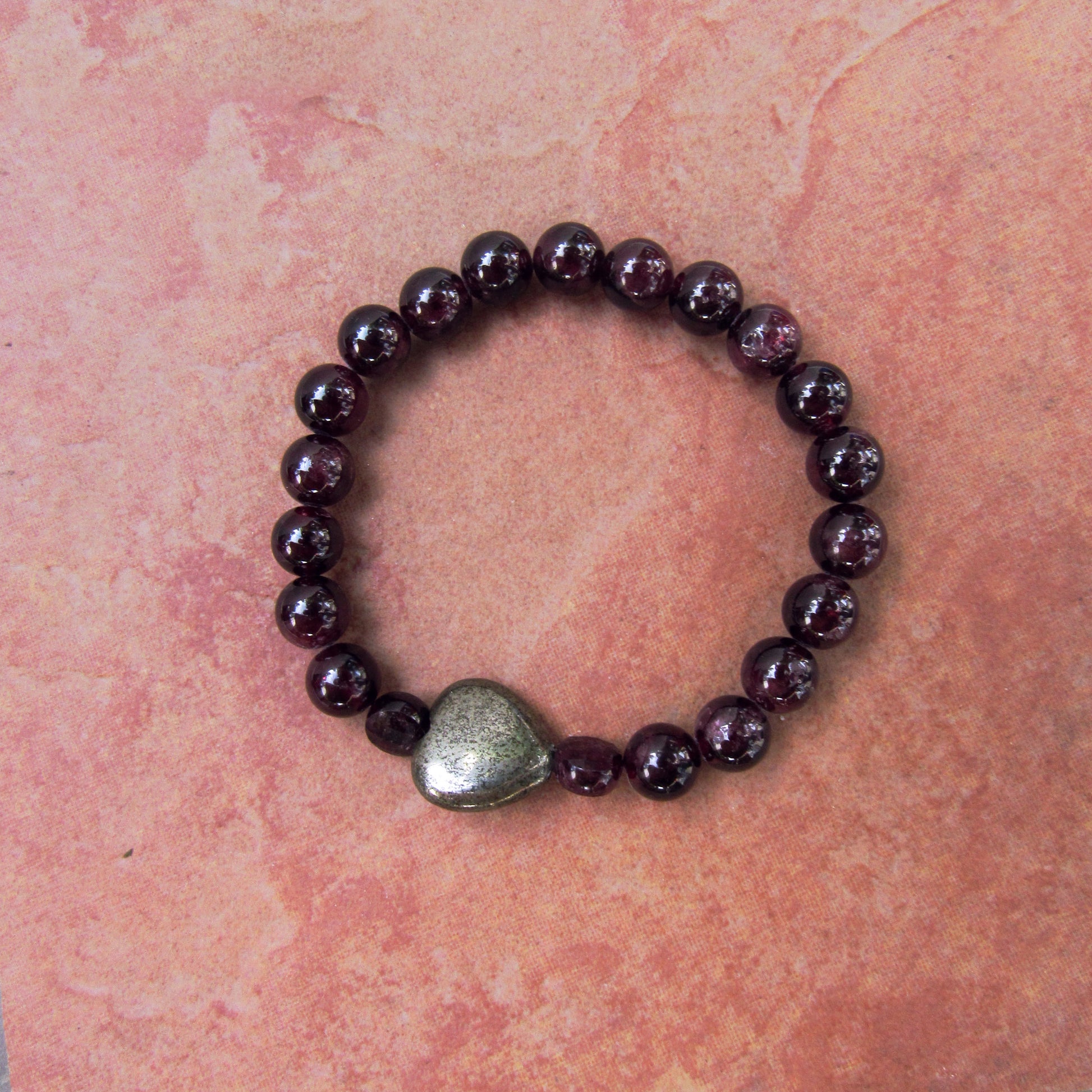 Garnet and Pyrite Heart Chunky Stretch Bracelet