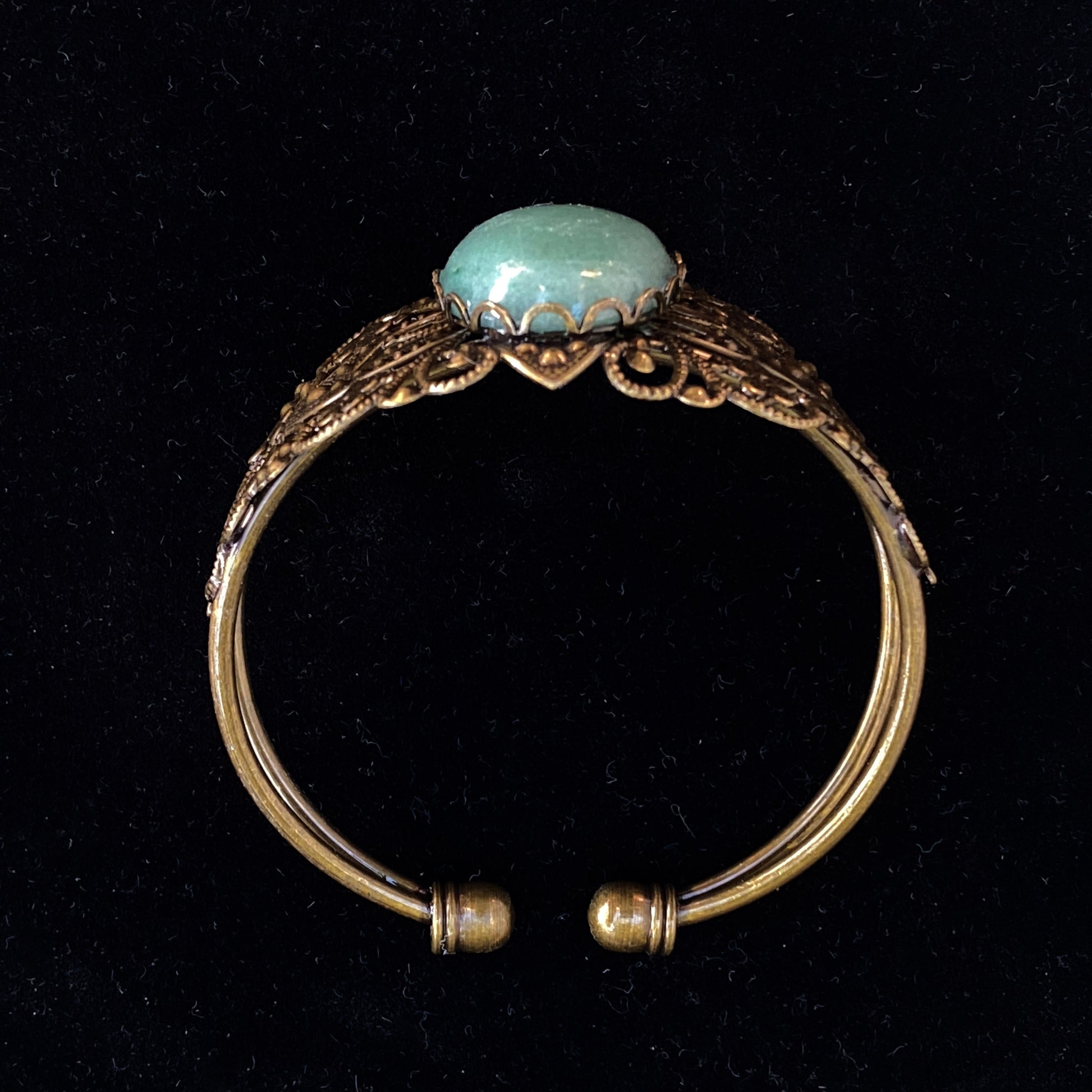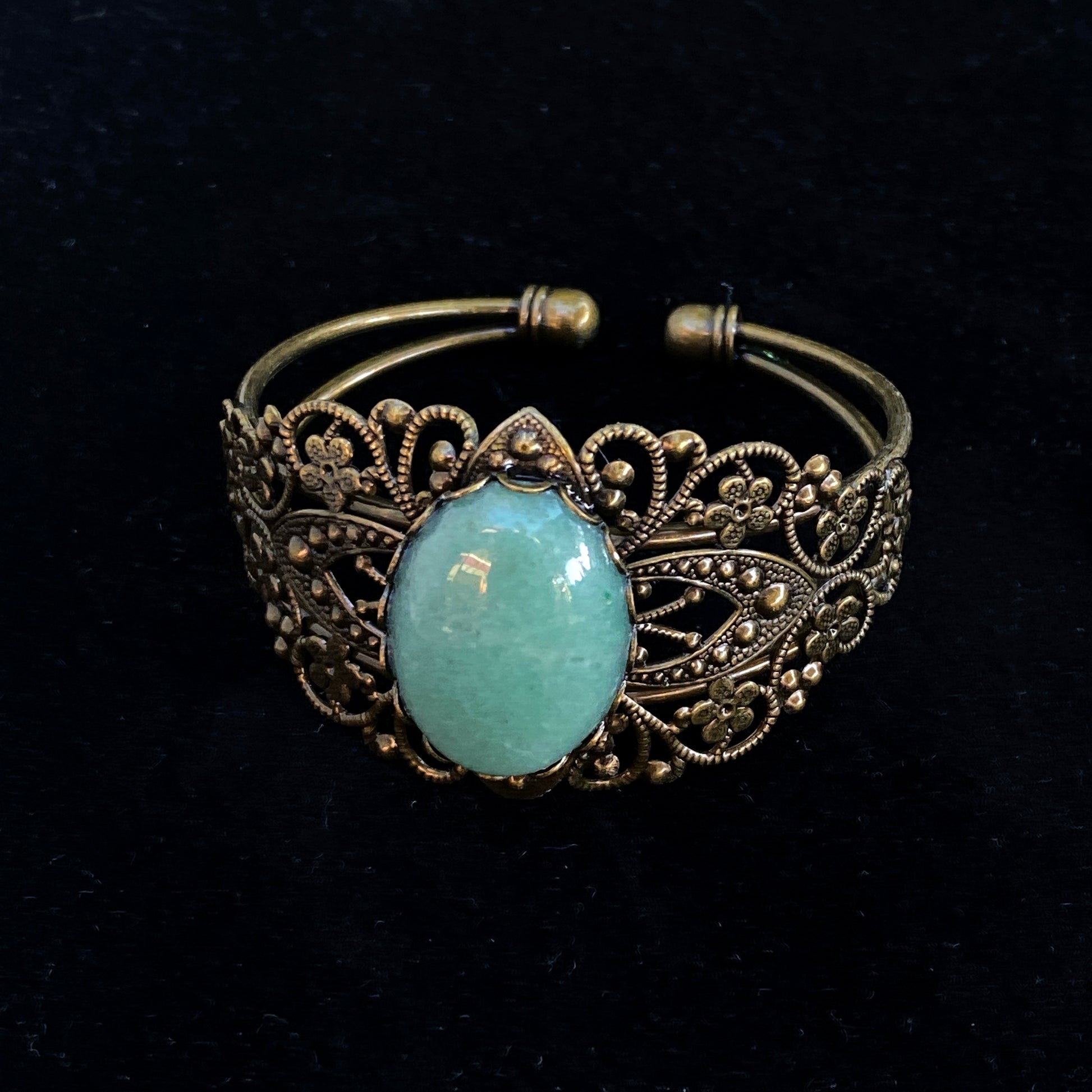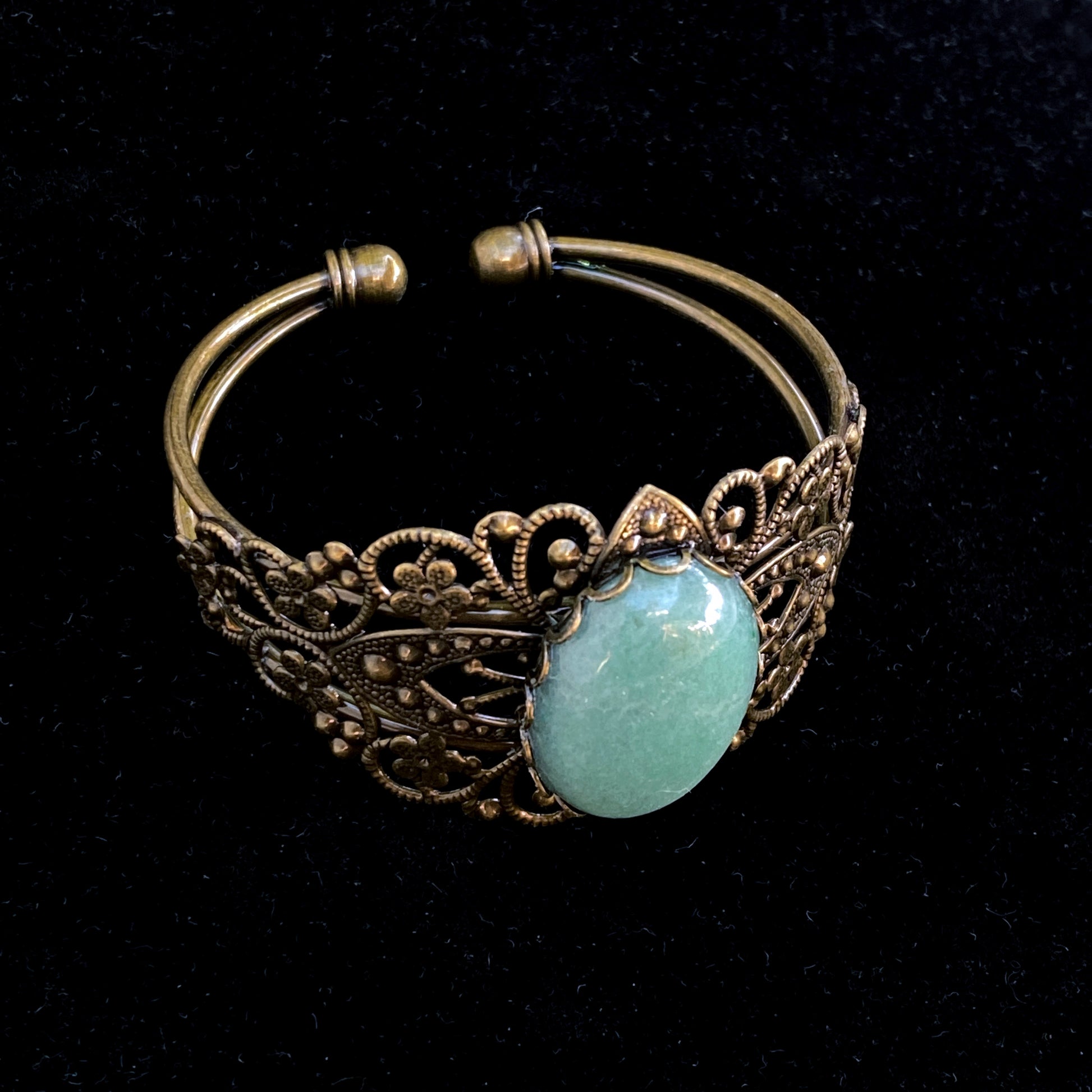 Green Aventurine gemstone antique brass Cuff Bracelet