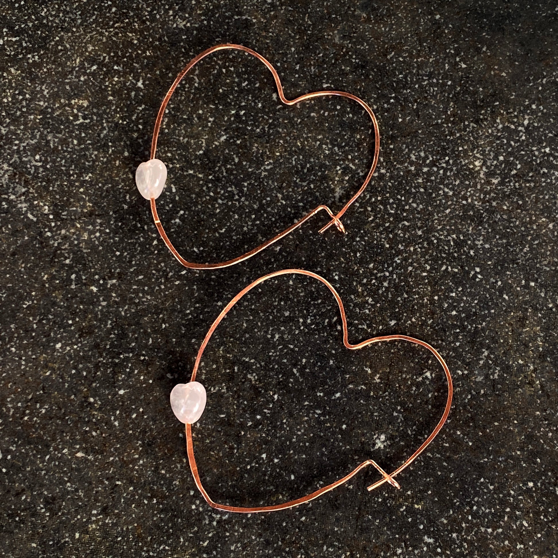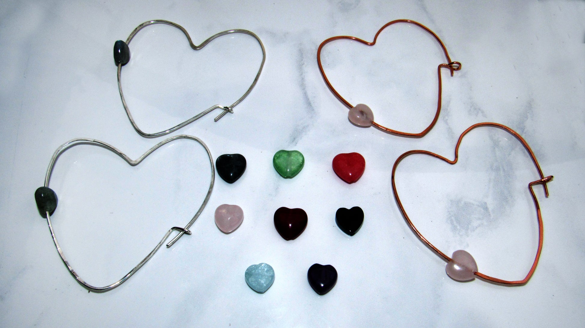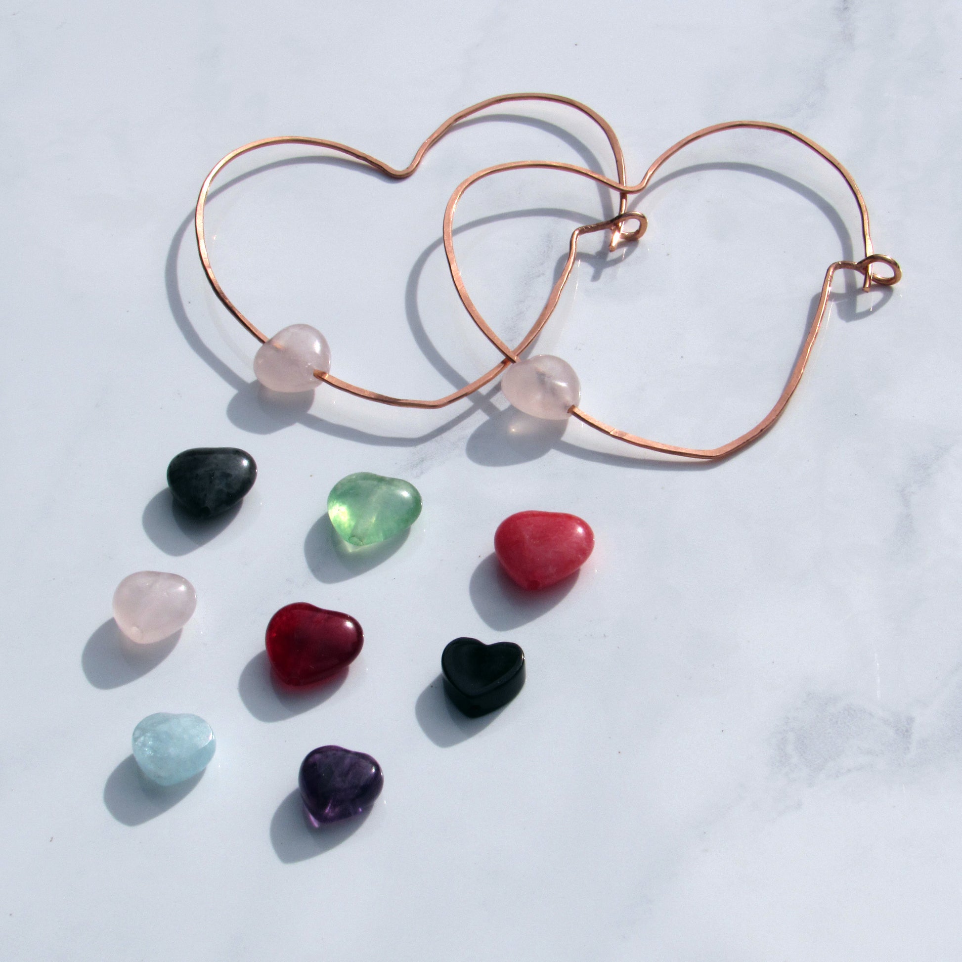 Hand Hammered Copper Heart Earrings with choice of Gemstone Heart