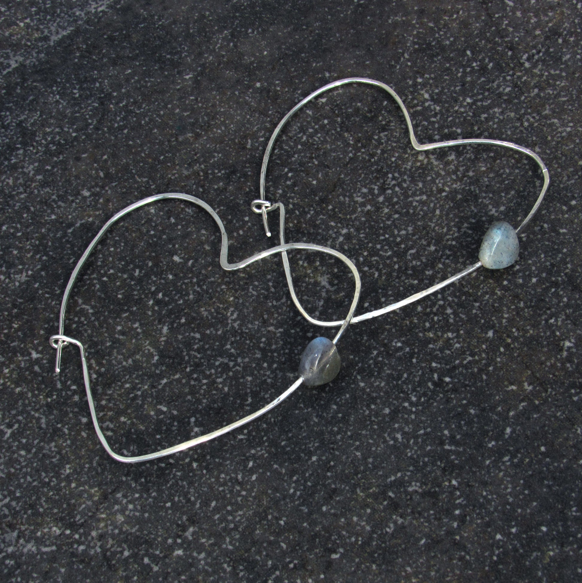 Hammered Copper or Silver Heart Earrings with choice of Gemstone Heart