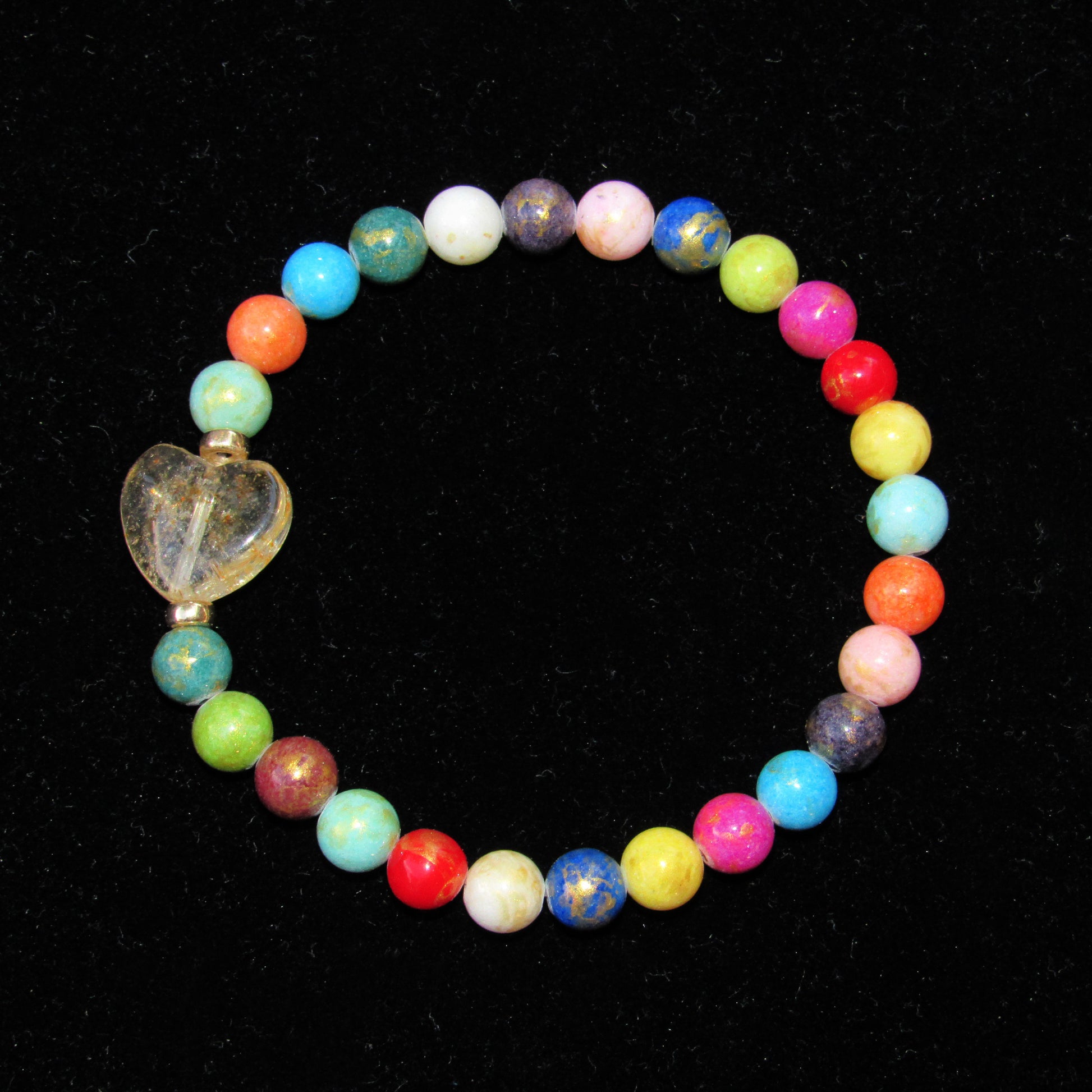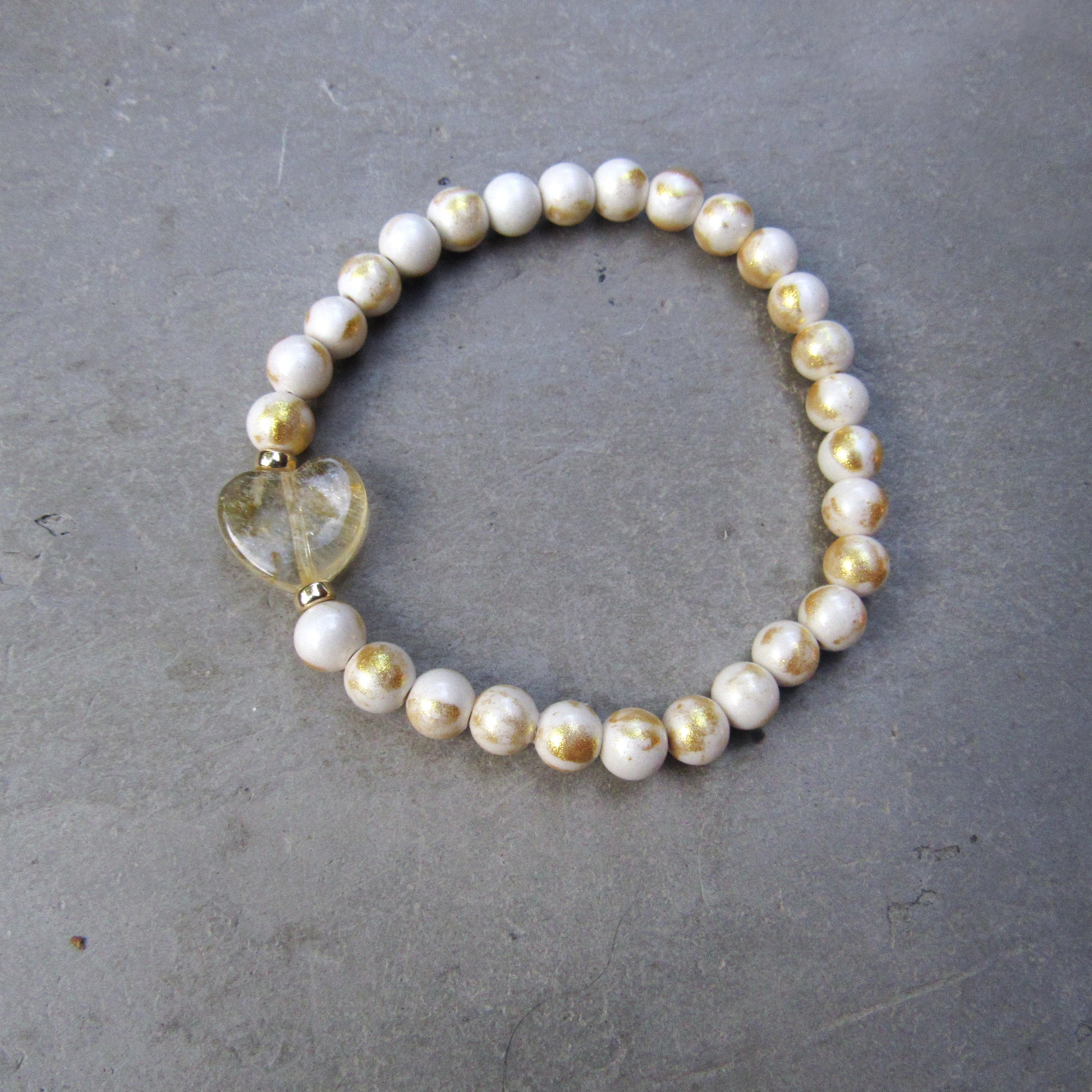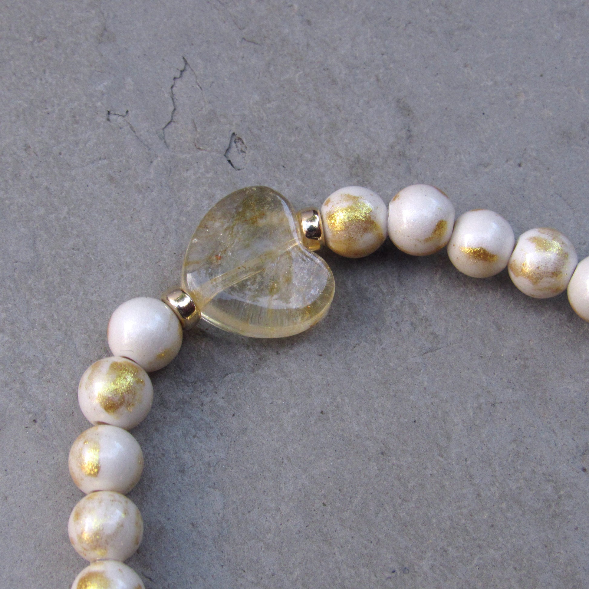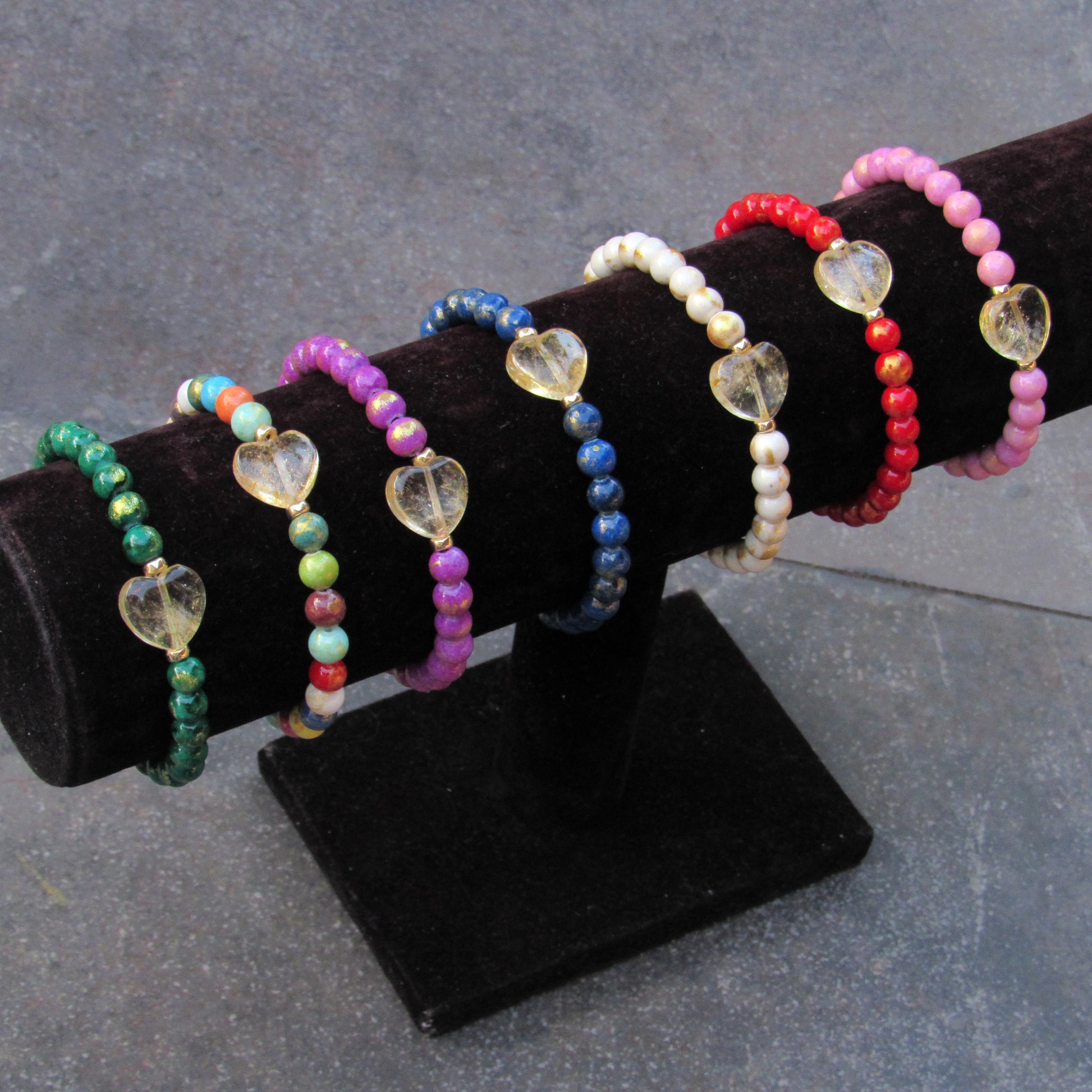 Metallic Jade and Citrine Gemstone Heart Bracelets with 14 kt gf