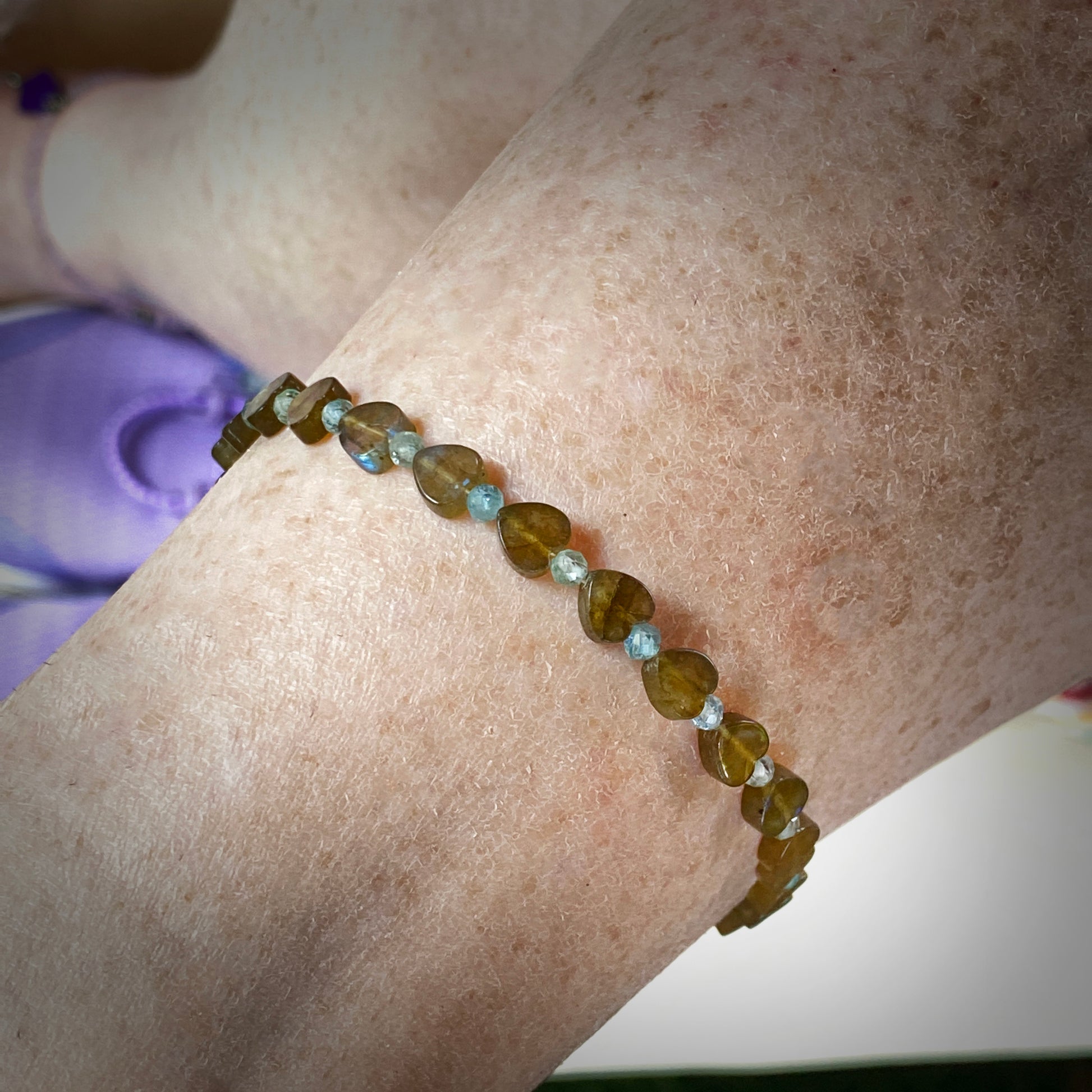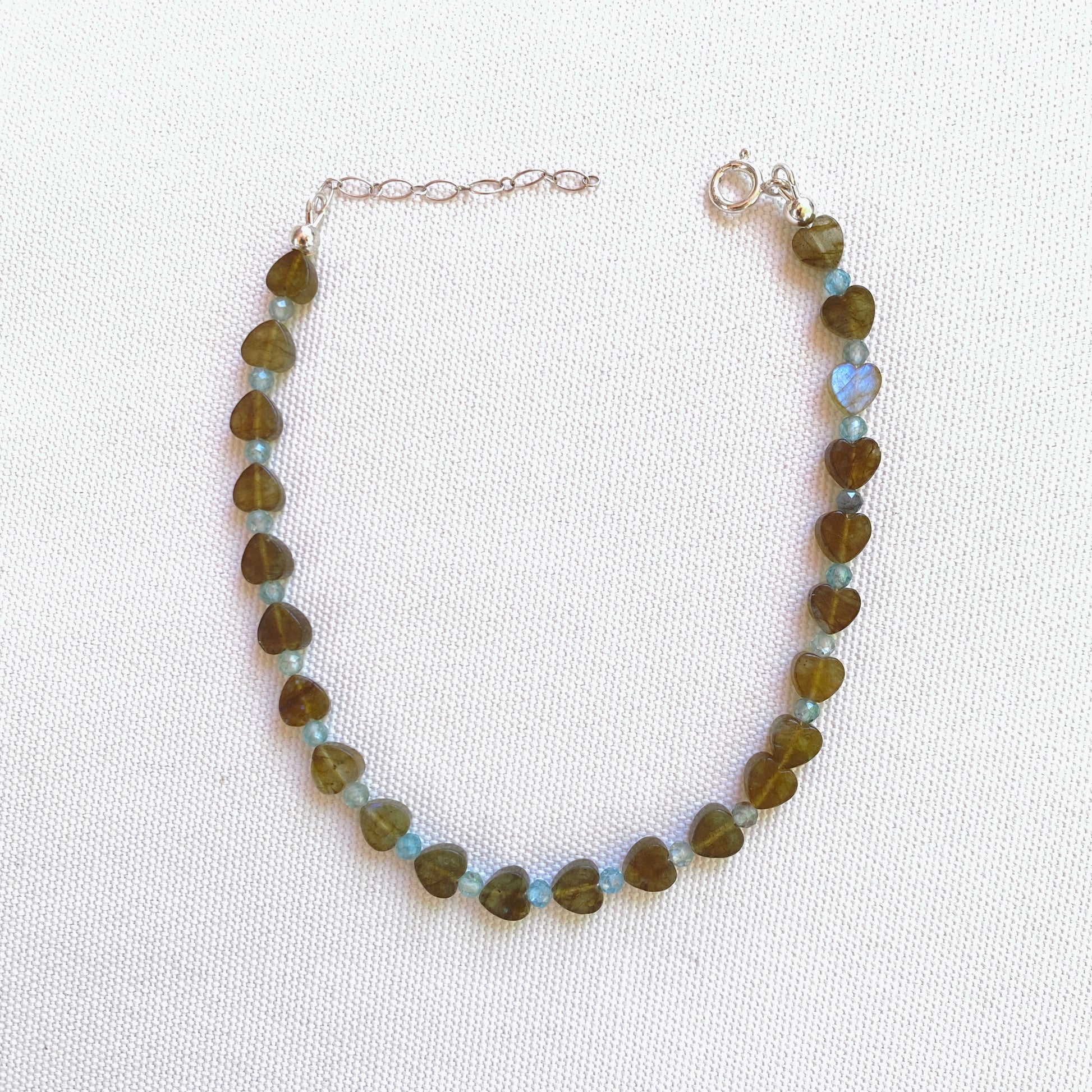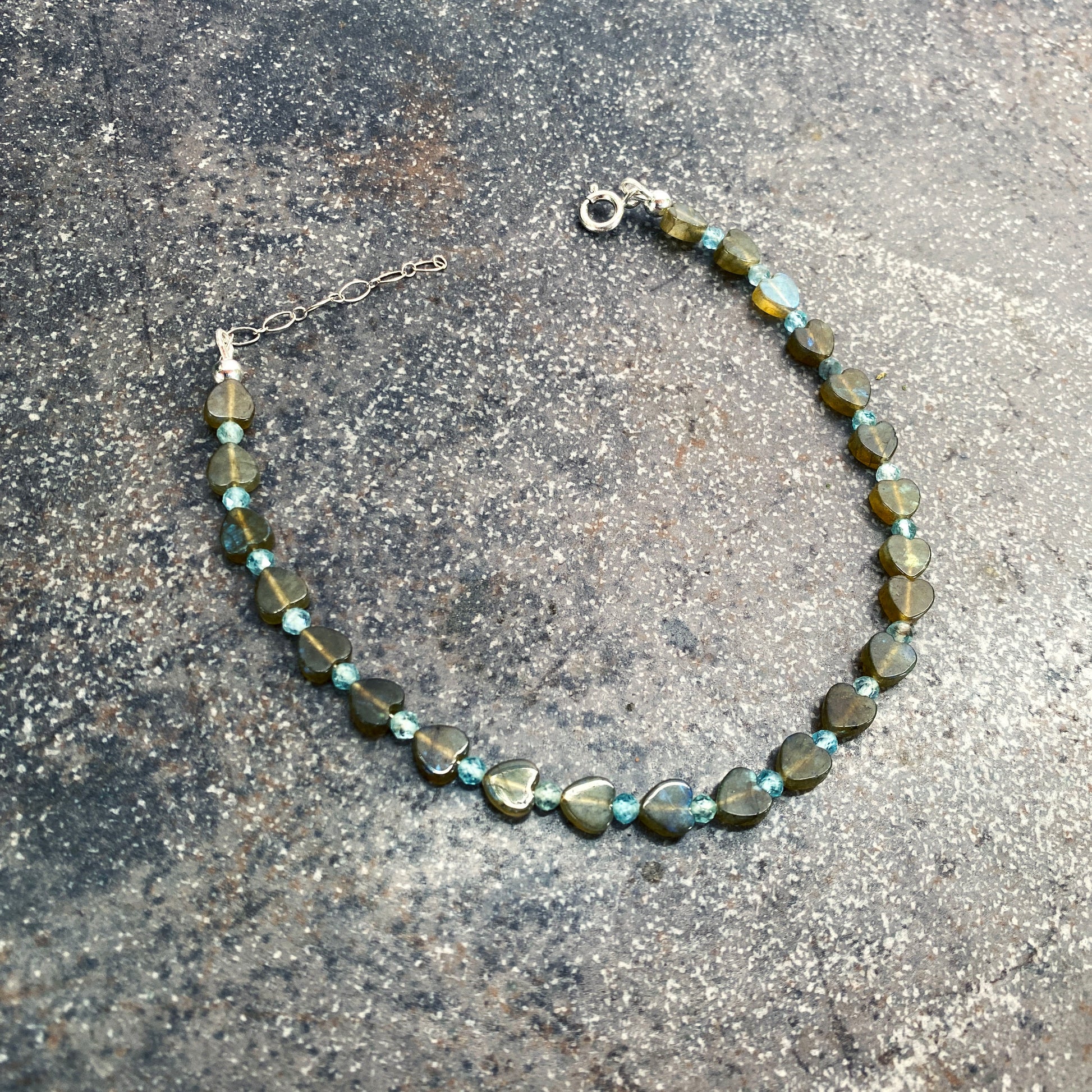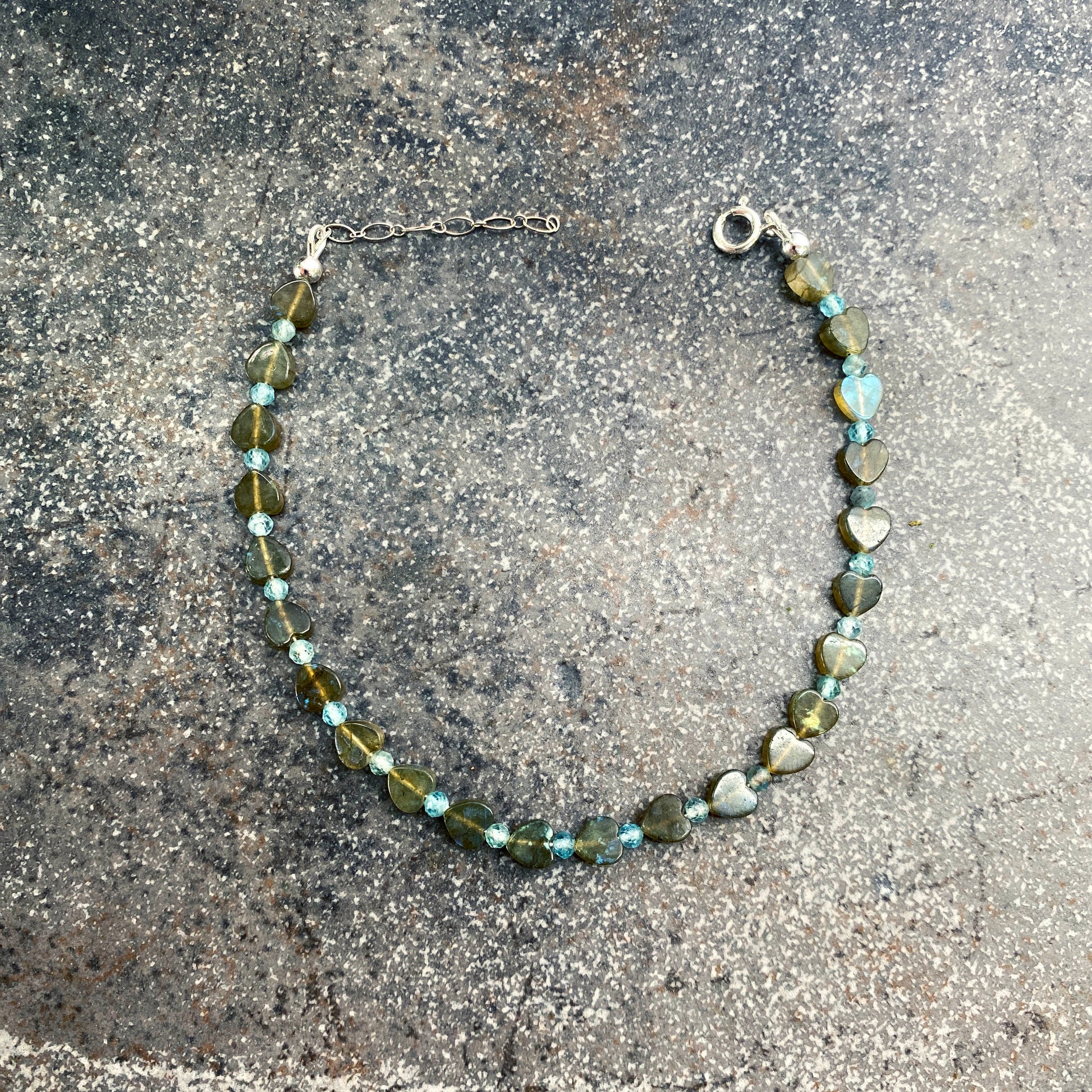 Labradorite heart and Blue Apatite w/ Sterling Silver Anklet